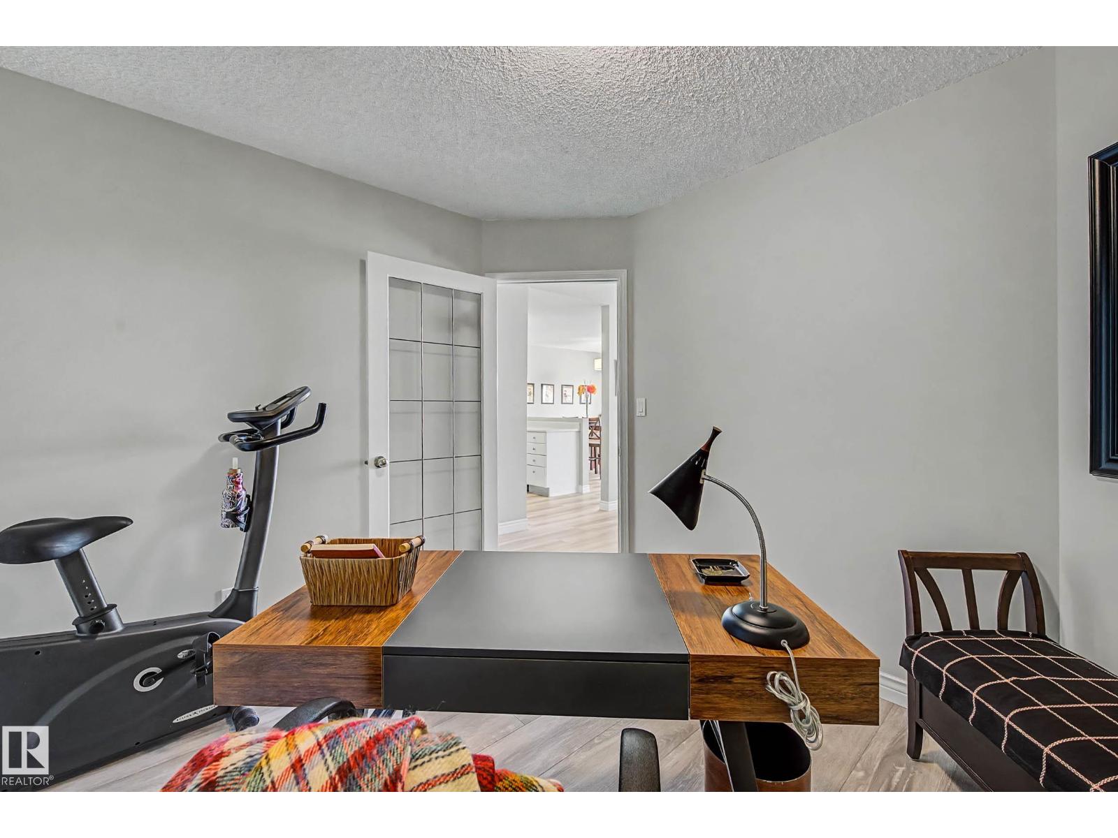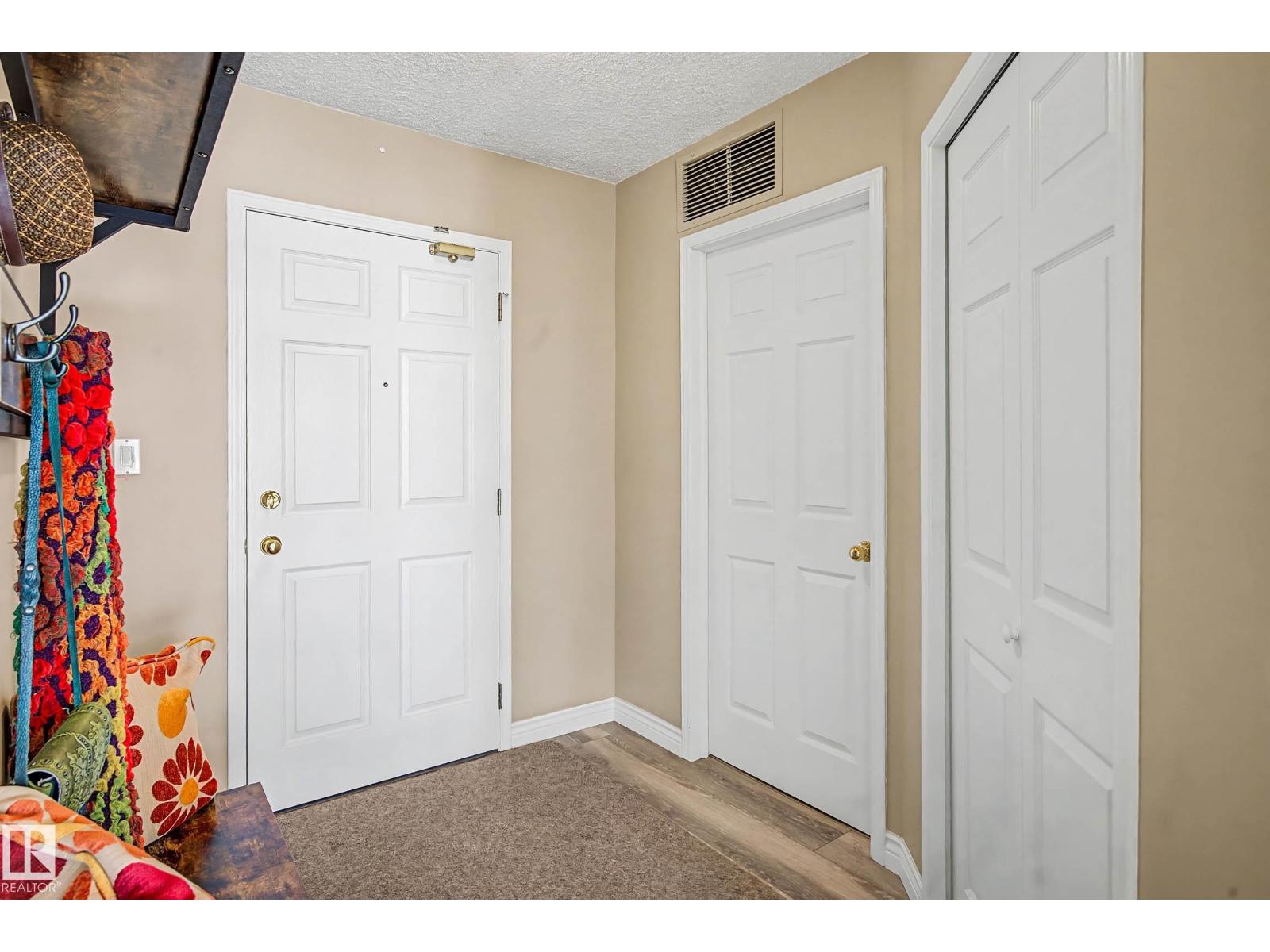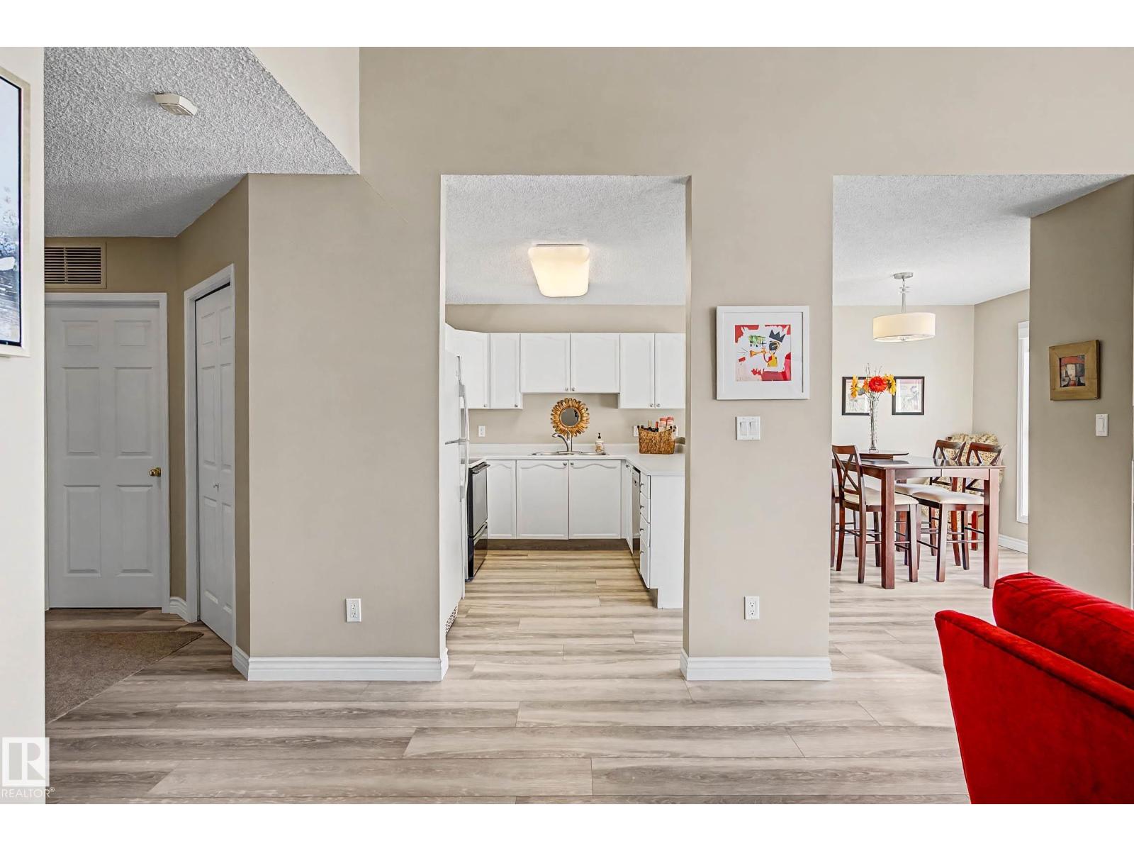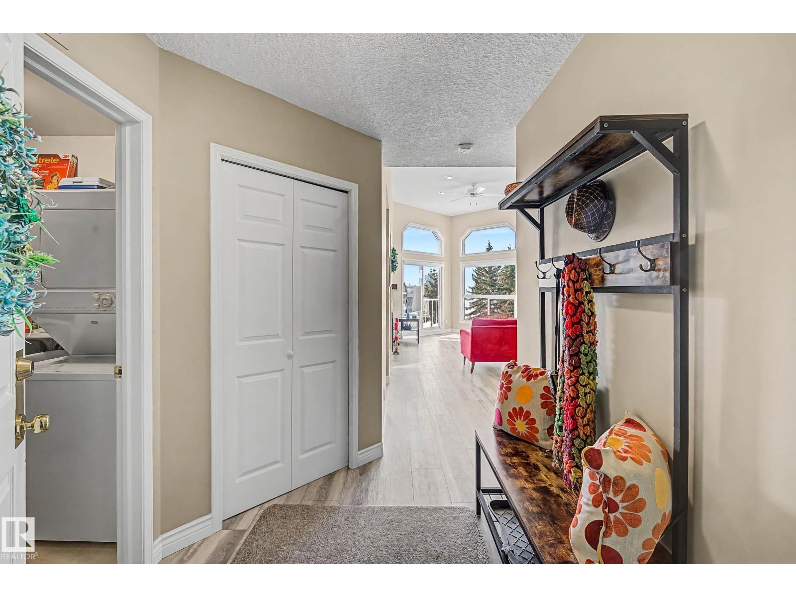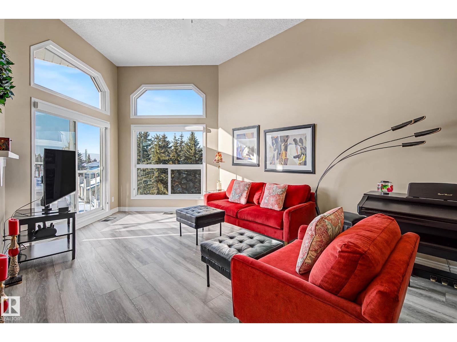 Wow! Top floor (4th) upgraded condo with soaring vaulted ceilings. The south exposure and large windows (including upper clerestory windows) combine to fill this home with light all day. Add this interior to the large south exposure deck and sunshine reigns supreme! Gas BBQ line to deck. This 1 bedroom plus den unit is immaculately kept exuding gracious living. Newer Luxury vinyl plank floor floor & fresh paint makes this home feel like new. Large living room with gas fireplace enjoys the spacious beauty of the windows and vaulted ceiling. Warm winter nights with cozy fireplace and cool summer days with the central air conditioning make this home a year round pleasure. Well planned kitchen and spacious dining room adjoin the living room. Great functional floorplan for entertaining and everyday living. Primary bedroom also enjoys the south view and light. Your personal den/office space is great flexible space Single car GARAGE plus one assigned energized outdoor stall complete this fantastic package. (id:51989)