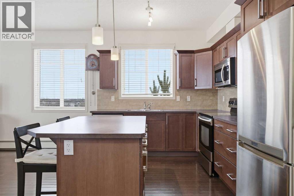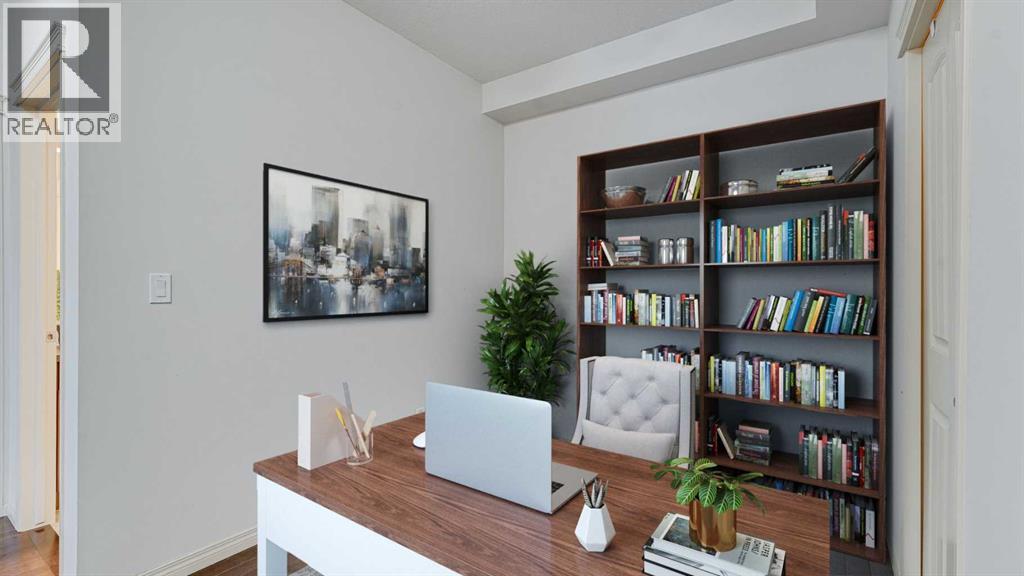 Welcome to one of the premier residences in Cranston a rare top floor corner unit that truly stands out from the rest. This expansive 2-bedroom, 2-bath + dedicated office home, offering an exceptional layout, elevated privacy, and natural light pouring in from multiple directions.Positioned on the top floor and corner of the building, this home benefits from additional side windows, flooding the space with sunlight and creating a bright, airy feel throughout the day. The elevated location also delivers mountain views from the back, while facing a green space—a perfect balance of scenery and serenity.Adding to the appeal is a titled, heated underground parking stall, providing year-round convenience, security, and comfort—no scraping windows or braving the cold in winter.The thoughtfully designed floor plan offers generous living and nook, designed for relaxed living and easy functionality. The dedicated office space is a standout feature perfect for working from home, a creative studio, or a quiet retreat. Two spacious bedrooms and two full bathrooms provide comfort, privacy, and flexibility for a variety of lifestyles. (id:51989)