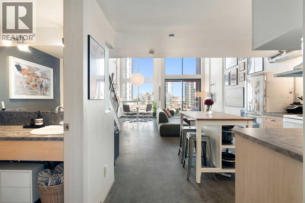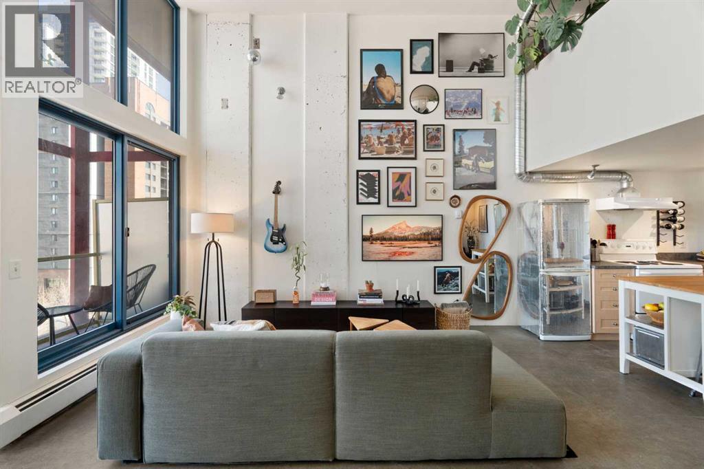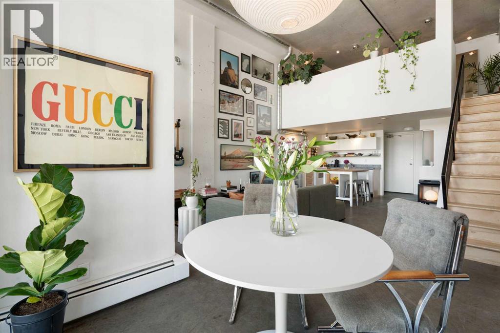 Welcome to a truly distinctive New York–inspired loft in the heart of Calgary, where industrial design meets modern versatility. Defined by soaring 16-foot ceilings and dramatic floor-to-ceiling north-facing windows, this one-of-a-kind space is flooded with consistent natural light while maintaining a comfortable, even temperature year-round. The open-concept layout is both striking and functional, offering a seamless blend of living, dining, and workspace zones. Polished concrete floors anchor the main level with an urban edge, while warm wood accents on the upper level and stairs add balance and character. Exposed mechanical elements and clean architectural lines create an authentic loft aesthetic rarely found in the city—an ideal backdrop for those who appreciate design, creativity, and flexibility in how they live and work. With zoning that supports both residential and commercial use, this property opens the door to a range of possibilities—from a stylish home base to a live/work studio or boutique office. It’s a space that adapts as your lifestyle evolves. Set within a quiet, pet-friendly, boutique building, residents enjoy a strong sense of community paired with rare inner-city tranquility. Amenities include a rooftop patio with gas BBQ hookups and skyline views, a landscaped courtyard, and a versatile common room with future fitness potential. A heated underground parkade adds everyday convenience, while condo fees that include heat, water, and electricity offer exceptional value and simplicity. A no short-term rental policy further reinforces the building’s peaceful, residential feel. Ideally located, this home offers immediate access to major roadways, making commuting simple and efficient. You’re just minutes from the Bow and Elbow rivers, extensive walking and biking pathways, and some of Calgary’s most vibrant neighborhoods, including Inglewood and Victoria Park. Enjoy close proximity to local cafes, restaurants, and nightlife, as well as the iconic St ampede Grounds. With transit located right outside your door, this is truly a connected and convenient urban lifestyle. Positioned in an area experiencing significant growth and revitalization, this property also presents a compelling investment opportunity, with future development and the new Scotiabank Saddledome project expected to further enhance long-term value. More than just a condo, this is a statement space, offering a rare combination of design, location, lifestyle, and community. (id:51989)
