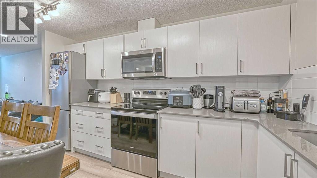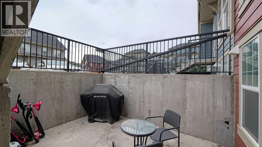 Excellent value home. A very popular, established, community of Cranston that offers excellent amenities and accessibility to major highways, shopping and recreation spaces. This spacious 3-bedroom, 2-bathroom unit is inviting, open, and just the perfect place to come home to. Tastefully finished open floor plan with, Luxury vinyl laminate flooring in the main living areas. The kitchen is stunning with modern white cabinets, quartz counters, white backsplash tiles, and stainless steel appliances. The living room is very spacious and bright with lots of natural light streaming from three large windows. Nice dining space for the family to enjoy meal times together. The Primary Suite has a 4-piece en-suite and a walk-in closet. The 2 more bedroom are very good size too. 4-piece main bathroom, and in-suite laundry. Parking stall outside the unit. Nice large concrete patio space is ideal for you to relax away the summer. Affordable, with low condo fees, this is a perfect place to call home in this beautiful community of Cranston. (id:51989)