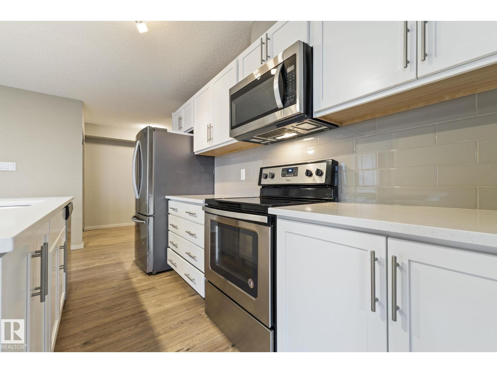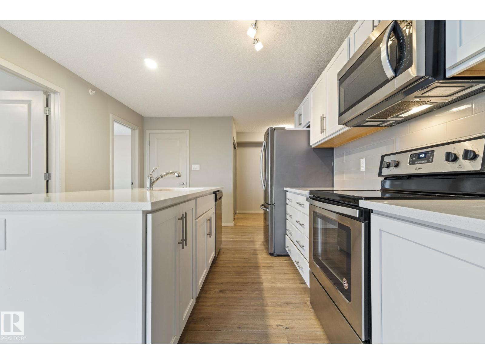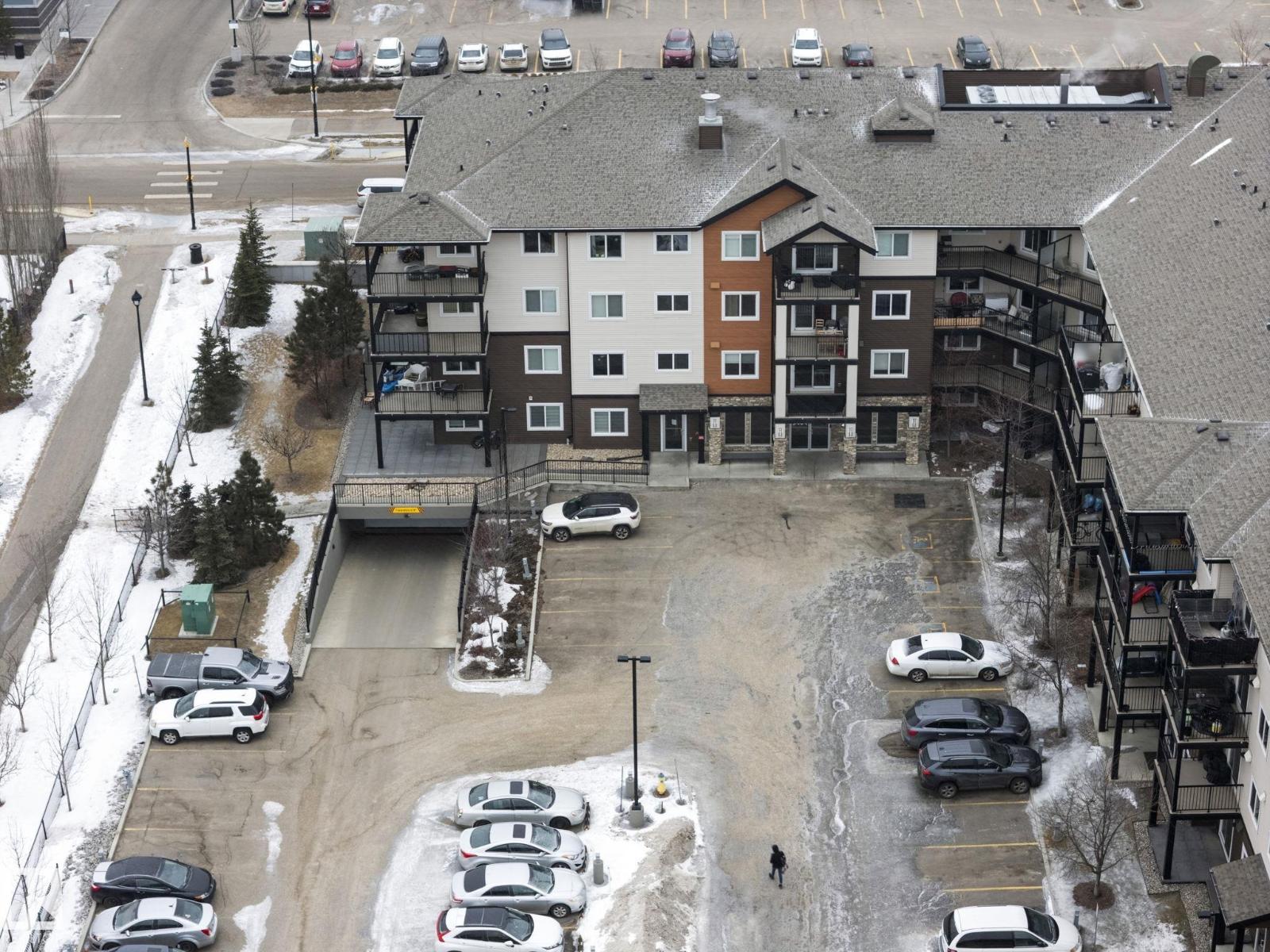 Perched on the top floor corner with breathtaking downtown Edmonton skyline views, this rare 3 bed, 2 bath condo is easily one of the best units in South Edmonton—it truly doesn’t get better than this! Large windows flood the home with tons of natural light, creating a bright and inviting living space. The upgraded kitchen features shaker-style cabinetry, stainless steel appliances, and a large island perfect for entertaining. The spacious primary bedroom offers a his & hers walk-through closet leading to a private 4-pc ensuite, while bedrooms 2 and 3 are thoughtfully located on the opposite side for added privacy. Enjoy in-suite laundry, new carpets in all three bedrooms (2023), 2 full 4-pc bathrooms, 1 titled underground parking stall, and shared bike storage, with low condo fees that include heat and water. Located in Charlesworth, just steps to Superstore, Walmart, Movati, transit, schools, walking paths, and countless amenities, with quick access to Ellerslie Road and Anthony Henday. (id:51989)