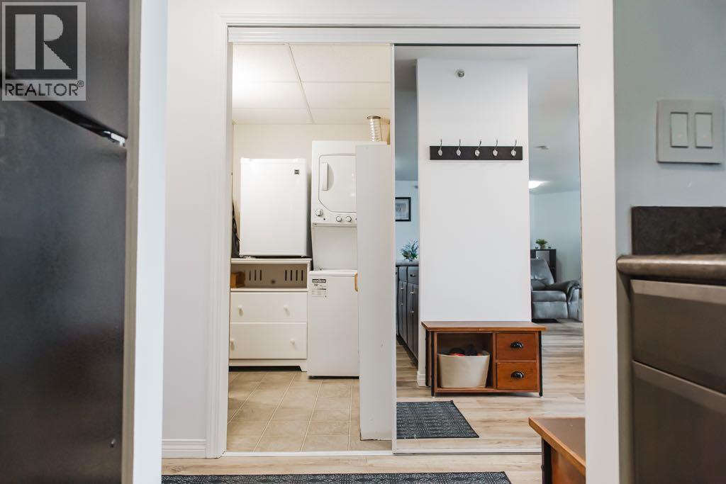 Beautifully refreshed 4th-floor condo offering over 1,000 sq ft of comfortable living space, exceptional value, and truly no other unit quite like it. This 1-bedroom plus den, 1-bathroom home is thoughtfully updated and completely move-in ready. The den functions perfectly as a spacious primary bedroom, comfortably fitting a king-sized bed and featuring a walk-in closet.Extensive upgrades include seamless vinyl plank flooring throughout, fresh paint on all walls and doors, updated LED lighting, and a fully refreshed bathroom with a new bathtub, new tub surround, and perimeter tile. Additional improvements include an updated sink and modern honeycomb window coverings. The kitchen is well-equipped with an eating bar, all appliances, a newer over-the-range microwave (2 years), and a brand-new dishwasher. Sensor lighting in the laundry and den closet, smart home switches, and a smart front door lock add everyday convenience. Extra flooring is also included.Enjoy a sun-soaked, south-facing balcony with a natural gas BBQ hookup, plus the added convenience of underground heated parking (stall #406). The building is transitioning to a fob entry system for enhanced security and ease of access, and residents have access to an on-site fitness facility.Condo fees of $661.06/month include heat, water, sewer, garbage, building insurance, maintenance, snow removal, and professional management—delivering a truly low-maintenance lifestyle. (id:51989)