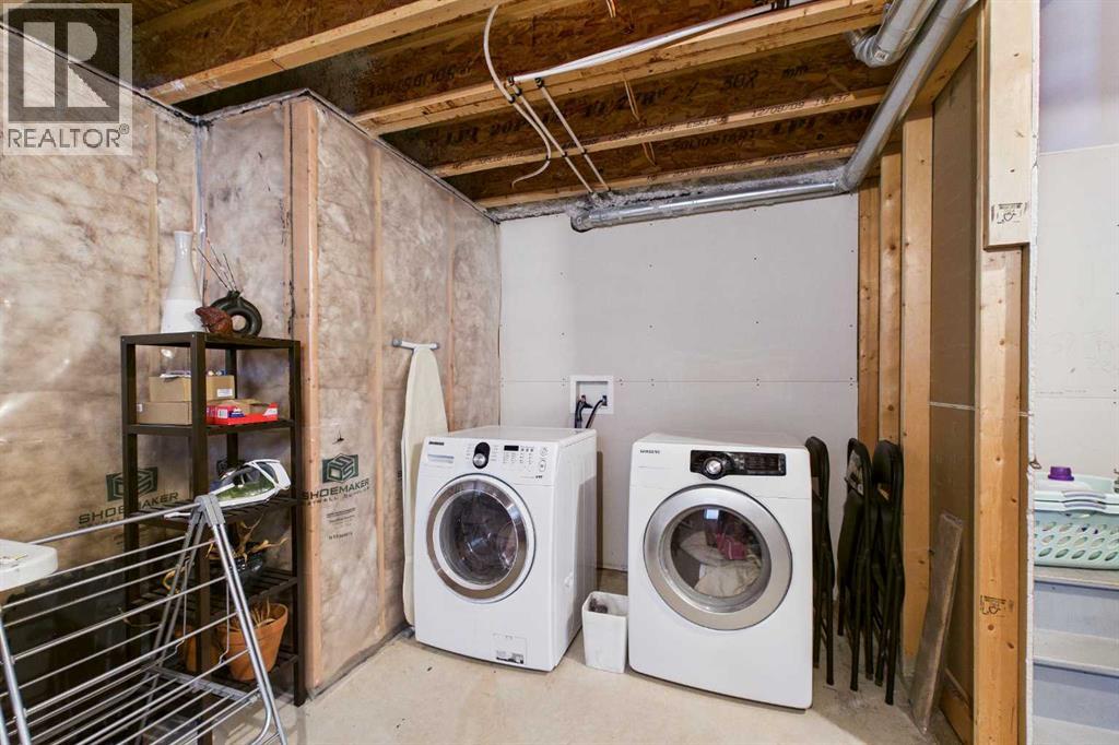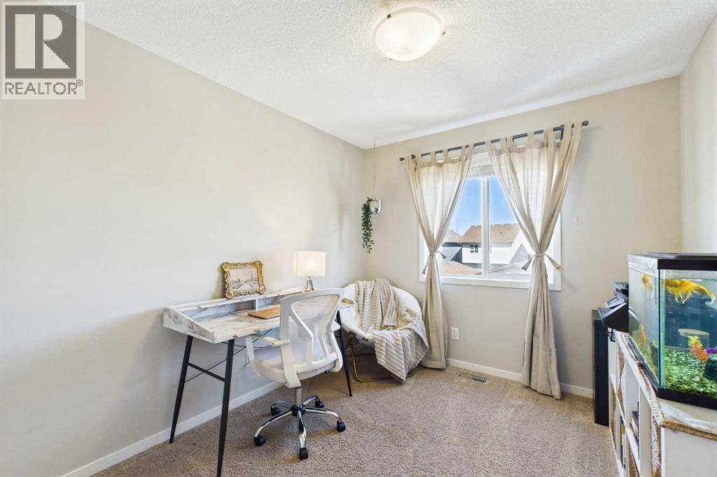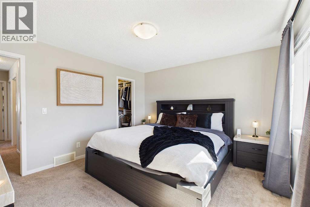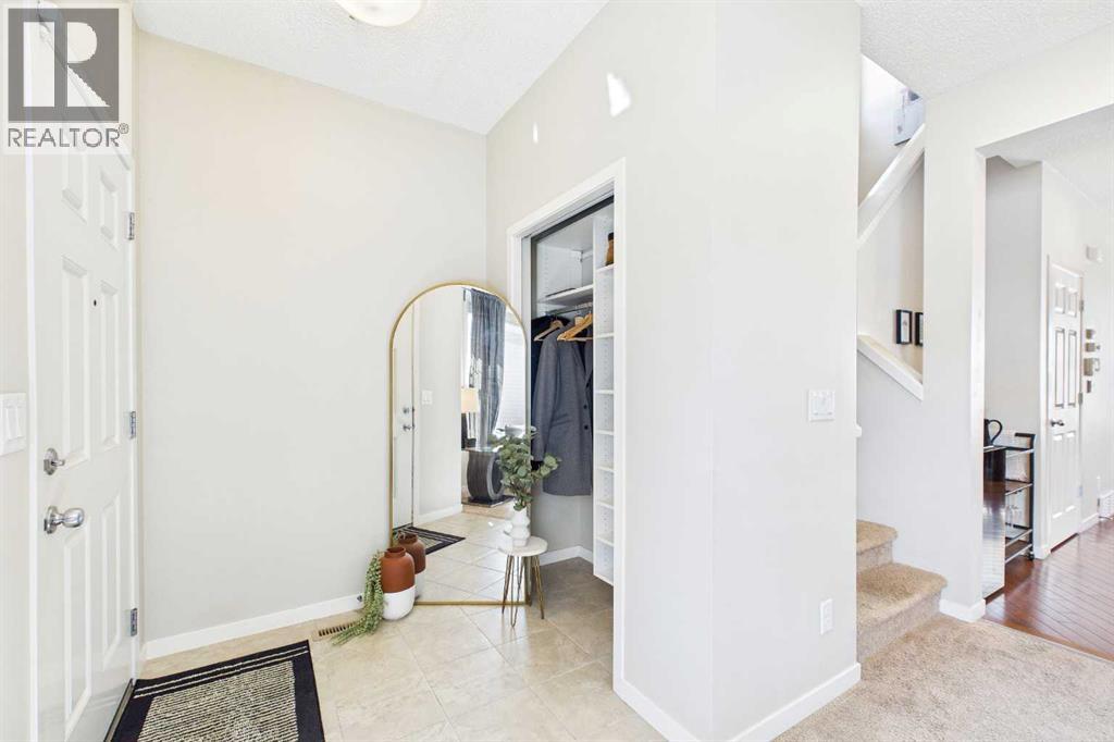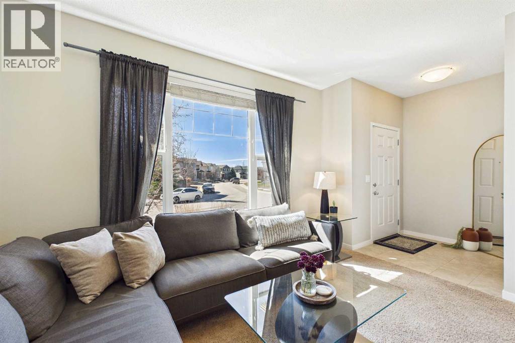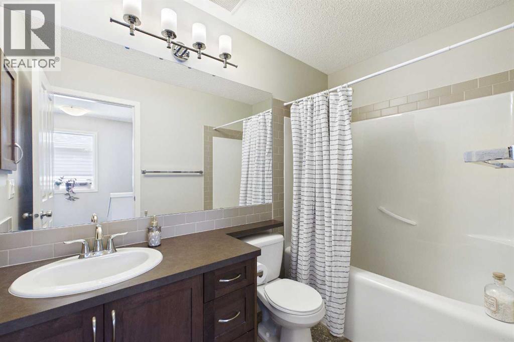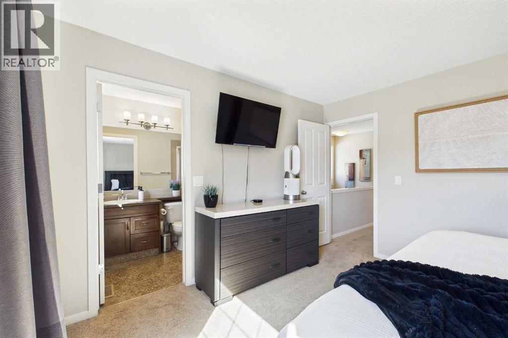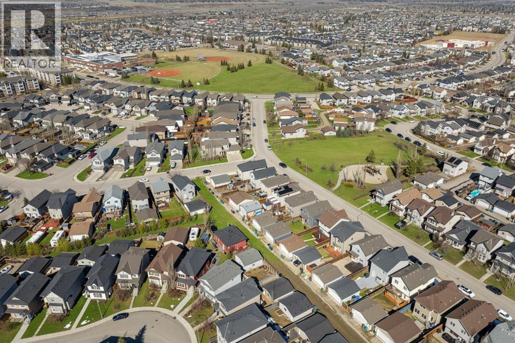 Welcome to this beautifully maintained 3-bedroom, 2.5-bath family home, offering a perfect balance of style, comfort and everyday functionality. Located on a quiet street in the sought after community of Cranston! Thoughtfully designed with 9’ ceilings, large windows, and modern finishes throughout, the bright main floor features an open-concept layout ideal for both relaxing and entertaining. A sun drenched south facing living room welcomes you to the home featuring a cozy gas fireplace. The upgraded kitchen features dark cabinetry, stainless steel appliances, a central island, a corner pantry, and rich hardwood flooring, all flowing into a spacious dining area perfect for hosting. At the rear of the home, a practical mudroom leads out to a fully fenced & landscaped backyard with a generous 2 tiered deck and a double detached garage, offering both convenience and a great outdoor living space. Upstairs, the spacious primary suite includes California Closet built-ins showcasing the large walk in closet, and a private 3pc ensuite, while two additional bedrooms and a full bathroom provide plenty of room for family or guests. The basement offers great potential for future development with two large windows and a bathroom rough-in. Additional features include a tankless hot water heater for greater efficiency. Ideally located in a family-friendly community close to top-rated schools, amenities, the HOA facility, parks, pathways, the Bow River, and with easy access to Deerfoot and Stoney Trail-this move-in ready home is an incredible opportunity. (id:51989)