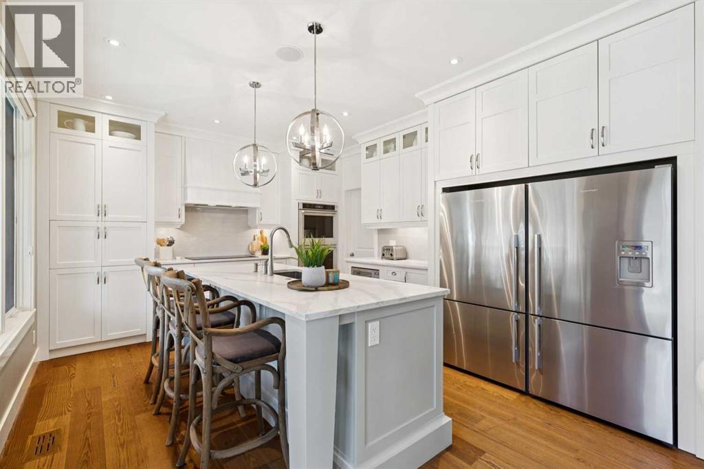 Location, location, location 50 x124' lot! This timeless home is situated on one of the best tree lined streets in Altadore with a west facing beautifully landscaped backyard that is truly an oasis. The main floor plan is the perfect combination of open plan and functional focus. Features include a generous foyer, private powder room, distinct dining room and office with a large mudroom off to the side in its own distinct space. The back of the house opens up into a great room, nook and kitchen/pantry with large windows and patio doors opening up onto the covered composite decking. The upper floor includes a massive master bedroom and spa like ensuite, a large laundry room, as well as 2 considerably sized bedrooms, each with their own sizable walk-in closets sharing a main bathroom. The lower level includes a rec room with bar and flex area, two additional bedrooms as well as a bathroom, mechanical and storage room. This home has been meticulously maintained and shows pride of ownership. The kitchen was upgraded in 2023 with included new double wall ovens, new induction cooktop, new dishwasher and new hood fan. A/C, in-floor heating, vacuflo, and underground sprinkler system are some of the highlights. The oversized double garage with separate attached shed perfect for storage of bikes and outdoor equipment. The wood burning fireplace in the backyard is the perfect gathering place. This is a perfect family home both indoor and outdoor in one of the best communities in Calgary surrounded by a plethora of schools, amenties, bike paths, and only 5 minutes to DT and major thoroughways out of town. Book your showing today! (id:51989)