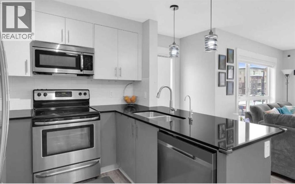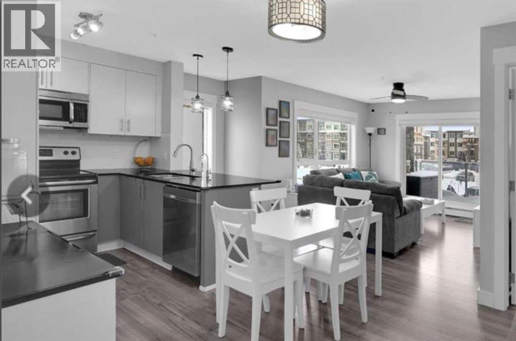 Welcome to this beautifully maintained and UPGRADED CORNER UNIT CONDO, located on the second floor offers over 943.5 sq ft of comfortable living space, featuring 2 spacious bedrooms, 2 full bathrooms, and the convenience of titled heated underground parking and secure caged storage locker. As you enter, you’ll be greeted by an open-concept design that includes a well-appointed kitchen, a dining area, and a versatile flex space perfect for an office. The kitchen is a chef’s dream, featuring a large counter with bar seating, granite countertops, stainless steel appliances. The owner has invested over $15k in upgrades including CUSTOM CABINETRY , HALL TREE ENTRYWAY BENCH ,COAT RACK with SHOE STORAGE, SMART LOCK for main DOOR , WATER PURIFIER ,SAMSUNG DISHWASHER, NEW LIGHT FIXTURES( Kitchen and dining) and BOTH WASHROOMS FIXTURES, New VINYL PLANK FLOORING (no carpet) has been installed throughout the unit, PATIO TILES, REMOTE CONTROLLED ZEBRA BLINDS for all windows and CEILINGS FANS in both bedrooms and Living room add extra convenience and comfort and beautiful Balcony to spend time with friends ,enjoying BBQ.Located in the vibrant Skyview Ranch community, this condo offers easy access to local amenities, parks, schools, shopping, and major roadways. Whether you're a first-time homebuyer, a growing family, or someone looking for a modern, low-maintenance property, (id:51989)