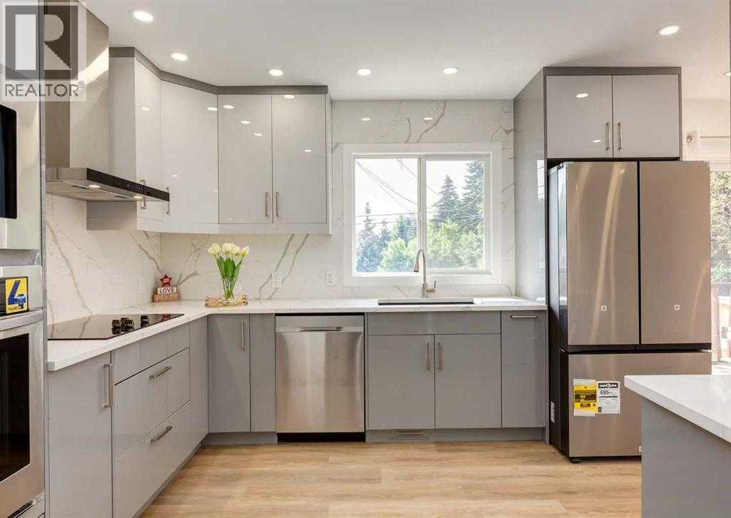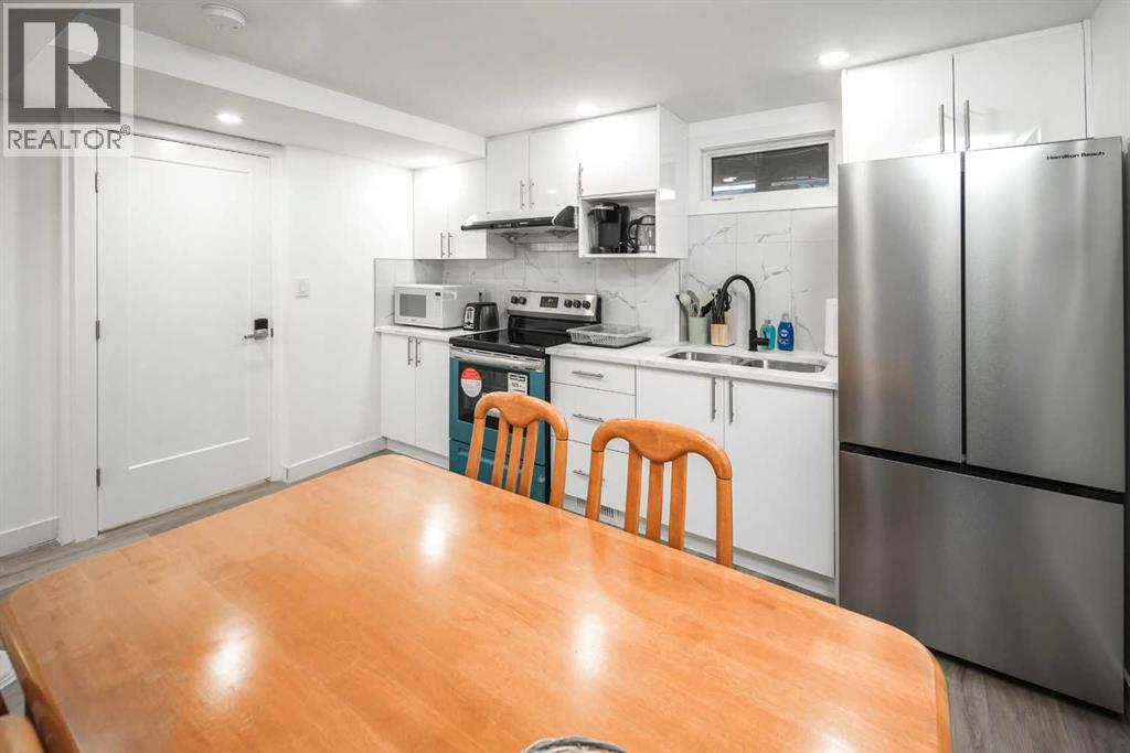 Fully renovated down to the studs, this beautifully updated 4-level split home is located in the highly desirable community of Brentwood, offering exceptional convenience within walking distance to the LRT station, steps from bus stops, and just minutes from the University of Calgary, Brentwood Village, and Nose Hill Park.The exterior has been extensively upgraded with brand-new stucco, newer shingles on both the house and the oversized double garage, new concrete steps and walkways, new fencing, new parking pads, and newly completed front and backyard landscaping. The basement level also features new legal egress windows.Inside, the home welcomes you with a bright open-concept living and dining area, complemented by a brand-new modern kitchen, new flooring throughout, flat ceilings, newer windows, and a new patio door that enhances both natural light and functionality.The upper level offers two spacious bedrooms and a fully renovated 3-piece bathroom.The lower level features a separate entrance and includes a comfortable primary bedroom with a beautifully finished 4-piece ensuite, along with a convenient 2-piece guest bathroom.The basement level has been thoughtfully redesigned to include a brand-new 3-piece bathroom, an additional bedroom, and a newly added kitchen area equipped with a stove, refrigerator, hood fan, and space for a microwave. A dedicated dining area completes the space, providing excellent flexibility for extended family living.Major upgrades include brand-new electrical and plumbing systems, a new washer and dryer, a new hot water tank, and a newer high-efficiency furnace.Move-in ready and extensively renovated, this home offers modern upgrades, flexible living space, and an unbeatable location in one of Calgary’s most sought-after communities. A rare opportunity at this price point. (id:51989)