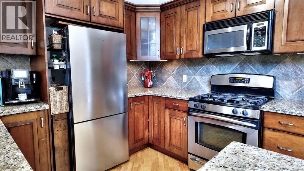 Nestled in the prestigious Portal at Three Sisters, this 2-bedroom, 2-bathroom Built Green townhouse offers an elevated mountain lifestyle where modern updates meet alpine design. The entire unit was just repainted and features fresh carpets throughout, ensuring a pristine, move-in-ready experience. The main living area is defined by soaring vaulted ceilings and towering windows that invite natural light into the open-concept space, while a two-sided gas fireplace adds warmth to both the living and dining areas against a backdrop of framed mountain vistas. The well-appointed kitchen balances style and function with granite countertops, stainless steel appliances, and a gas stove. A standout feature of this residence is the inclusion of expansive balconies- a rare find in Canmore that significantly extends your living space. The main floor deck offers ample room for outdoor dining and lounging, providing a private vantage point to take in the surrounding peaks. This level also includes a spacious guest bedroom and a full four-piece bathroom, providing comfort and privacy for visitors. Upstairs, a sun-drenched loft serves as a versatile sanctuary for a home office, illuminated year-round by a striking bank of skylights. The primary suite is a true escape, featuring a walk-in closet and a beautifully upgraded master bathroom that adds a touch of modern luxury. Adding to the home's unique appeal, the primary bedroom boasts its own additional large private balcony, another rare luxury for quiet, starlit evenings or a peaceful morning coffee in total solitude. Beyond the home, the location offers an unparalleled lifestyle for the active resident. You are perfectly positioned within walking distance of several scenic dog parks, the local frisbee golf course, and the IGA at The Gateway for daily essentials. Complete with two assigned parking stalls and a storage unit in the secure underground parkade, this property perfectly blends fresh, modern character with the very best of Three Sisters living. (id:51989)