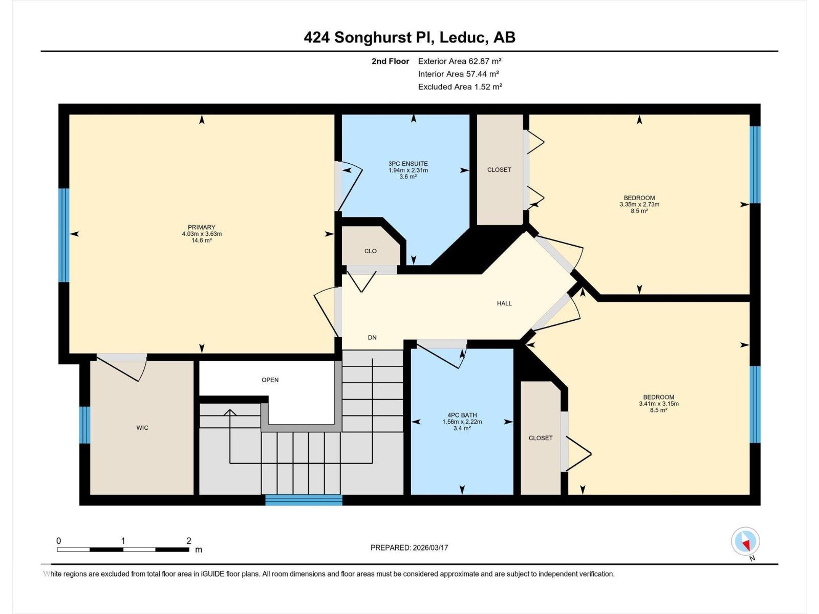 | Upper Level | Primary Bedroom | 3.63 m | 4.03 m | 3.63 m x 4.03 m |