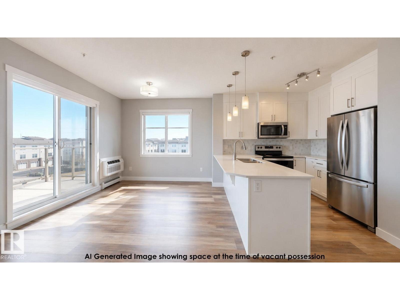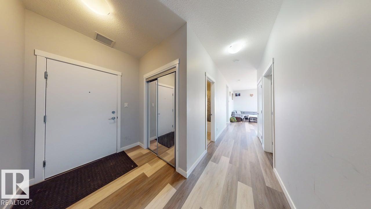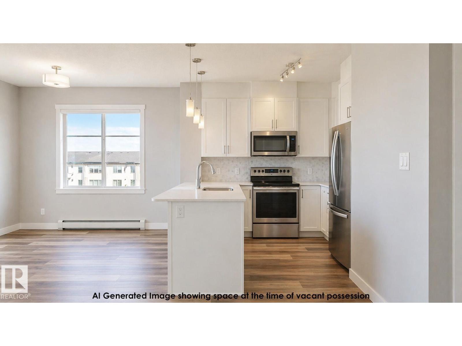 TOP FLOOR CORNER UNIT. 2 bedrooms, 2 full baths, UNDERGROUND heated parking, and A/C. The modern kitchen features QUARTZ countertops, soft-close cabinetry, and S/S appliances. Enjoy 9' ceilings, wide-plank flooring, and a bright living area leading to a BALCONY. The primary bedroom includes a walk-in closet and ensuite. Added perks: IN-SUITE LAUNDRY, SAME FLOOR-STORAGE, and all UTILITIES INLUCDED in condo fees. Minutes to shopping, schools, Ellerslie, and the Henday! (id:51989)