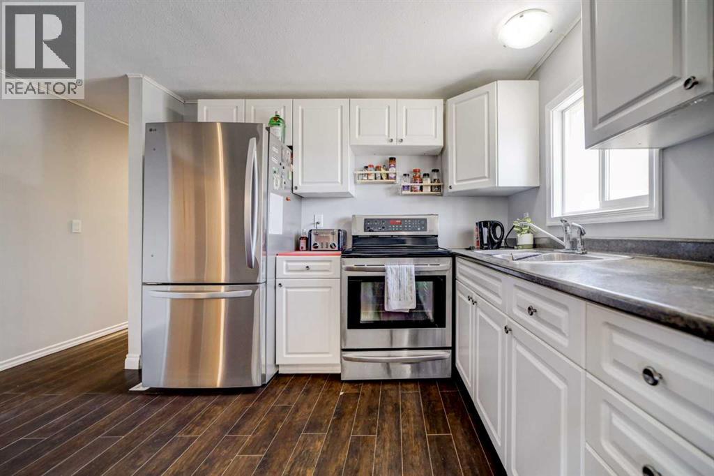 Welcome to 427 10th Street - move-in ready on a privately owned lot! This three-bedroom mobile home has been fully renovated and freshly painted with the added bonus of an attached garage. The fully fenced yard has two greenhouses, one with an attached shed for storage. There is also a wood-fired cedar-lined sauna for your enjoyment. Even with those extras, there is ample parking with plenty of room for an RV. The mobile home and garage are both anchored, and there is torch on roofing on the mobile home and 3 lb spray on with poly urea coating on the garage roof. If this well-maintained property fits your budget, it is definitely worth taking a look. Call your favourite REALTOR® to see it today! (id:51989)