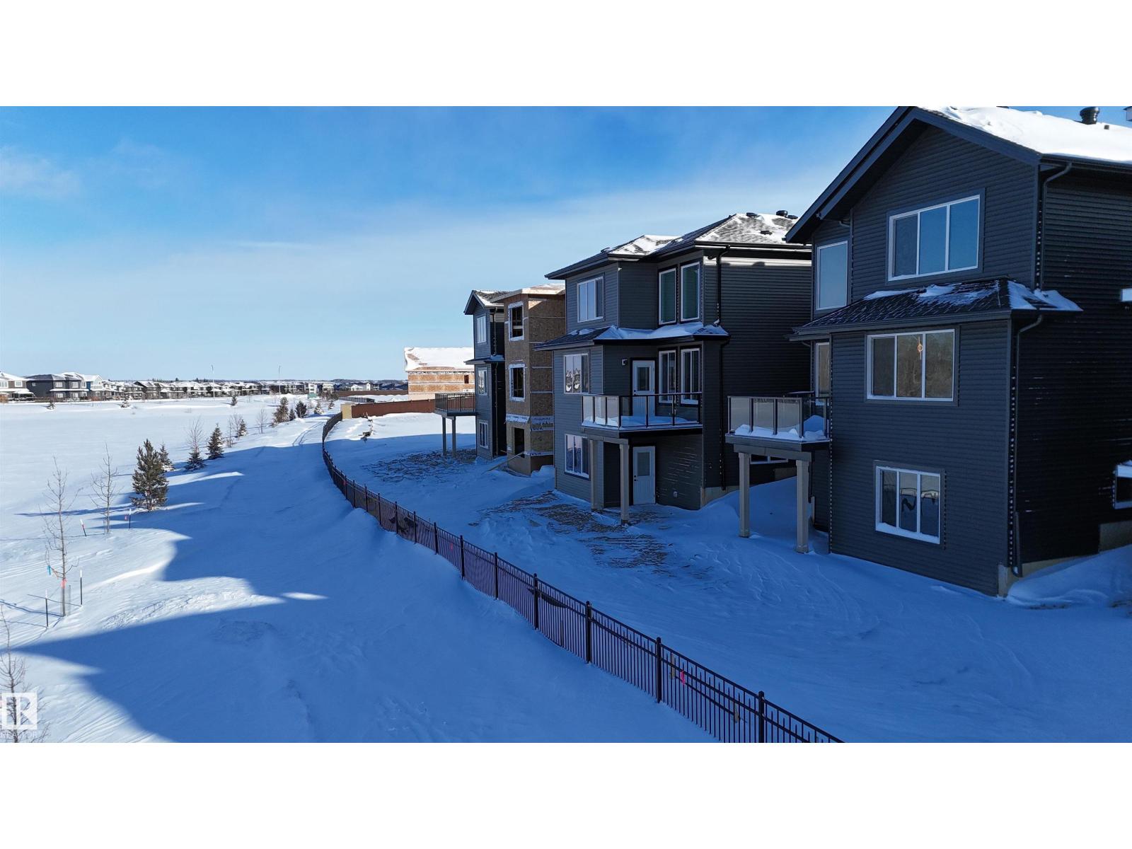 BRAND NEW Quick Possession 2 Storey home in the vibrant community of FENWYCK, backing onto greenspace w/pond & walking trails. The perfect setting for an active lifestyle w/no rear neighbors & beautiful west-facing views. This thoughtfully designed home features an oversized double attached garage 20x27 (trucks/SUVs) w/floor drain, 9’ ceilings on the main flr, durable vinyl flooring, upgraded lighting & triple pane windows. The stunning living room showcases soaring 18’ ceilings, expansive windows & elegant gas FP centerpiece. The designer kitchen offers quartz counters, built-in hood fan & a convenient walk-through pantry. Main flr den provides ideal space for home office. Iron railing & staircase lighting add style. Upstairs includes laundry, custom closet shelving & a luxury ensuite w/large format tile, glass/tile shower, soaker tub, & private water closet. Maintenance-free dura deck w/glass & aluminum railing complete the exterior. The WALKOUT basement is a clean slate, ready for your personal touch (id:51989)