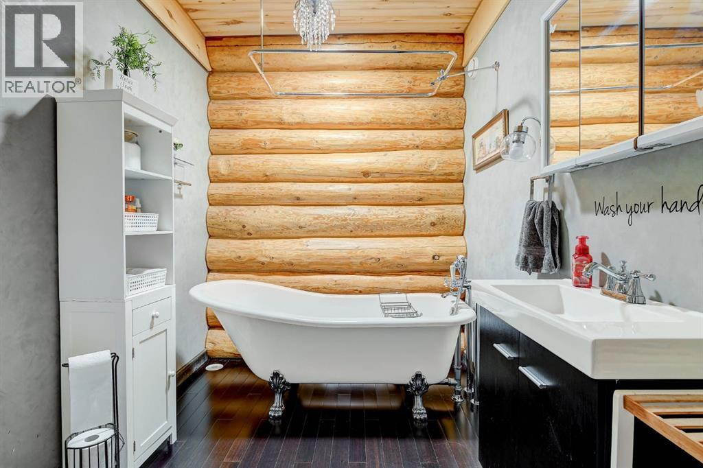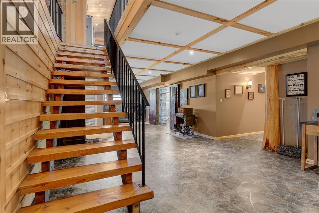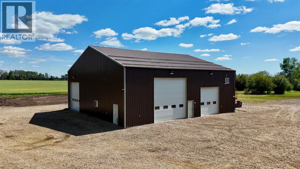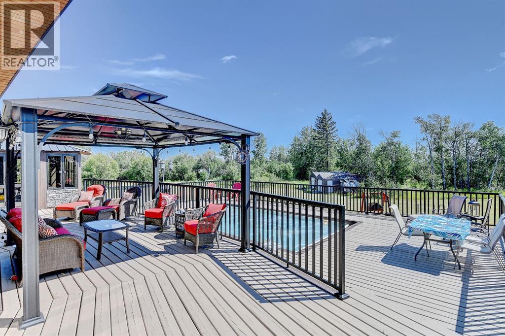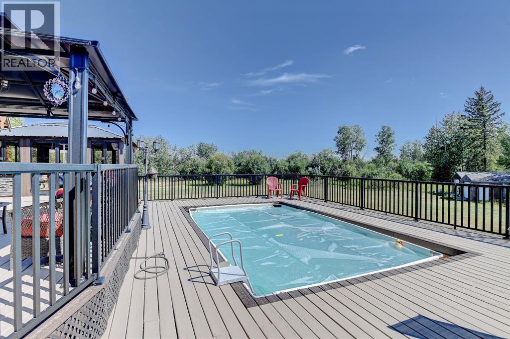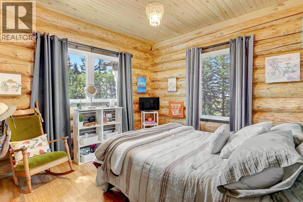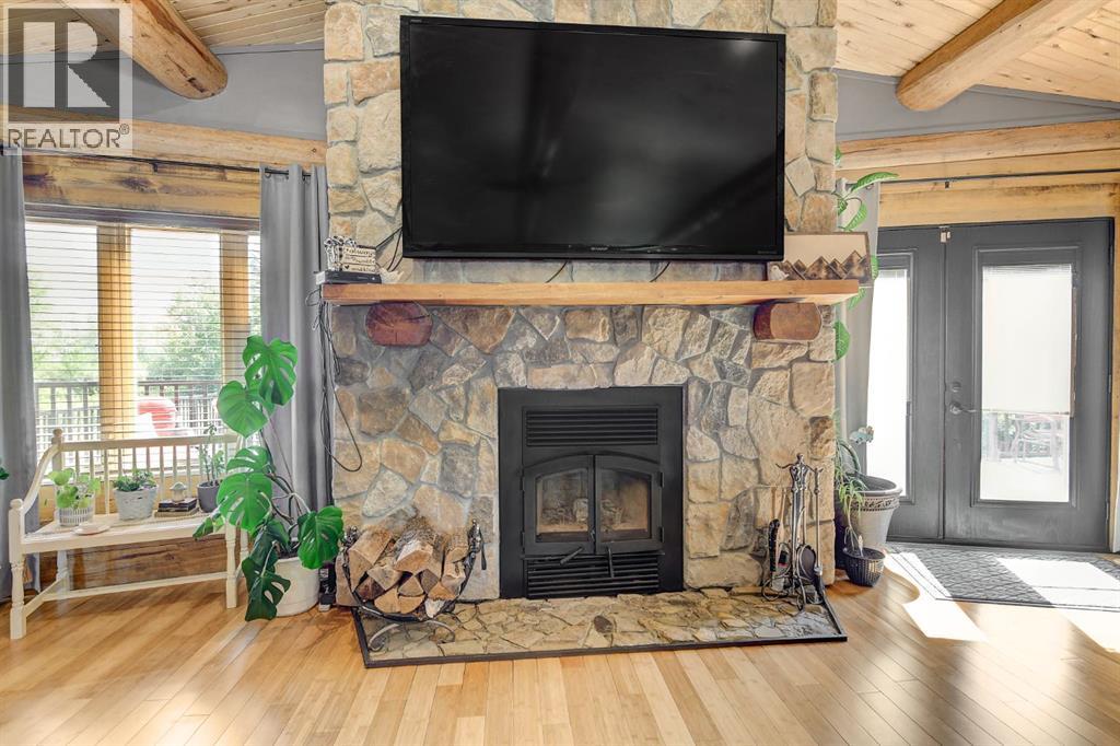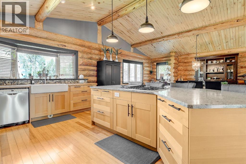 PRIVATE GATED 7-ACRE RETREAT WITH LUXURY LOG HOME AND 60’x60’ HEATED SHOP!Welcome to this extraordinary 7-acre gated and fully fenced estate, showcasing a stunning 2,518 sq ft custom log home built in 2009. This one-of-a-kind property is the perfect blend of rustic elegance and modern comfort, featuring 4 spacious bedrooms, 3 luxurious bathrooms, and a heated 26’ x 28’ attached garage.Step into the open-concept main floor, where you’ll find soaring ceilings, warm bamboo flooring, and a cozy wood-burning fireplace in the expansive living area. The chef’s kitchen is a true highlight with stainless steel appliances, a massive island with quartz counter tops, and ample cabinetry—perfect for entertaining. Enjoy ultimate relaxation in the massive primary suite complete with access to the private deck, pool, and hot tub. The ensuite boasts a steam shower and jetted jacuzzi tub.Three additional bedrooms, a full bathroom with charming clawfoot tub, main floor laundry, and deck access from both the primary and living areas complete the main floor.The fully finished basement features in-floor heating, a large craft room (easily converted back to a 5th bedroom), a gym area, a spacious theatre room, a third full bathroom, and a built-in sauna.Extensive Upgrades Include:•All exterior logs professionally refinished with premium log oil stain•All surrounding decks refinished with high-quality products•New 200,000 BTU boiler•New high-velocity air exchanger•New Boiler Mate hot water system•Central A/C•In-floor basement heat + forced air heating throughoutBackyard Oasis:•Above-ground pool with gas heater•Hot tub in enclosed gazebo•3 natural gas BBQ hookups•Private powered entrance gateMassive 60’ x 60’ Heated Shop:•Fully finished with 11’ x 48’ mezzanine man cave•In-floor heat with insulated floor•Full-length radiant make-up heater•Dual stainless steel sink, shower, RV sewer dump•50-amp interior & exterior RV plugs•Multi ple 20-amp plugs throughout•220V outlets for welder, air compressor, and pressure washer *. Dug out water source for water all outside areas and treesThis exceptional property offers peace, privacy, and high-end amenities rarely found together. Whether you’re seeking a luxurious family retreat or a hobbyist’s paradise, this property delivers it all. (id:51989)