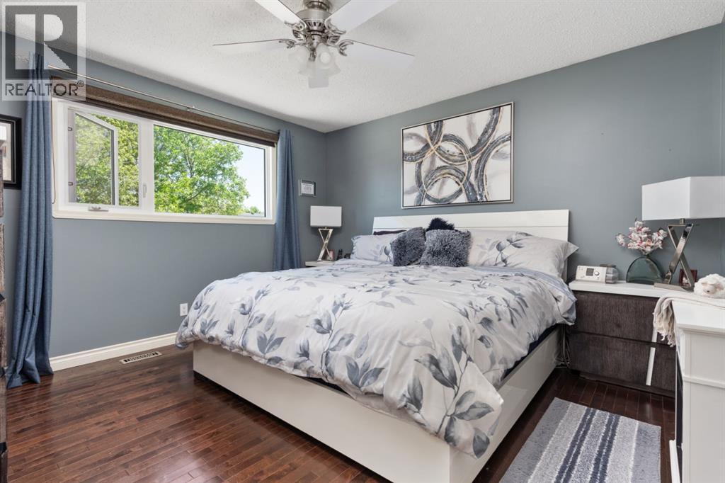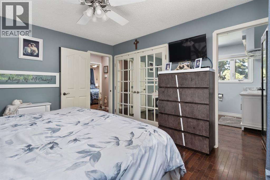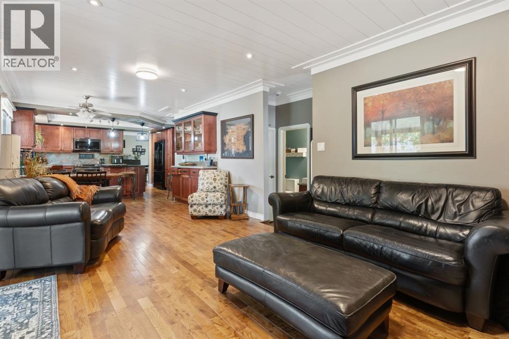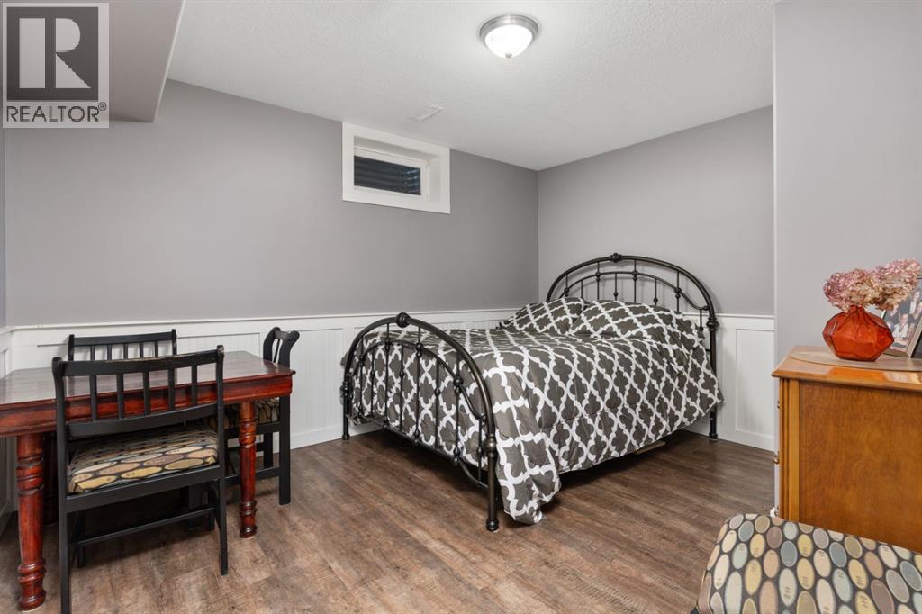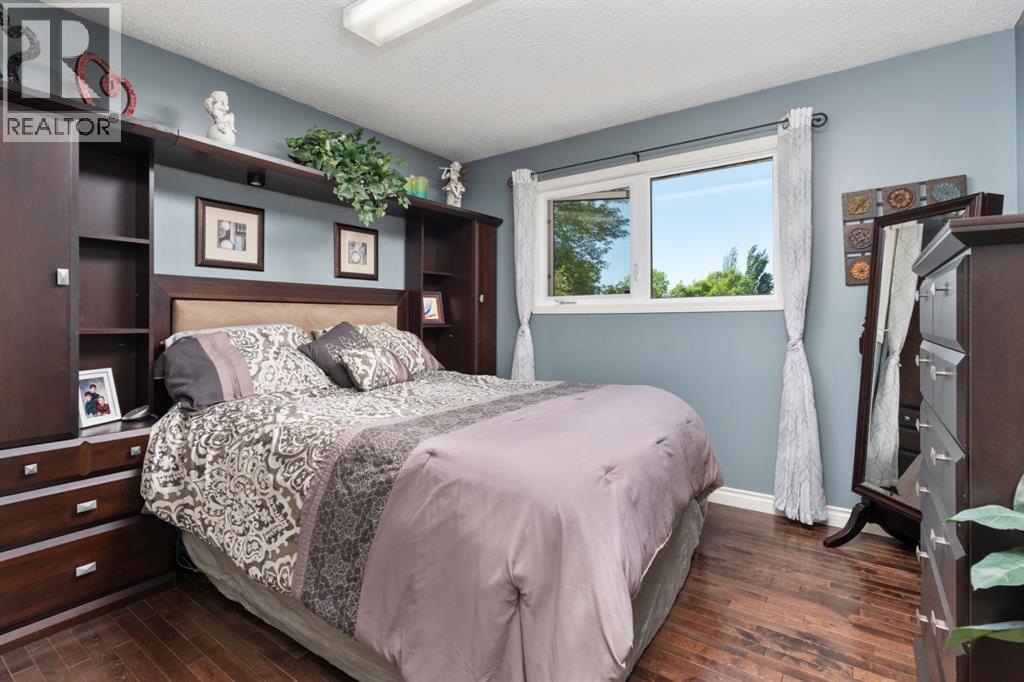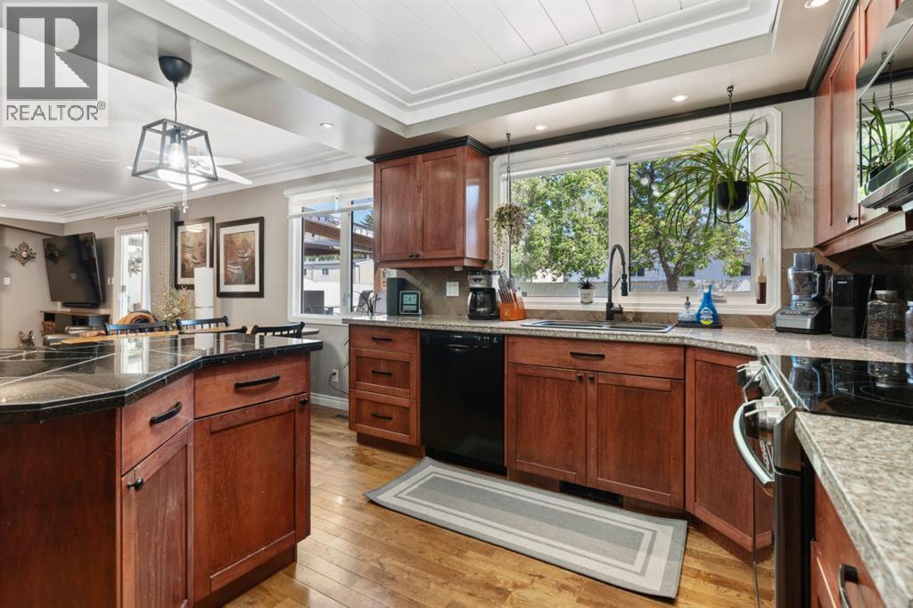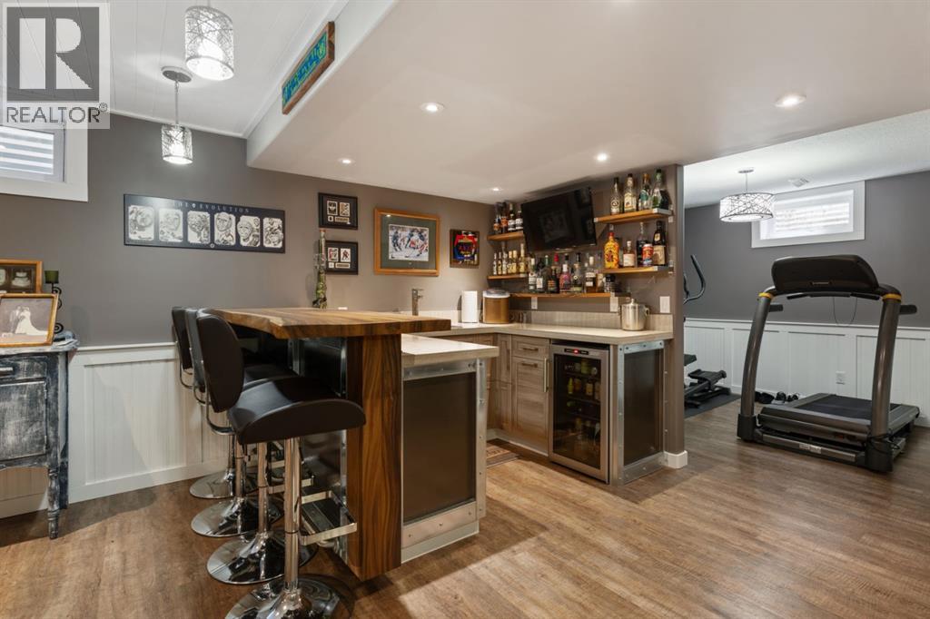 Welcome Home to 4313 - 66 St - a True Show Stopper! Step into comfort and style with this beautifully renovated home that blends timeless charm with modern upgrades. Perfect for families, this property offers a warm, welcoming atmosphere with thoughtful features throughout. Custom Cabinetry and granite tile counters, updated vinyl windows, rich hardwood flooring, doors/trims, pex plumbing, wainscotting, crown mouldings, custom wood features and so much more. From the bright West Facing living room you find a dedicated home office that could be converted back to a dining area as needed although there is a dinette off of the Fully Updated Custom Kitchen. Relax around the wood stove insert fireplace with beautiful stone finish or duck through the slider doors to a private covered deck with gas line for fire pit and roll down screens to keep out the wind. Around the corner you'll find a wonderful back entry, with outdoor and garage access, a 2pc bath for guests and handy laundry with built-in cabinetry. Follow the Hardwood Floors upstairs to find 3 well appointed bedrooms - the Primary with a beautiful custom 4pc ensuite - and an additional fully renovated 4pc bathroom. Retire to the fully renovated basement for the big game and enjoy in the custom bar and family room. You'll also find a 4th bedroom, a 3pc bathroom, Flex room and what every home of this size needs - a Huge Storage room. Enjoy the outdoors with mature trees, low maintenance front patio and back covered deck, stone paver walkways, a private hot tub area (hot tub negotiable), a handy shed and fenced with gate for future parking. Finally you'll find an attached 22x24 Heated Garage with built-in workbench and shelving. This home has been meticulously planned and masterfully updated - you'll love coming home. (id:51989)