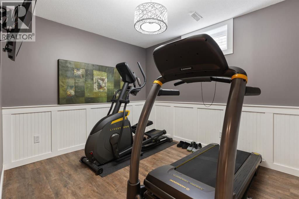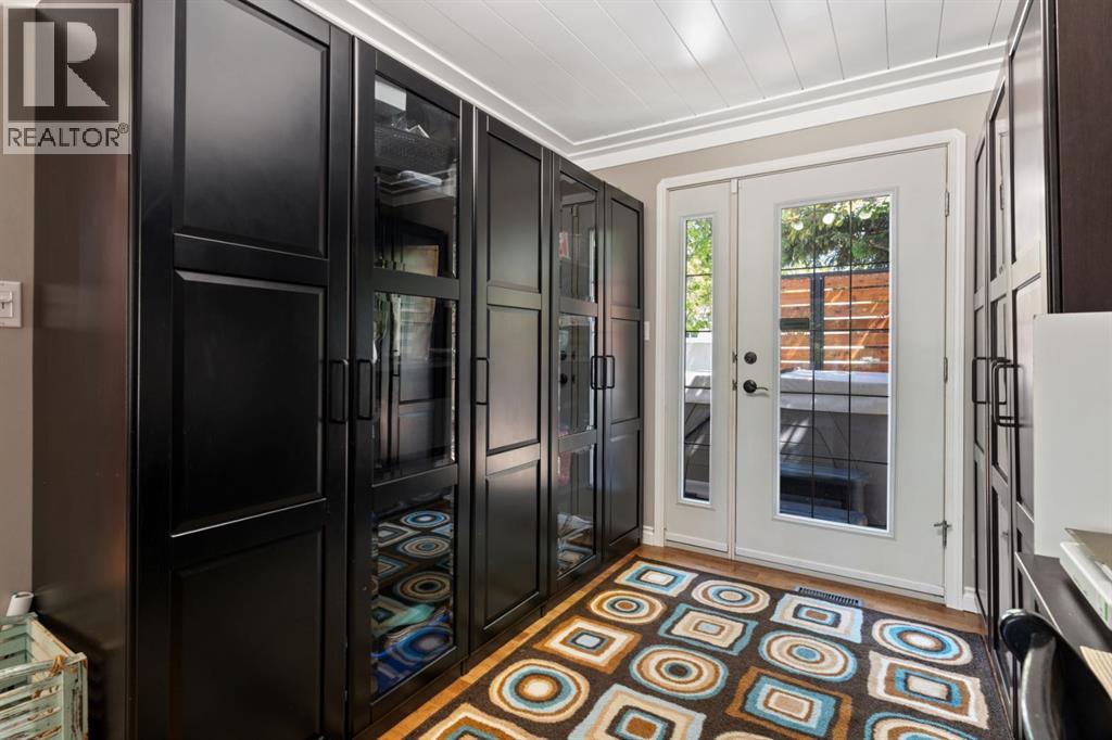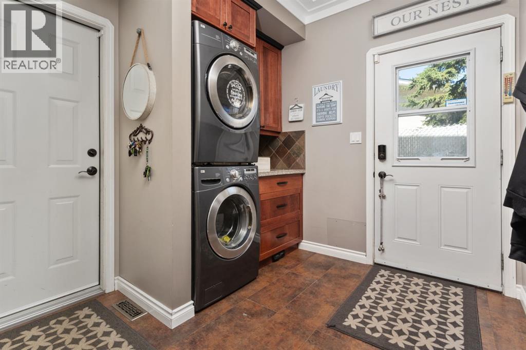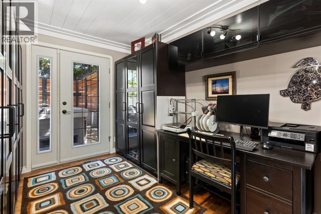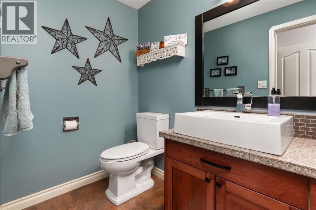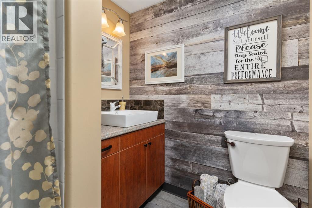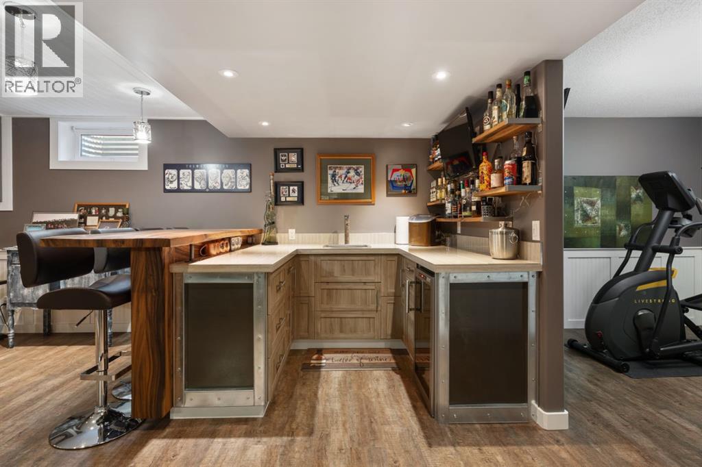 Welcome Home to 4313 - 66 St - a True Show Stopper! Step into comfort and style with this beautifully renovated home that blends timeless charm with modern upgrades. Perfect for families, this property offers a warm, welcoming atmosphere with thoughtful features throughout. Custom Cabinetry and granite tile counters, updated vinyl windows, rich hardwood flooring, doors/trims, pex plumbing, wainscotting, crown mouldings, custom wood features and so much more. From the bright West Facing living room you find a dedicated home office that could be converted back to a dining area as needed although there is a dinette off of the Fully Updated Custom Kitchen. Relax around the wood stove insert fireplace with beautiful stone finish or duck through the slider doors to a private covered deck with gas line for fire pit and roll down screens to keep out the wind. Around the corner you'll find a wonderful back entry, with outdoor and garage access, a 2pc bath for guests and handy laundry with built-in cabinetry. Follow the Hardwood Floors upstairs to find 3 well appointed bedrooms - the Primary with a beautiful custom 4pc ensuite - and an additional fully renovated 4pc bathroom. Retire to the fully renovated basement for the big game and enjoy in the custom bar and family room. You'll also find a 4th bedroom, a 3pc bathroom, Flex room and what every home of this size needs - a Huge Storage room. Enjoy the outdoors with mature trees, low maintenance front patio and back covered deck, stone paver walkways, a private hot tub area (hot tub negotiable), a handy shed and fenced with gate for future parking. Finally you'll find an attached 22x24 Heated Garage with built-in workbench and shelving. This home has been meticulously planned and masterfully updated - you'll love coming home. (id:51989)