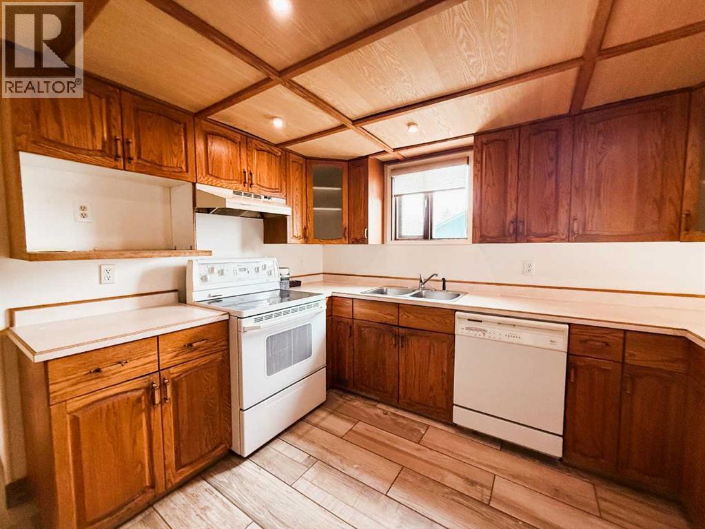 Welcome to this charming family home in the heart of Rycroft — where rural warmth meets community convenience. The home sits on a good-sized lot with mature trees and backs on to a park with playground. The property offers an ideal layout for multigenerational living or entertaining. The home boasts 3 bedrooms and a 4-piece bath upstairs, plus a lower level that features a fourth bedroom, a 3-piece bath w/tub, and a spacious entertainment room with a dry bar. Add to that abundant storage throughout, and you’ve got a home designed for everyday life. The upper level is bright and welcoming, with a bay window in the living room, dining area with garden-door access to a covered composite deck, and oak cabinet kitchen that comes with fridge, stove and dishwasher, serves as the hub of the home. Laundry room is conveniently located upstairs as well. Outside, the sun-drenched south-facing backyard includes a large sundeck that steps down toward the yard, where you’ll find raspberry bushes and a practical shed. Oversized parking pad and attached garage give you flexibility for vehicles or toys. Inside, key updates include new tile flooring in the main living areas, fresh paint, a newer high-efficiency furnace, and newer shingles. The home also features a chimney from a past fireplace that offers the opportunity for possible future revival, if desired. Rycroft delivers a peaceful, community-spirit lifestyle while keeping you connected. The village offers grocery, gas, local restaurants, convenience stores, and essential services. Outdoor recreation is right at your doorstep: enjoy nearby parks, the Rycroft Arena, Kin Park, and easy access to historic Dunvegan Provincial Park, just a short drive away. While rural, Rycroft is only 64km north of Grande Prairie, giving you access to full urban amenities within an hour’s drive. This home strikes a rare balance: the tranquility and space of rural living, paired with strong bones, smart improvements, and ready access to community and nature. Don’t miss your chance to make it yours! Call to view today! (id:51989)