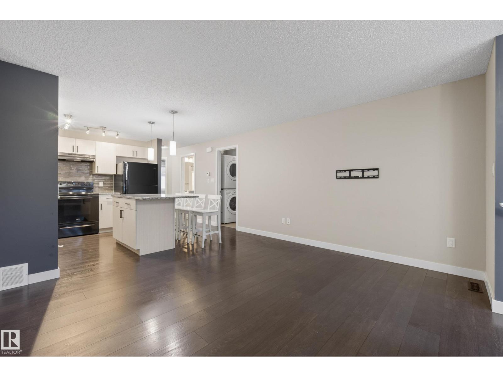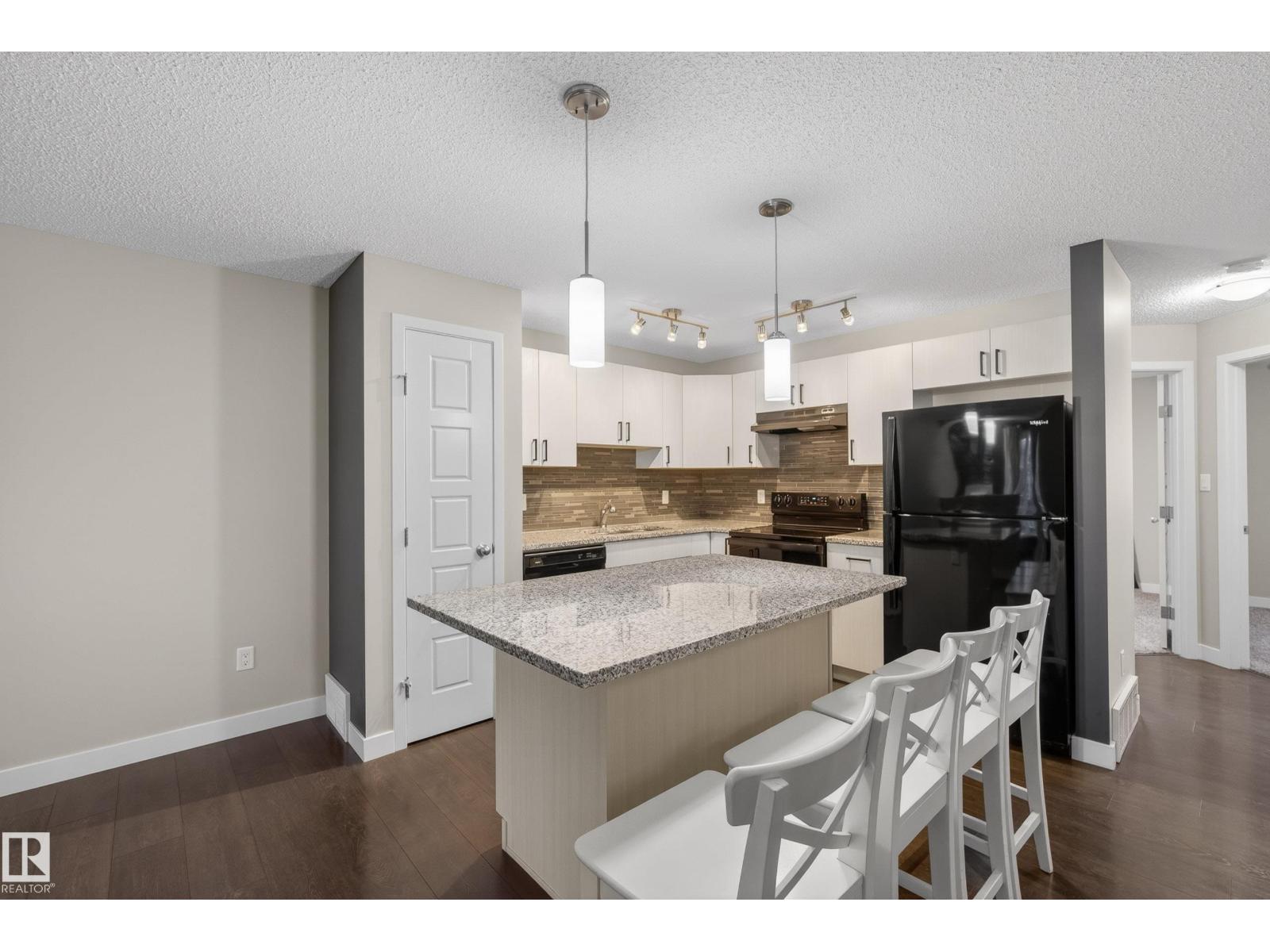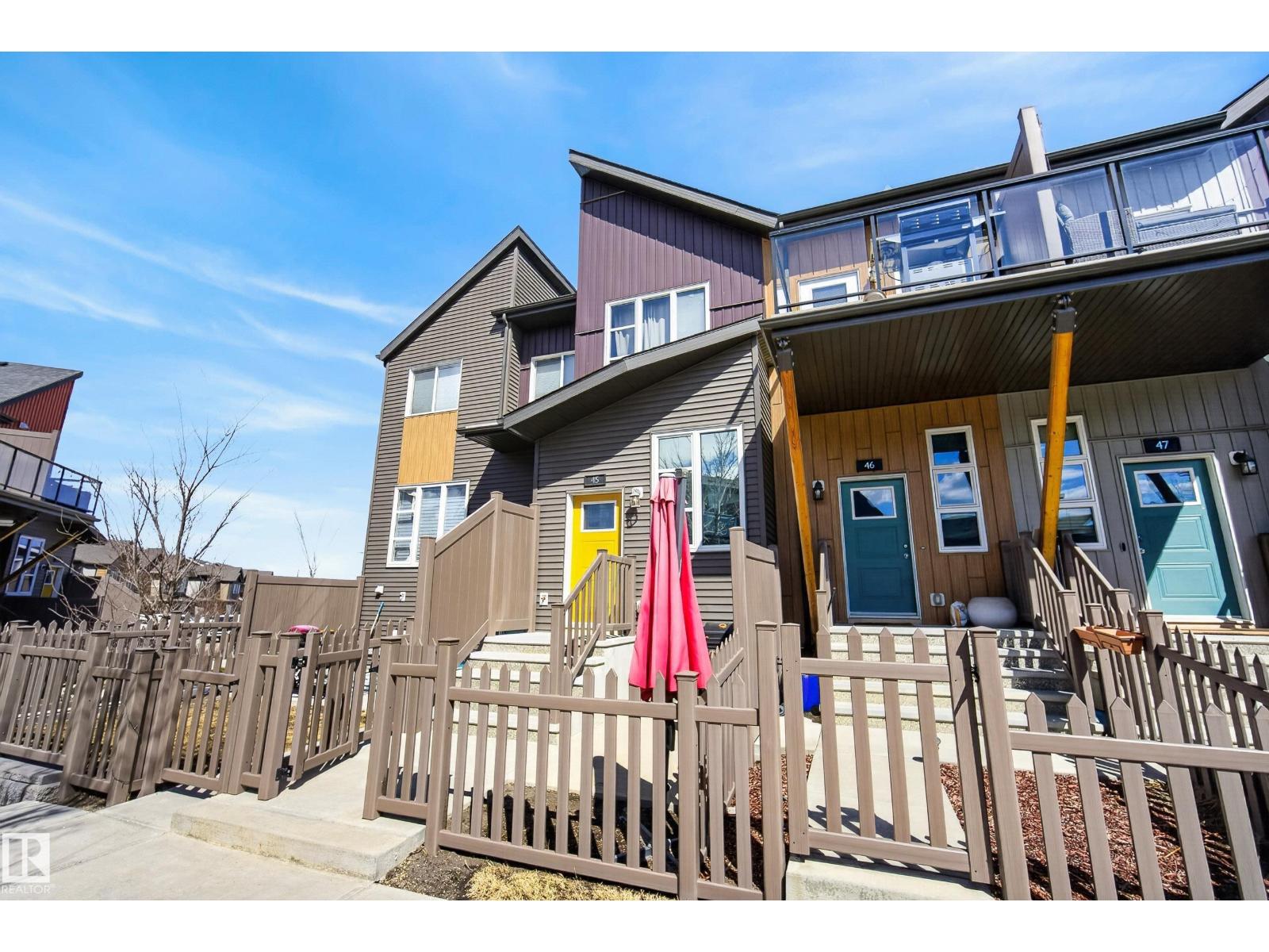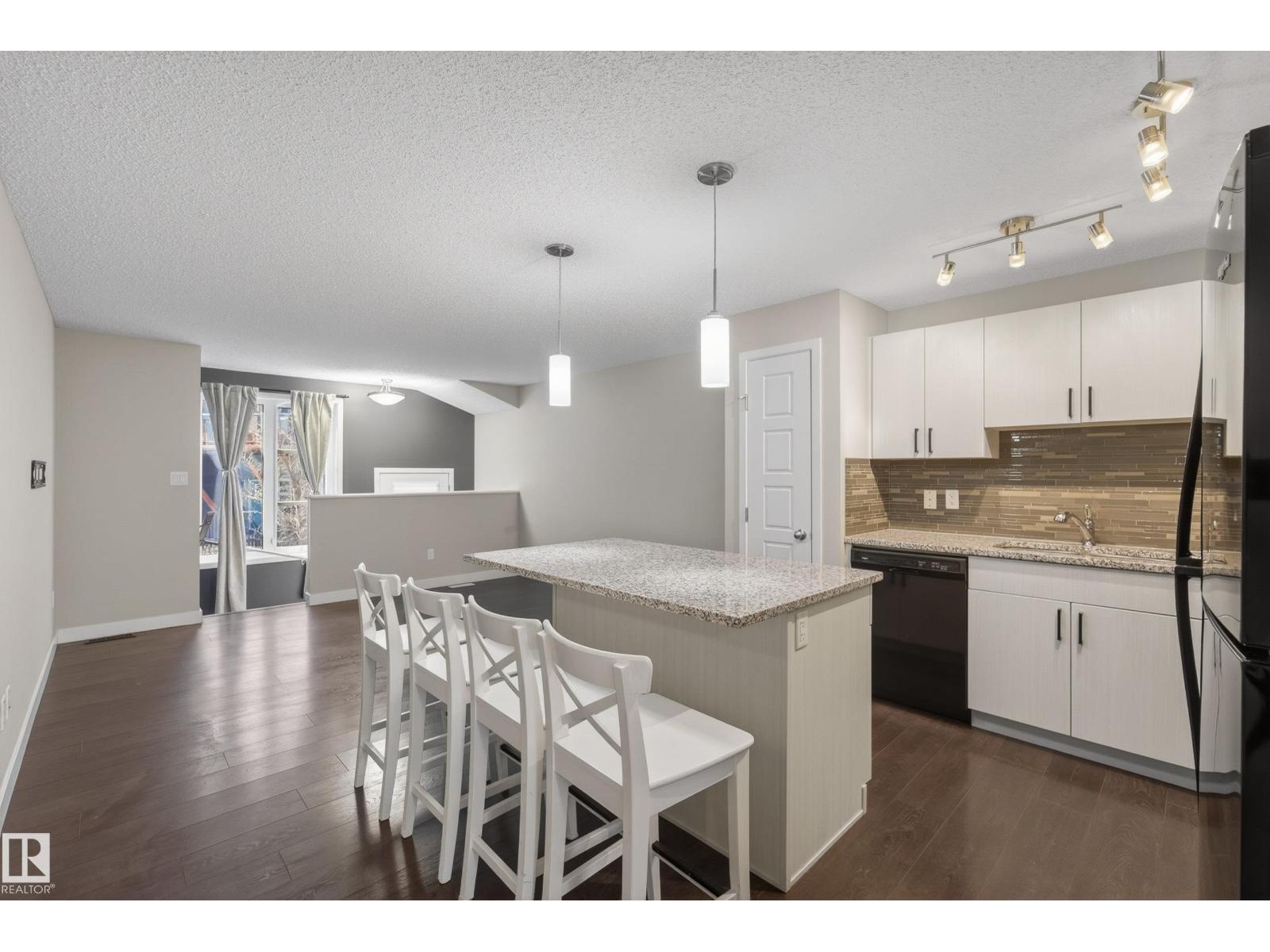 Beautifully maintained and move-in ready, this stylish home offers comfort, function, and an unbeatable location. The open-concept layout is filled with natural light and features hardwood floors, modern finishes, and a warm neutral palette throughout. The kitchen is beautifully appointed with quartz countertops, sleek black appliances, and ample cabinet space. The spacious primary bedroom offers great comfort, while the second bedroom is ideal for guests, a roommate, kids, or a home office. You will also find convenient main floor laundry and a full 4-piece bathroom. Outside, enjoy a fenced front yard that is perfect for BBQs and relaxing, plus the added bonus of a large single attached garage. Visitor parking is just steps away. Located directly across from shopping, groceries, restaurants, and banks, and only minutes from walking trails, a dog park, golf, and Anthony Henday access. Some photos are virtually staged. (id:51989)
