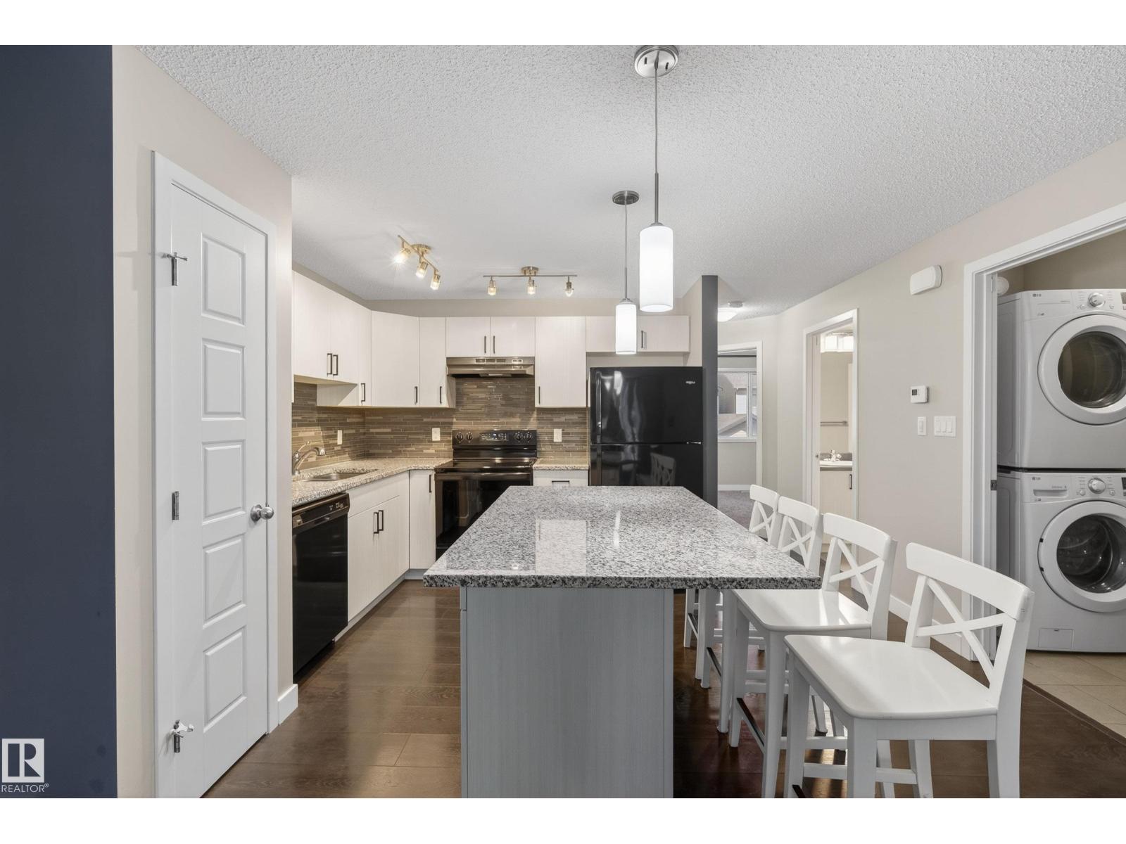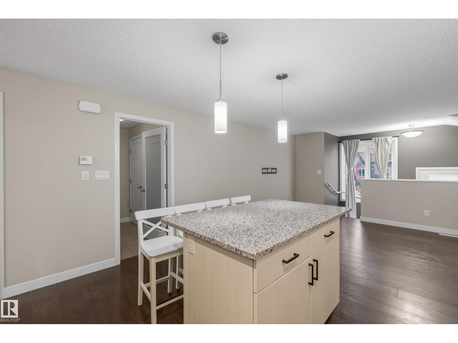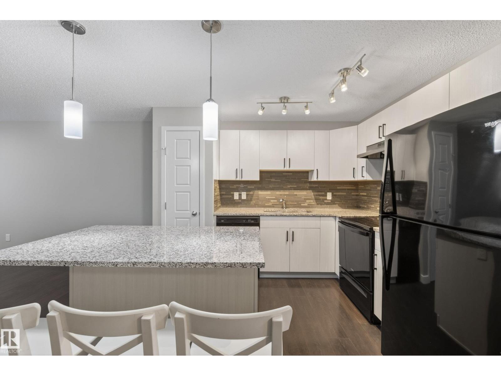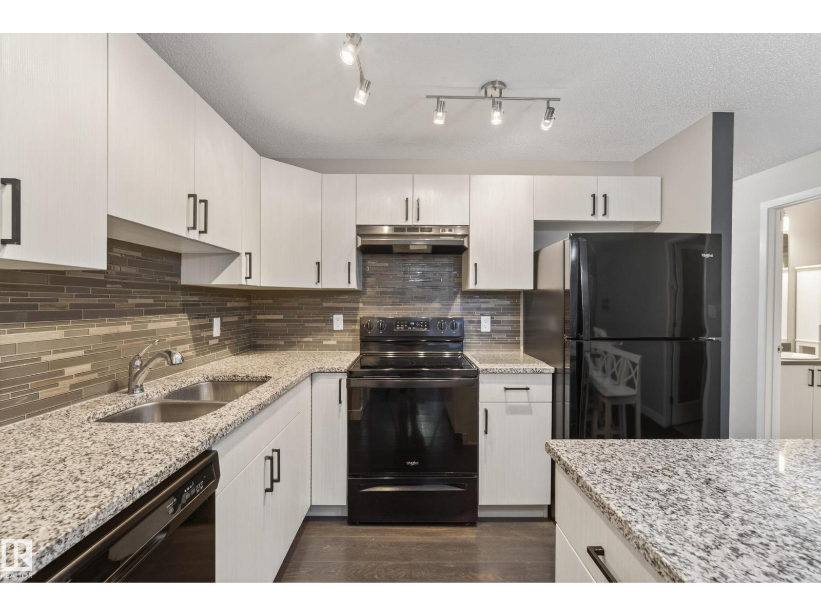 Beautifully maintained and move-in ready, this stylish home offers comfort, function, and an unbeatable location. The open-concept layout is filled with natural light and features hardwood floors, modern finishes, and a warm neutral palette throughout. The kitchen is beautifully appointed with quartz countertops, sleek black appliances, and ample cabinet space. The spacious primary bedroom offers great comfort, while the second bedroom is ideal for guests, a roommate, kids, or a home office. You will also find convenient main floor laundry and a full 4-piece bathroom. Outside, enjoy a fenced front yard that is perfect for BBQs and relaxing, plus the added bonus of a large single attached garage. Visitor parking is just steps away. Located directly across from shopping, groceries, restaurants, and banks, and only minutes from walking trails, a dog park, golf, and Anthony Henday access. Some photos are virtually staged. (id:51989)