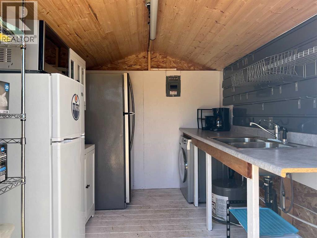 Welcome to 45 Buffalo Lane at the desirable Buffalo Sands, a family orientated and fun, four season lake side community on beautiful Buffalo Lake. This lake lot is fully set up for you to immediately start enjoying featuring low maintenance landscaping, a private gazebo, outdoor kitchen and is walking distance to the lake, playground, basketball hoops, community pond and boat dock. The outdoor fully enclosed 3-season kitchen includes a countertop prep space and sink, x2 fridge/freezer units, a space saving all-in-one washer/dryer unit, efficient sized hot water tank, microwave, and upright cabinet along with additional shelving and storage. The custom-built gazebo features an L-shaped sectional and propane firepit with louvered shutters and turf creating a relaxing oasis for the whole family to enjoy! Dedicated decking off the gazebo and outdoor kitchen create the perfect balance of indoor/outdoor living and provides a generous space to park your holiday trailer. There is another storage shed tucked in the back corner with an area to accommodate a fire pit (currently stored in the shed), set up bean bags and/or tent depending on your needs. Almost fully fenced, the property includes an oversized gate at one end that allows access to the walking path that flanks the east side of the property, with the convenience of NO neighbors to the back. There are 2 RV hook-ups and is serviced with municipal water and sewer (currently set up to accommodate a holiday trailer) and offers efficient drainage from the gravel that was added through-out when this lot was developed. Also unique to this lot is the extra wide approach/culvert system and generous parking space. Have a boat or considering one? No problem, there is a 4000lbs boat slip included with this property! Located 5 minutes from the Rochon Sands Provincial Park and Ol’ McDonalds Resort and Campground, only a 20-minute drive to Stettler and just 2hrs from either Calgary and Edmonton! All that is left for you to do is un pack and start enjoying the LAKE LIFE! (id:51989)