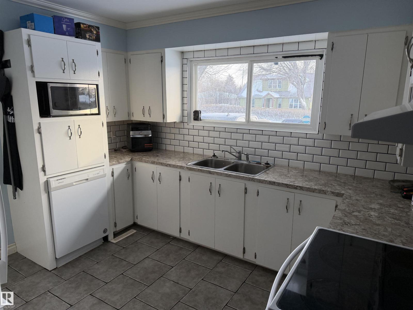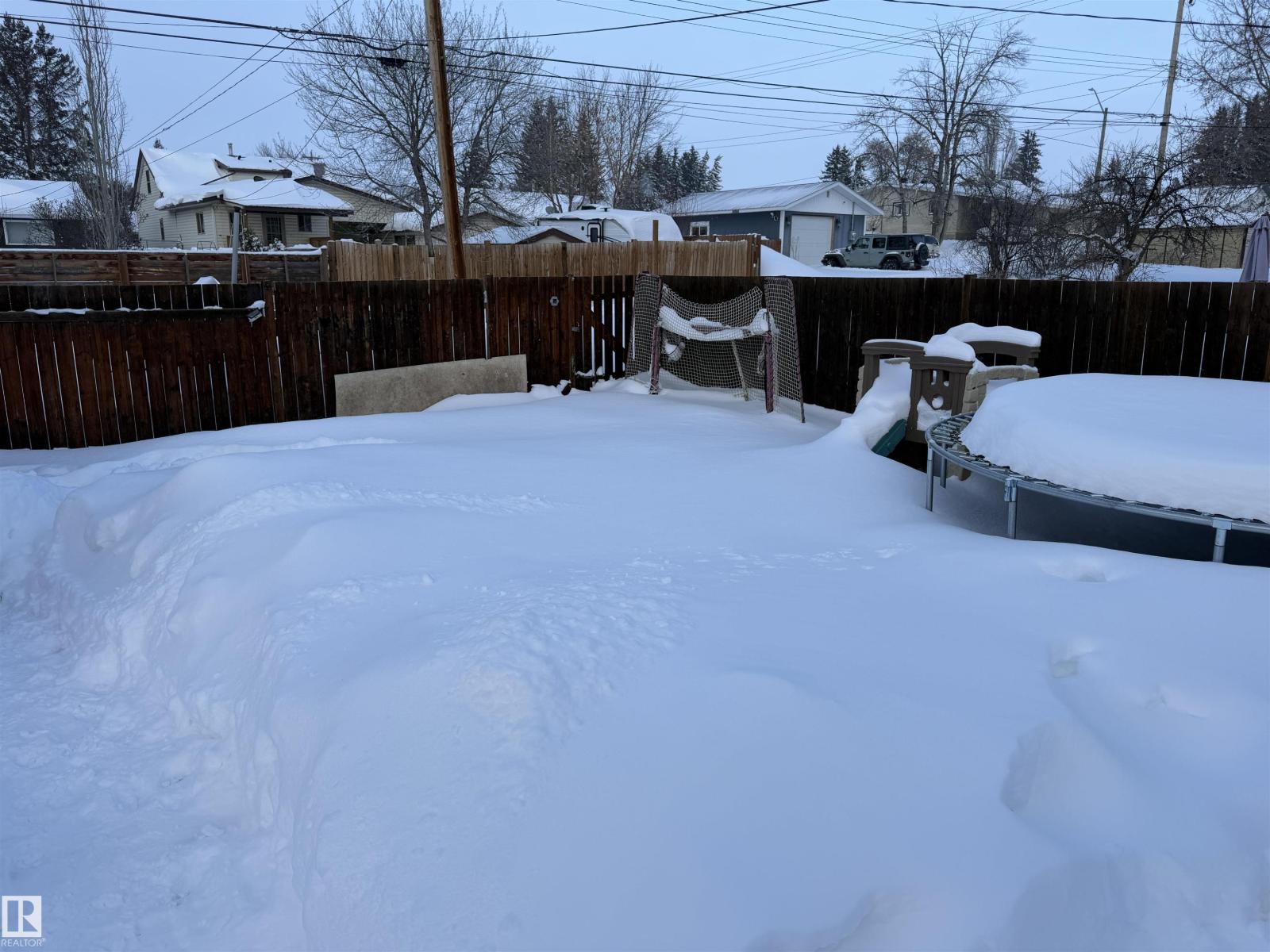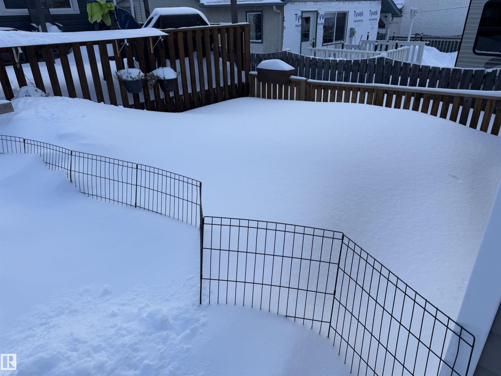 Attractive home & property located on the East side of Barrhead. Home features 3 bedrooms & 2 full baths, an openly connected kitchen, dining & large living room area w/ large bright light gathering windows. Very spacious master along w/ second main floor bedroom. Walk through flex/ office area features back door to large rear deck, fenced yard & enclosed heated hot tub area. Basement features a large family room, large 3rd bedroom, dedicated corner laundry or 4th bedroom option, storage & more. Many upgrades include modern exterior siding & added insulation, high efficiency furnace, newer hot water tank, good shingles, vinyl windows, 100 amp electrical panel, back flow valve plus more. Oversized single car garage plus off street parking front & back w/ option for deeper yard space by moving outwards. An excellent option w/ extra potential to implement your own personal styles throughout the future. Affordably priced and available for quick possession. (id:51989)