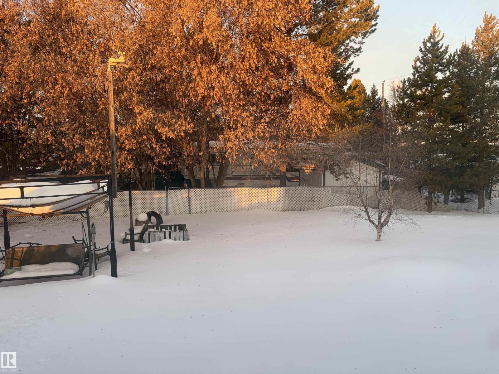 A rare find in the town of Smoky Lake. The home sits on 3 lots! Over 16000 sq ft of outdoor space. Featuring 2 bedrooms and 2 baths its a great place to start. The kitchen is bright with updated cabinets, open to the living room for an open concept feeling.The wood burning stove adds a relaxing feeling to the home. The large primary bedroom has lots of storage, and has access to the 4 pc bathroom. Must see to appreciate (id:51989)
