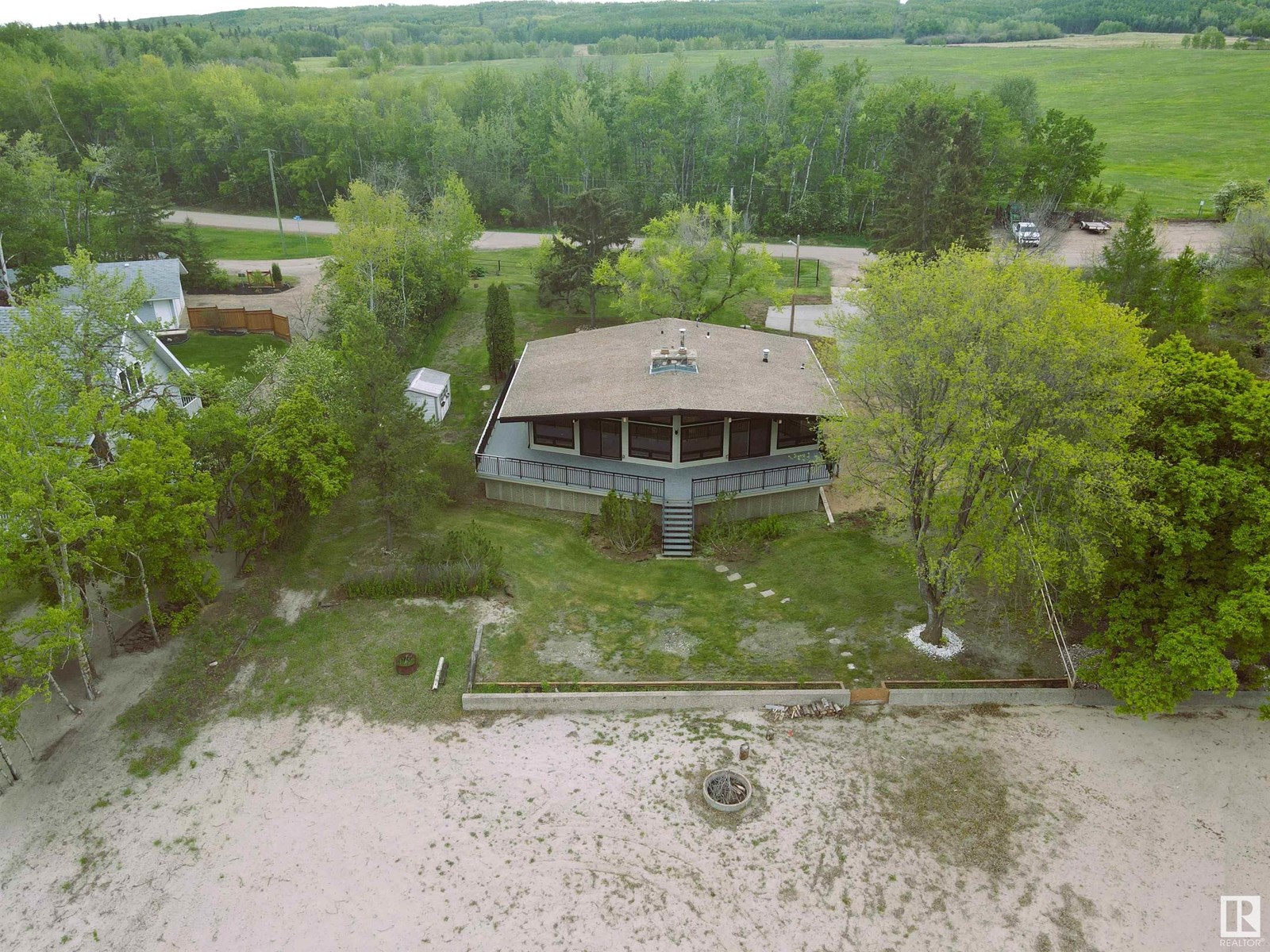 Custom built 1728 sq. ft. bungalow sitting on just over 1/2 an acre Lakefront Muriel Lake. This year round home has 3 bedrooms 2 bathrooms an open concept A frame style, which enhances all views of the lake. Property upgrades include 2 new bathrooms, new triple pane windows, new siding, new deck, fresh paint, new electrical and more.....Relax and enjoy sights and sound of the lake on the huge wrap around deck or enjoy the sandy beach. (id:51989)