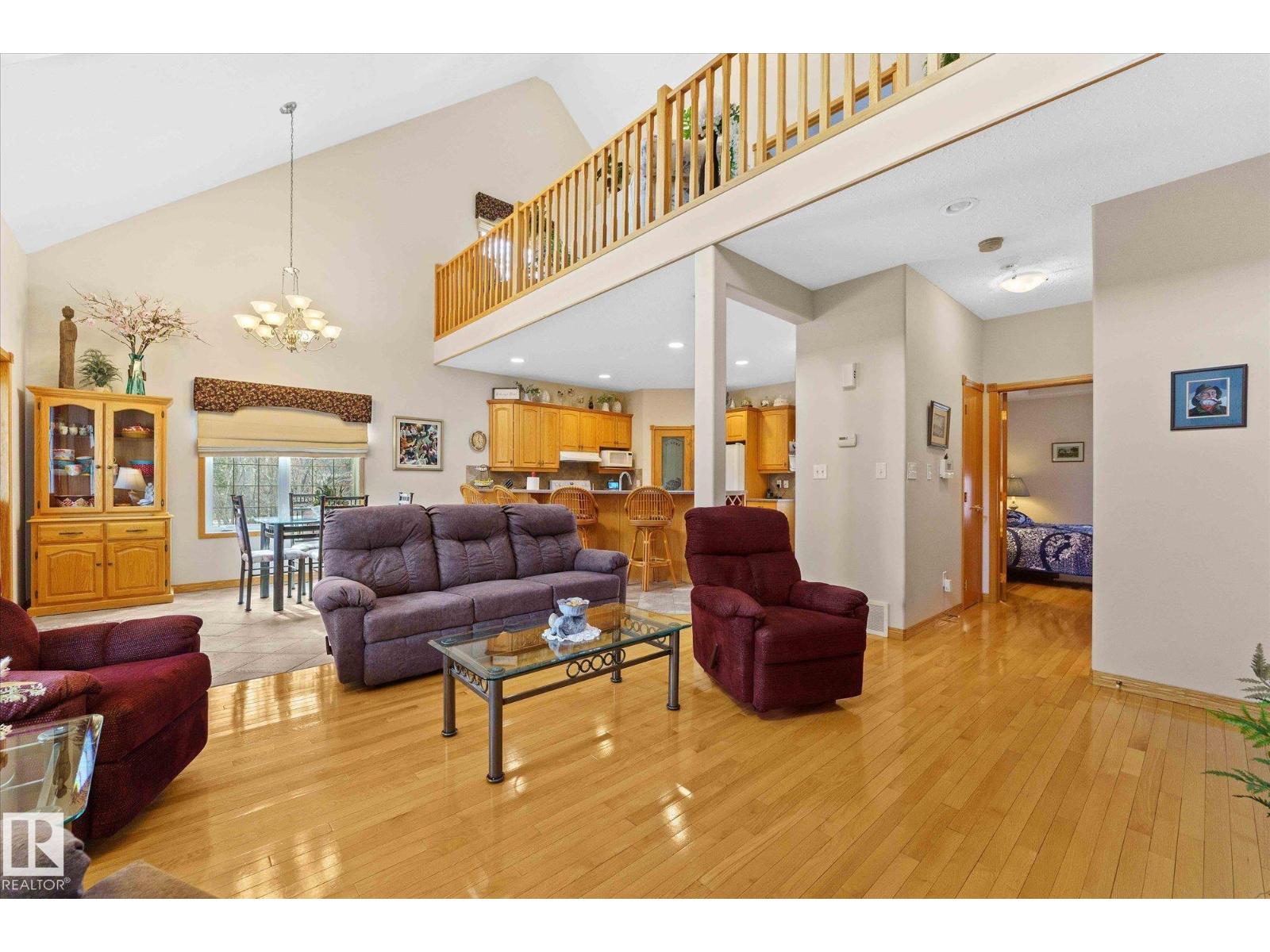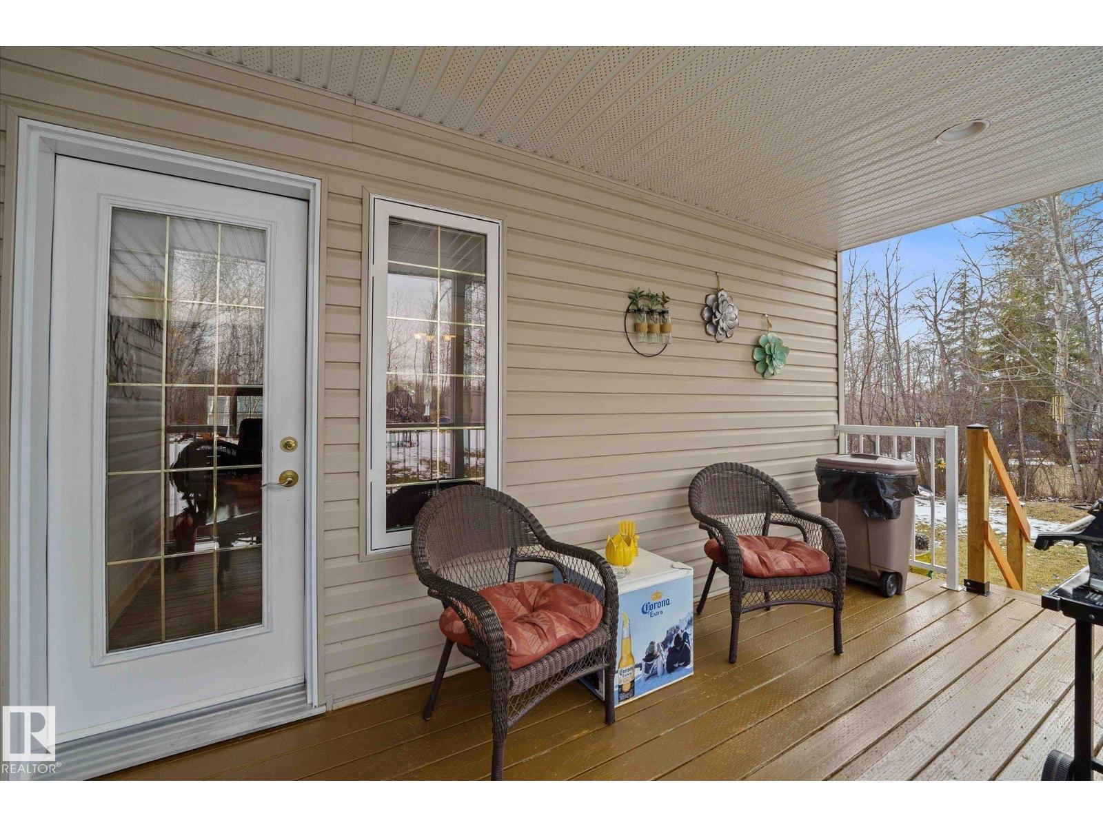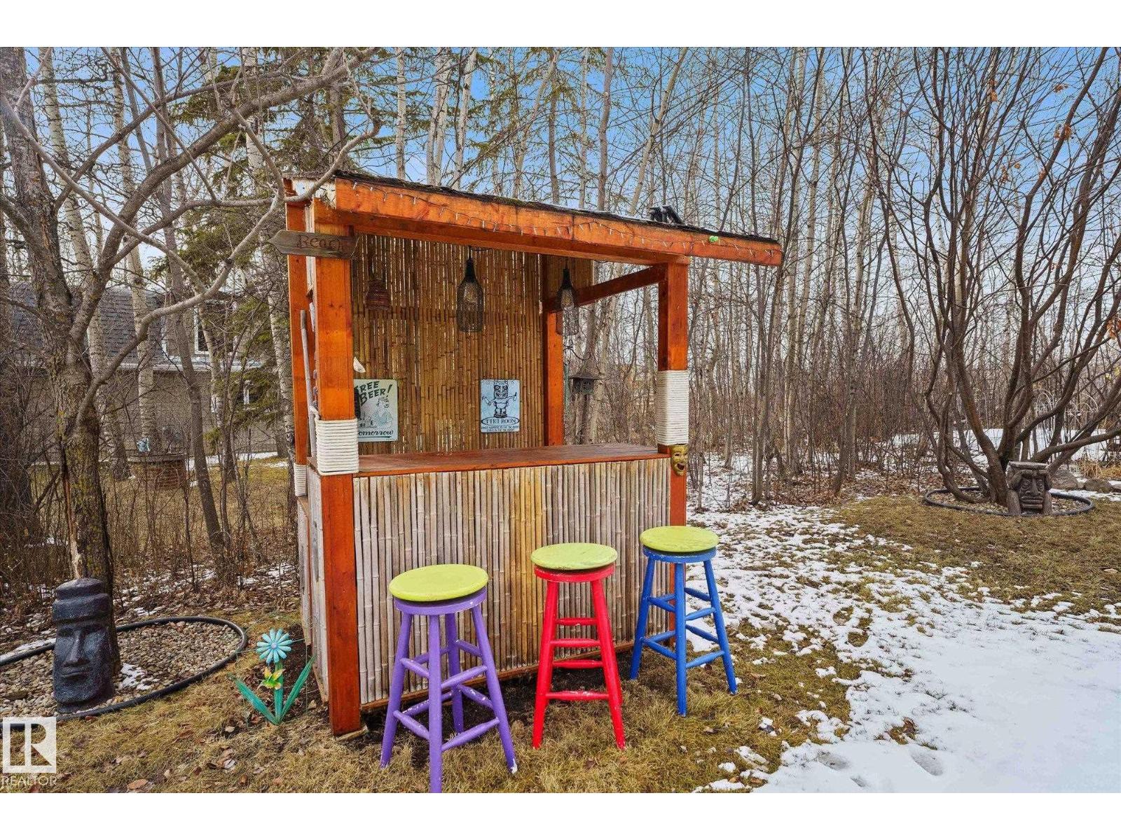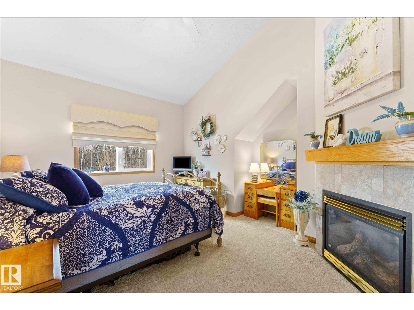 Acreage living just steps from the lake, less than an hour from the city! Welcome to Wizard Lake, a true hidden gem. This well maintained home makes a stunning first impression with its inviting covered front porch and incredible landscaping. Step inside to soaring ceilings and a striking river rock, wood-burning fireplace. The open concept living, kitchen, and dining area is perfect for entertaining. The main floor also features a bedroom and a 3-piece bathroom, ideal for flexible living. Out back, enjoy a second covered deck with a gas line for BBQs, plus your very own Tiki Bar perfect for hosting summer evenings. Upstairs, you’ll find a charming loft, a full bathroom, and an impressive primary retreat complete with a massive walk-in closet and a cozy fireplace for those winter nights. The basement offers a spacious rec room, an additional bedroom or den, rough-in for a future bathroom, and plenty of storage. Enjoy your private yard with raised garden beds, fruit trees and more after a day on the lake! (id:51989)