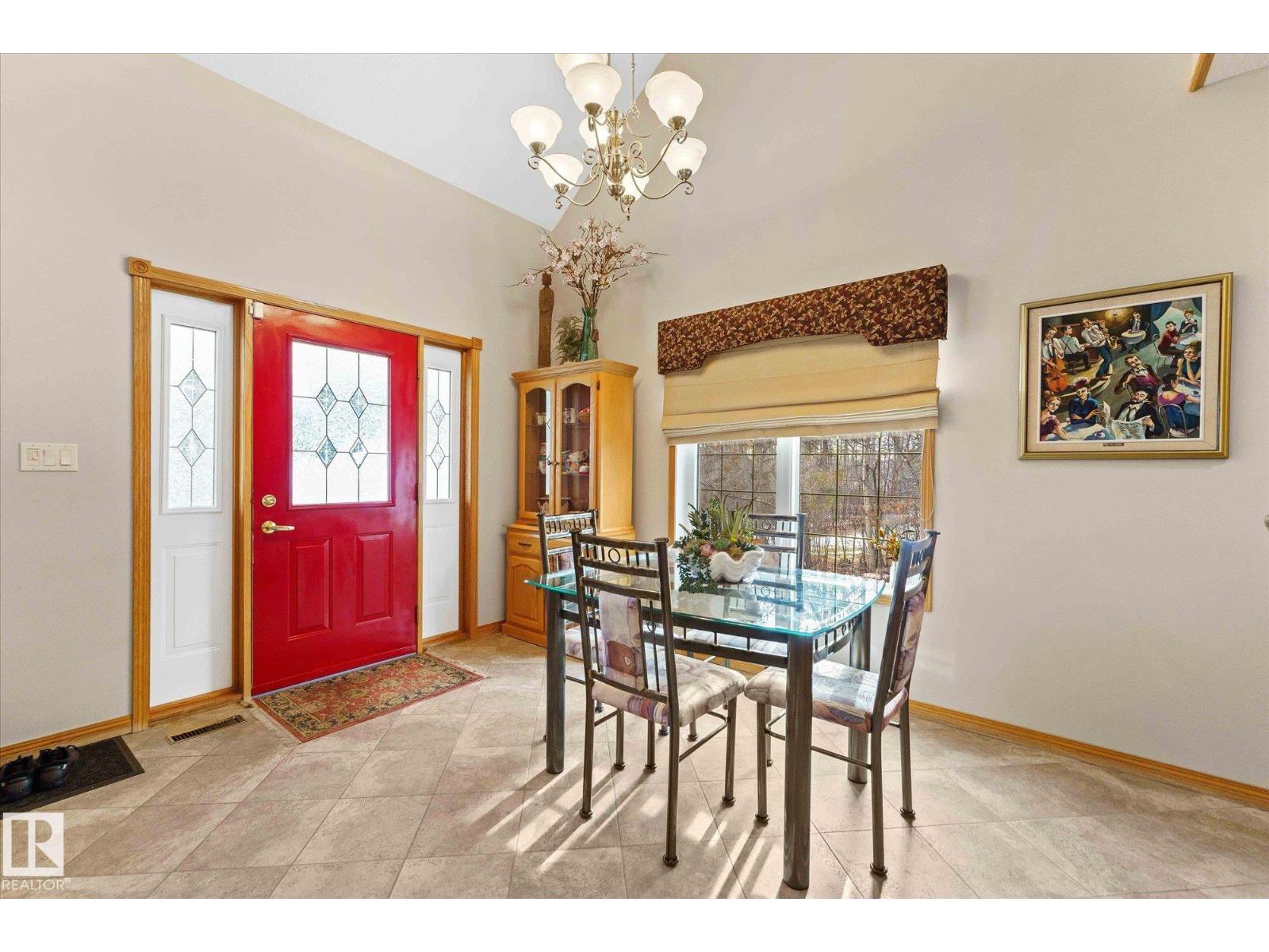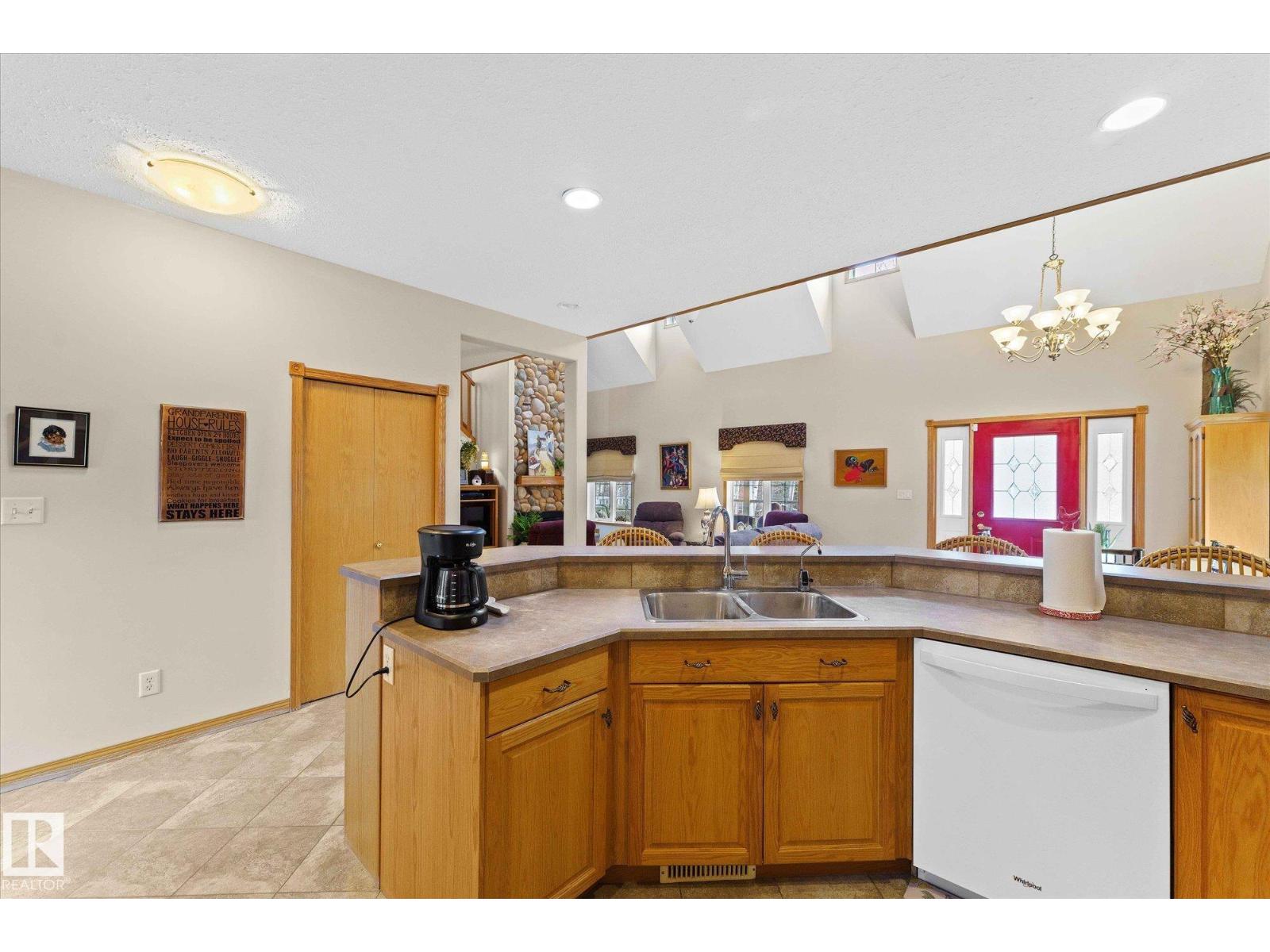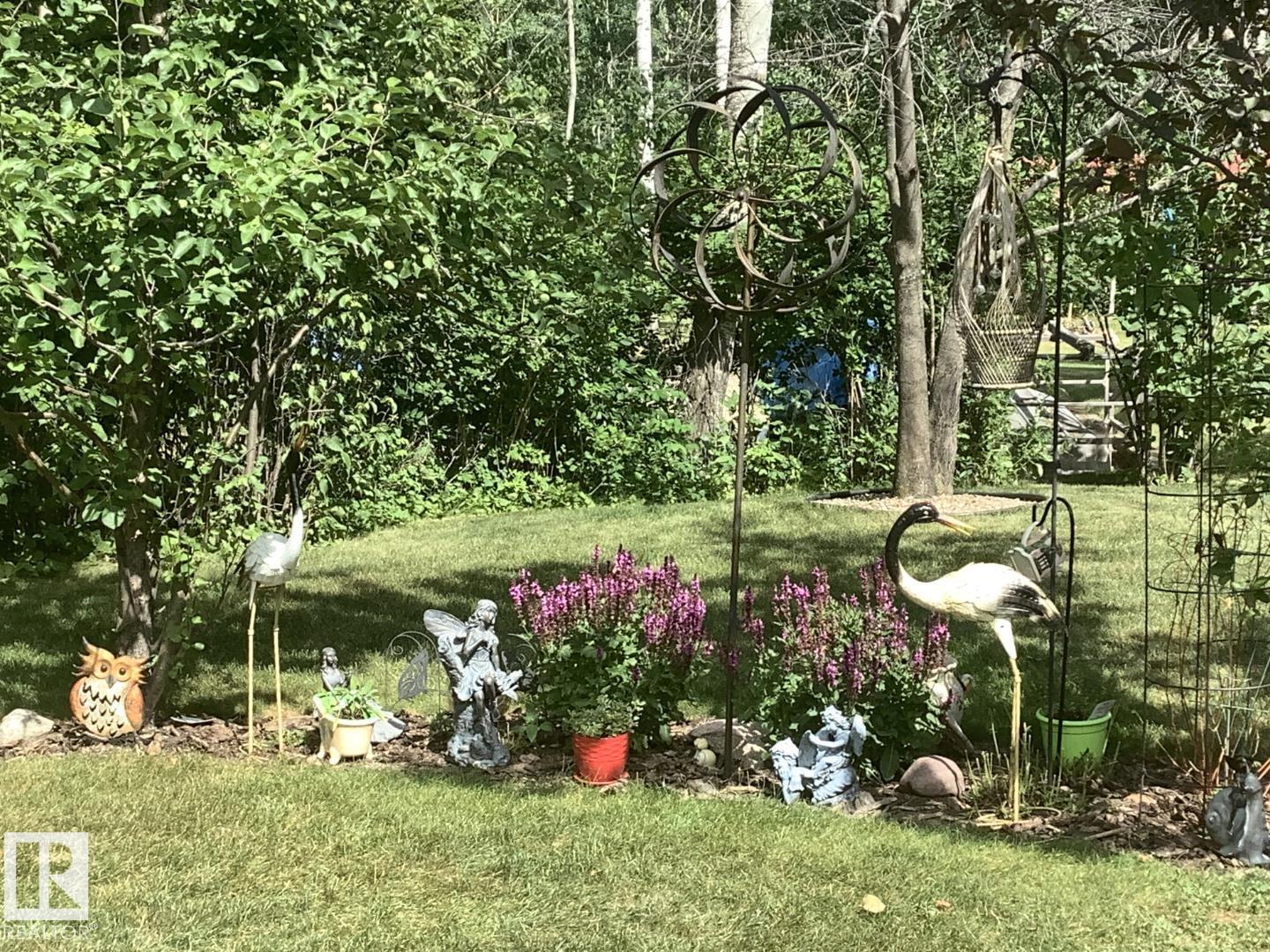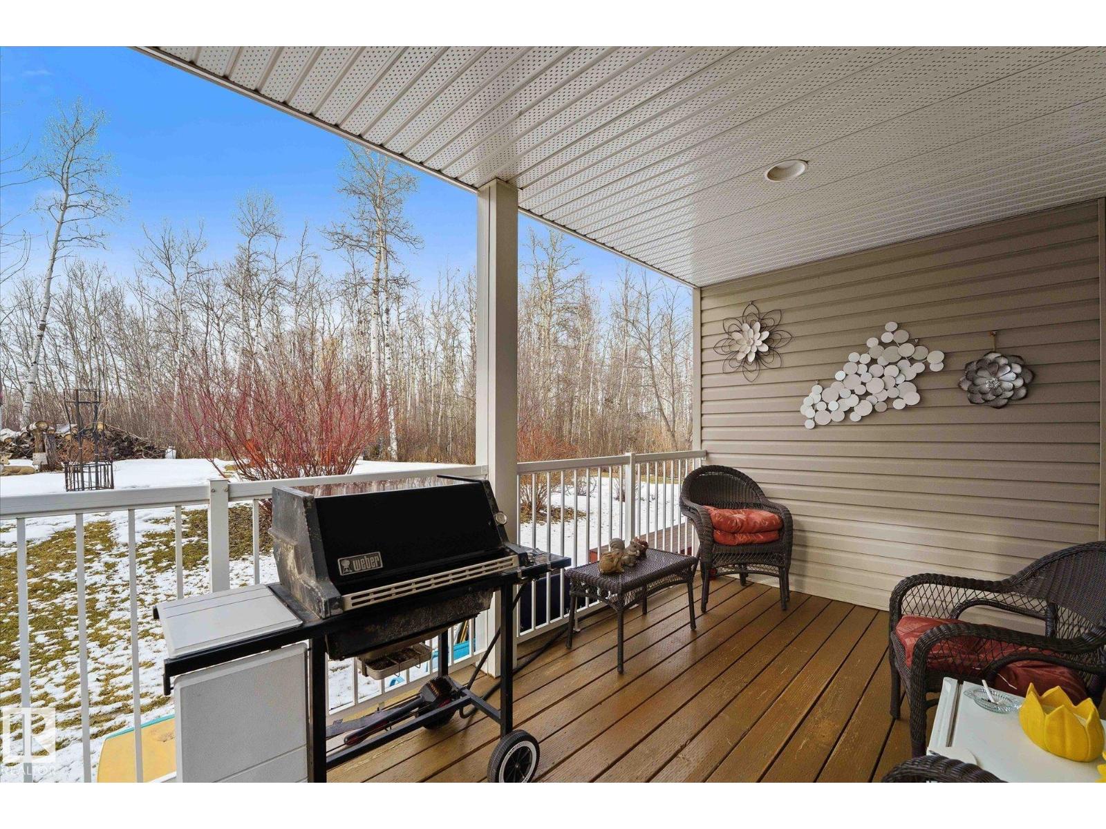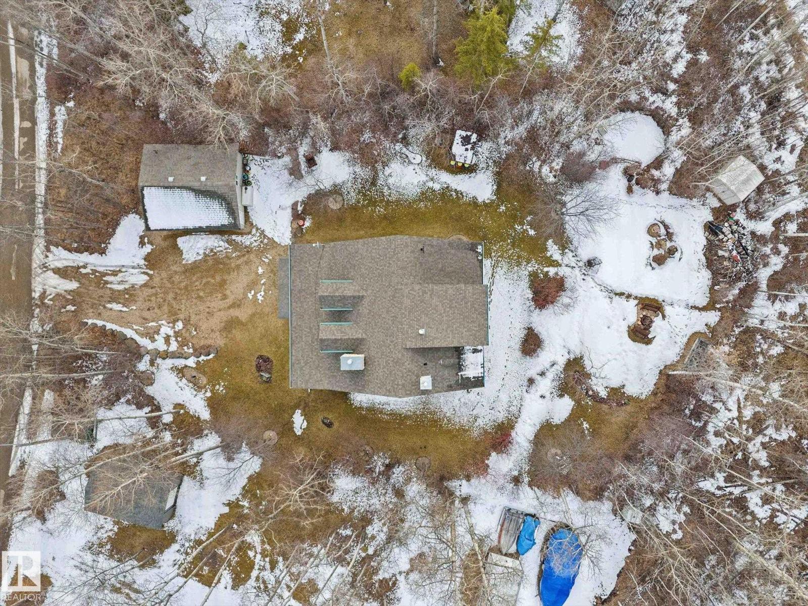 Acreage living just steps from the lake, less than an hour from the city! Welcome to Wizard Lake, a true hidden gem. This well maintained home makes a stunning first impression with its inviting covered front porch and incredible landscaping. Step inside to soaring ceilings and a striking river rock, wood-burning fireplace. The open concept living, kitchen, and dining area is perfect for entertaining. The main floor also features a bedroom and a 3-piece bathroom, ideal for flexible living. Out back, enjoy a second covered deck with a gas line for BBQs, plus your very own Tiki Bar perfect for hosting summer evenings. Upstairs, you’ll find a charming loft, a full bathroom, and an impressive primary retreat complete with a massive walk-in closet and a cozy fireplace for those winter nights. The basement offers a spacious rec room, an additional bedroom or den, rough-in for a future bathroom, and plenty of storage. Enjoy your private yard with raised garden beds, fruit trees and more after a day on the lake! (id:51989)
