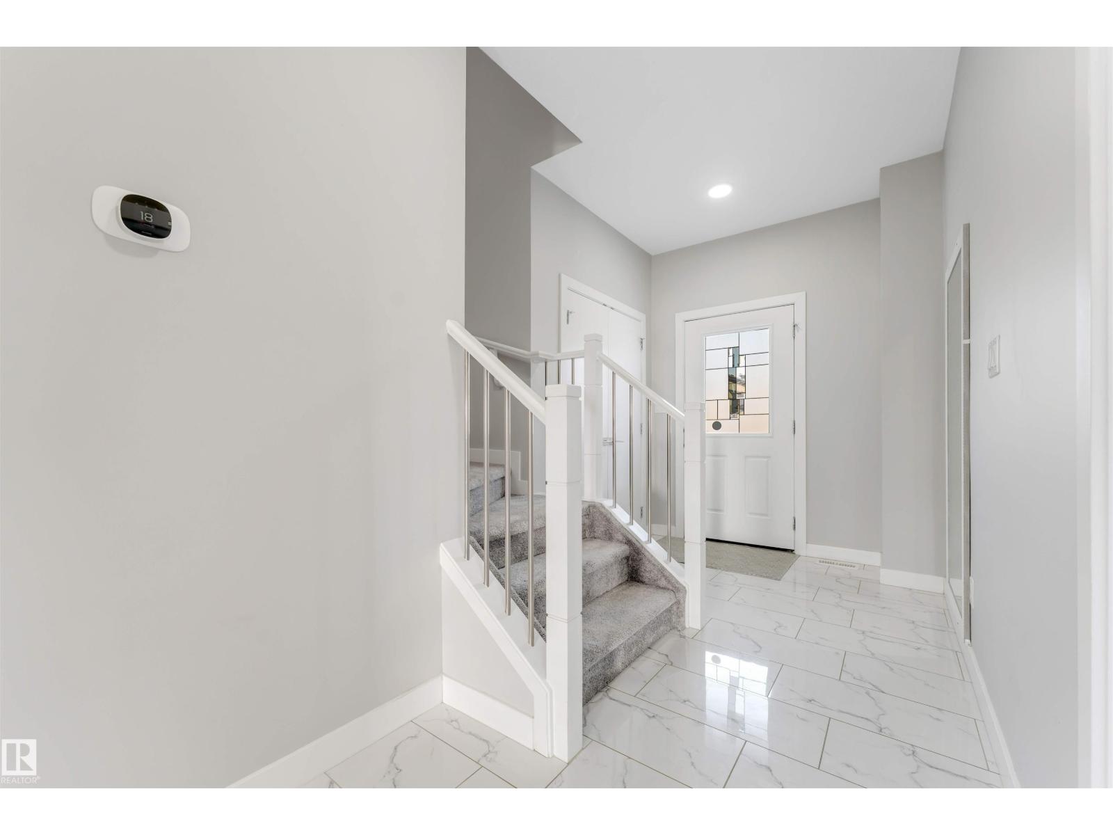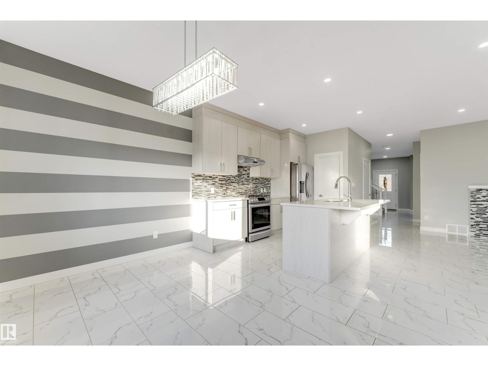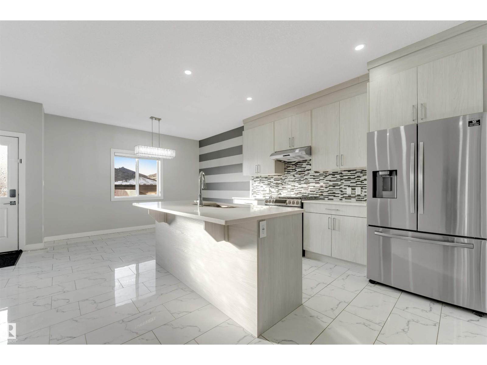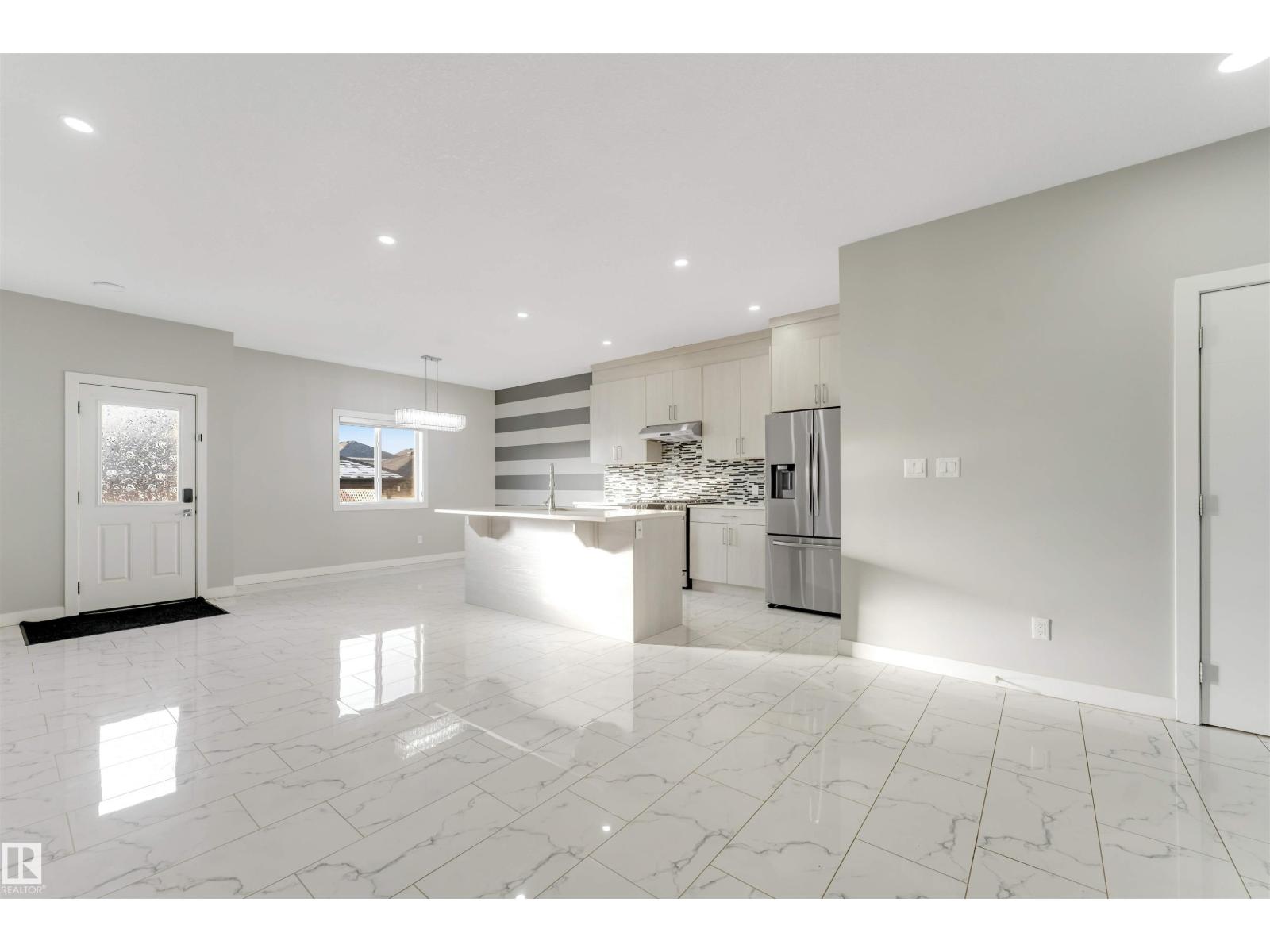 Welcome to this beautiful 1700+ sq. ft. home in the growing community of Beaumont. The MAIN FLOOR FEATURES A BED ROOM AND A FULL 4-PIECE BATHROOM, perfect for guests or multi-generational living. The open-concept kitchen and living area offer plenty of space for family gatherings and entertaining. The kitchen is equipped with stainless steel appliances and a gas stove, making it ideal for everyday cooking and hosting. Step outside to enjoy the deck, perfect for summer evenings, and an oversized double garage with 220-VOLT POWER ideal for EV charging or other workshop needs. The home also includes CENTRAL AIR CONDITIONING and a SECURITY CAMERA SYSTEM for added comfort and peace of mind. The SEPARATE ENTRANCE TO THE BASEMENT, along with two basement windows, offers great potential for future development. Upstairs you will find a spacious BONUS ROOM, primary bedroom with a 4-piece ensuite, large closet and two additional good-sized bedrooms, making this the perfect home for a your family. (id:51989)