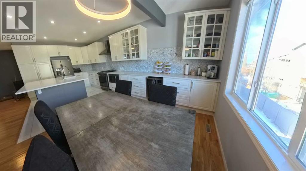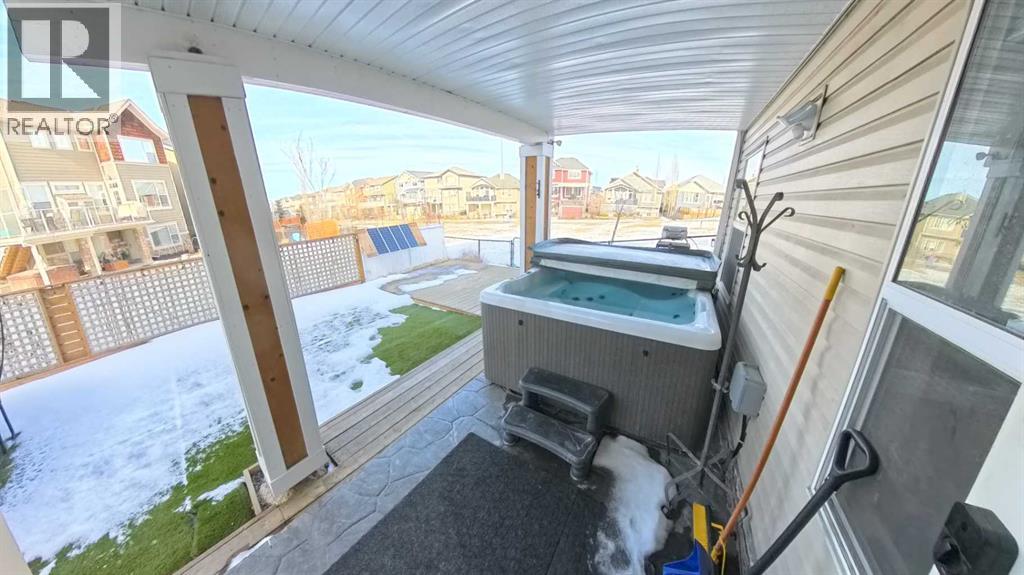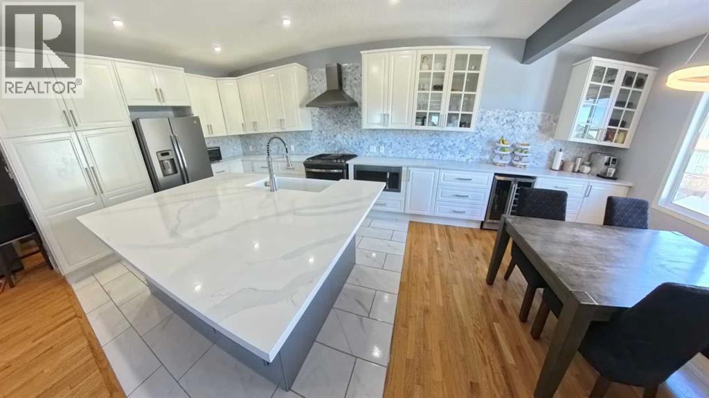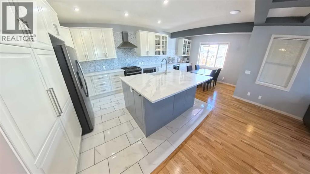 Spacious, move-in-ready family home offering 3,300+ sq ft of fully developed living space, perfectly positioned next to a green strip with only one neighbour, a rare combination of privacy, light, and open space. With 5 bedrooms plus a den, this home is built for family living, giving everyone room to spread out while keeping the layout practical and connected. At the center of it all is a true family-sized kitchen for people who love to cook and gather. Thoughtfully modernized and designed for high-traffic days, it features a huge breakfast bar and an extended countertop that easily handles big meals, baking projects, and hosting. Enjoy the convenience of a built-in wine fridge, plus a dedicated morning coffee area that keeps the daily routine organized and effortless. With generous prep space and an open, welcoming feel, this kitchen is made for everything from weeknight dinners to holiday entertaining. Comfort is covered year-round with air conditioning, and day-to-day convenience shines with hot water on demand. Storage is also a standout: the 2-car garage includes plenty of customized storage, and the utility room offers additional built-in organization—perfect for keeping seasonal items, tools, sports gear, and household supplies neatly out of sight. Downstairs, the fully developed walkout basement adds bright, flexible living space with direct backyard access—ideal for a media room, play zone, teen hangout, guest area, or home gym. Step outside to enjoy your private outdoor setup, featuring a covered deck that extends your living and or storage space. Unwind year-round in the hot tub, and for pet owners, appreciate the practicality of a dedicated dog run. The zero-scaped yard keeps maintenance low, so you spend more time enjoying the home and less time on yard work. Location adds even more value: school buses for all grades stop just steps from the house, making mornings and after-school routines simple. With exceptional square footage, smart upgrades, priv acy beside the green strip, and family-first features throughout, this home delivers the space, comfort, and lifestyle you’ve been looking for. (id:51989)