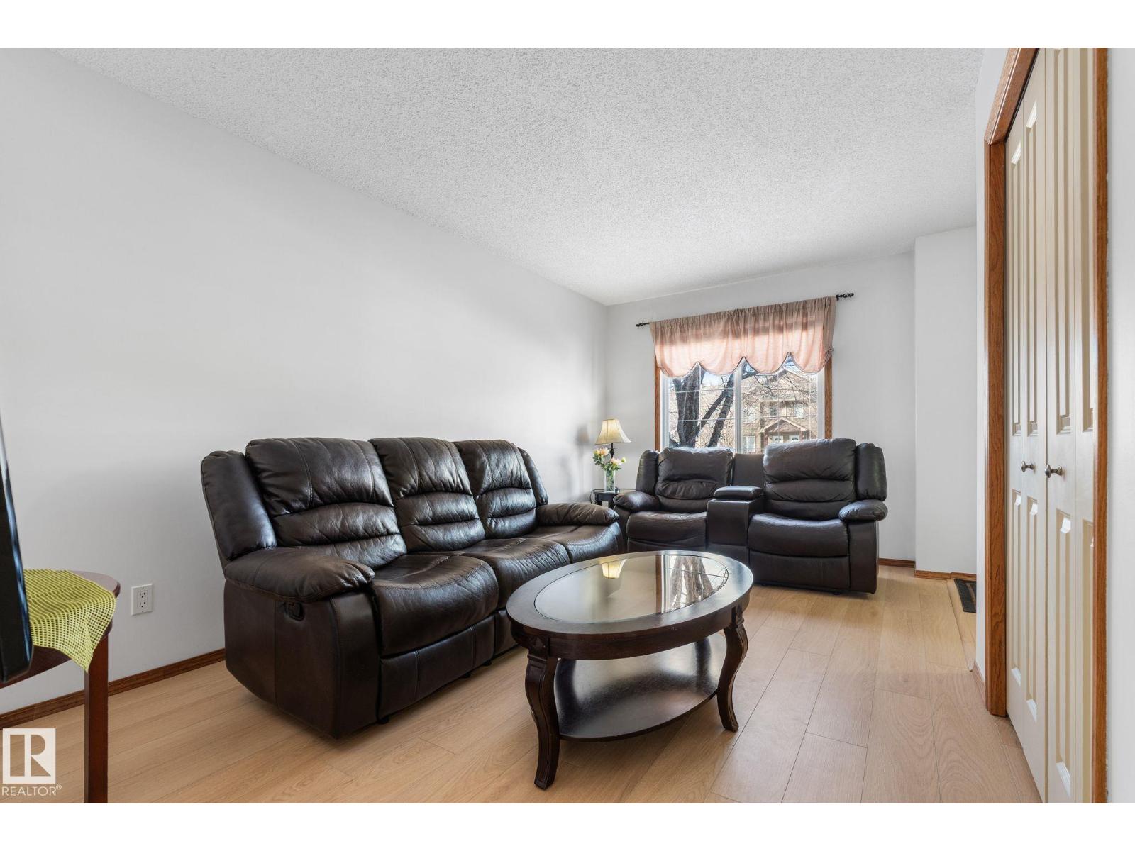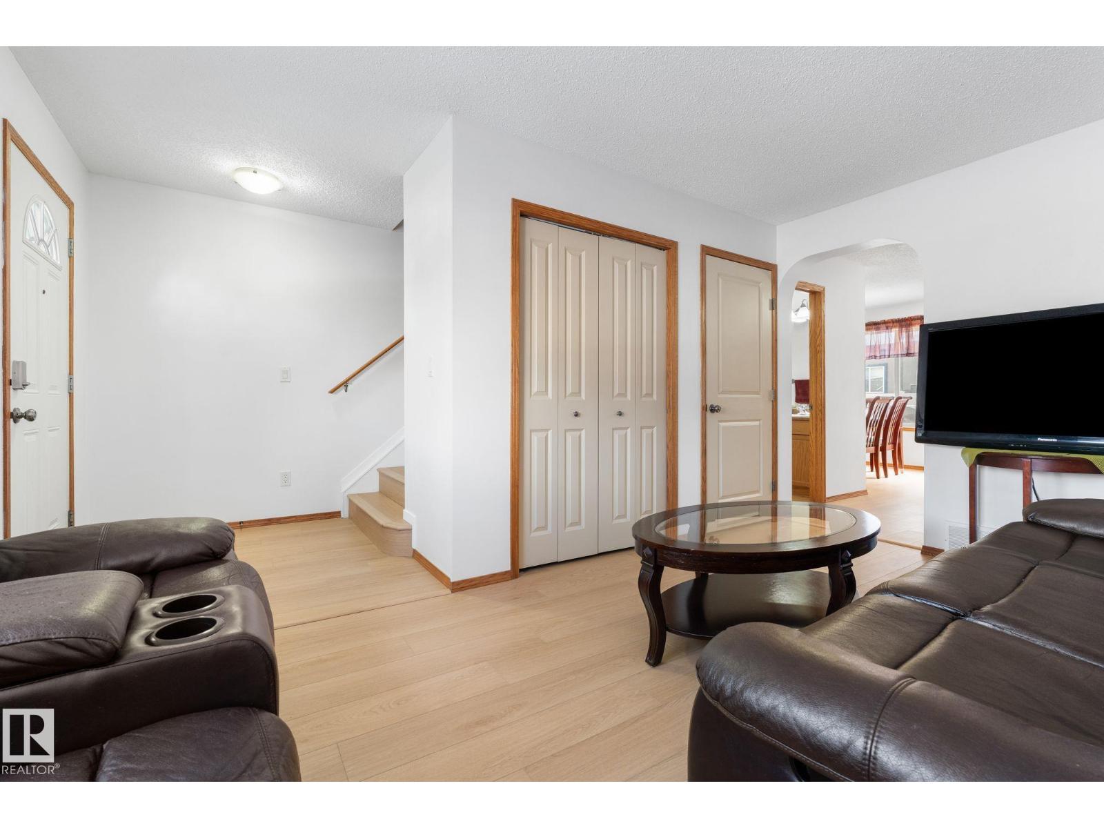 JUST COMPLETED: ALL NEW FLOORING ON MAIN AND UPPER FLOORS AND NEW PAINT! This home is in excellent condition and move in ready! Upstairs, you will find 3 bedrooms and full bathroom with the primary bedroom having a walk in closet. The main floor has a lovely island kitchen with pantry and eating area with a door to the south facing deck plus a nice sized living room and half bathroom. The basement is fully finished with a large family room and 3 pc bathroom plus large laundry and storage area. Washer and dryer are a year old and hot water tank is just a few years old! There are two powered parking stalls directly in front of the unit and the complex has plenty of visitor parking. Located close to schools, trails, amenities and public transportation plus an easy walk to the Tri-Leisure Centre. (id:51989)