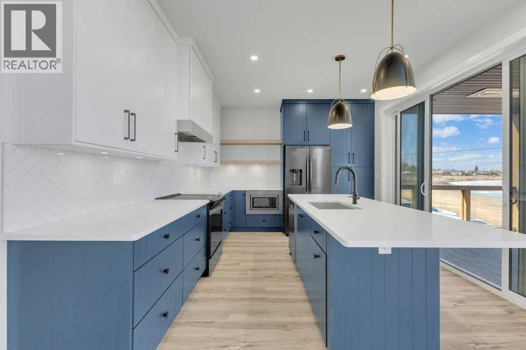 Escape to lakefront luxury with this extraordinary beachfront home located in the highly sought-after community of Rochon Sands on the shores of Buffalo Lake—approximately 45 minutes from Red Deer. Perfectly positioned to capture breathtaking water views, this impressive two-storey residence offers the year-round lake living.The main floor welcomes you with generous open living spaces. The foyer has bench seating and a large closet plumbed for the washer & dryer. Just off the kitchen, enjoy a covered heated screen room, the living room has floor to vaulted ceiling windows overlooking the lake with an expansive deck that has gas BBQ hook ups. The primary bedroom with 3pc. ensuite, 4 pc. bathroom & a second bedroom.Upstairs, you’ll find three spacious bedrooms along with a cozy family room and the private upper deck, with elevated panoramic lake views.The crawl space has tones of storage and your water holding tanks.The home has direct beachfront access, incredible space, multiple outdoor living areas, and one of Central Alberta’s most desirable lake communities. (id:51989)