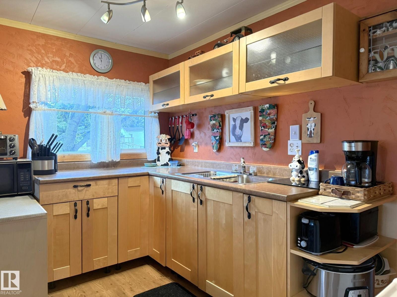 Nice and move in ready! Open bright living area with large East and South facing windows, kitchen has maple cabinets and gas stove. Spacous renovated bathroom/laundry. Large bedroom with plenty of storage. Home has had many upgrades over the years including insulation, drywall, windows, exterior doors, HWT, furnace, plumbing, cabinets, flooring and newer peaked roof and shingles. Peaceful living on a huge 70x110 fenced lot backing a field. (id:51989)