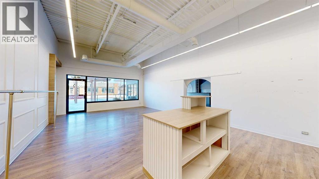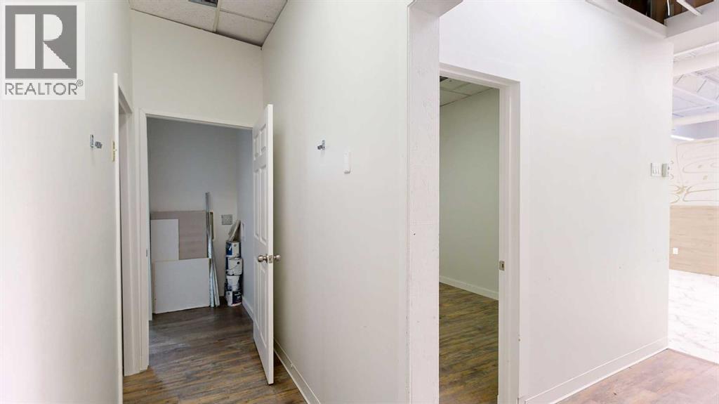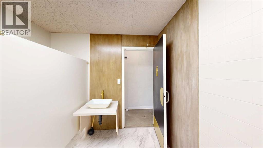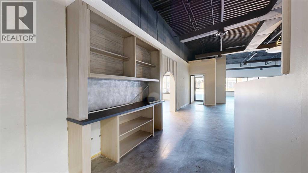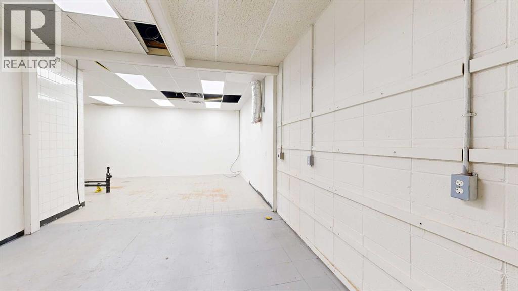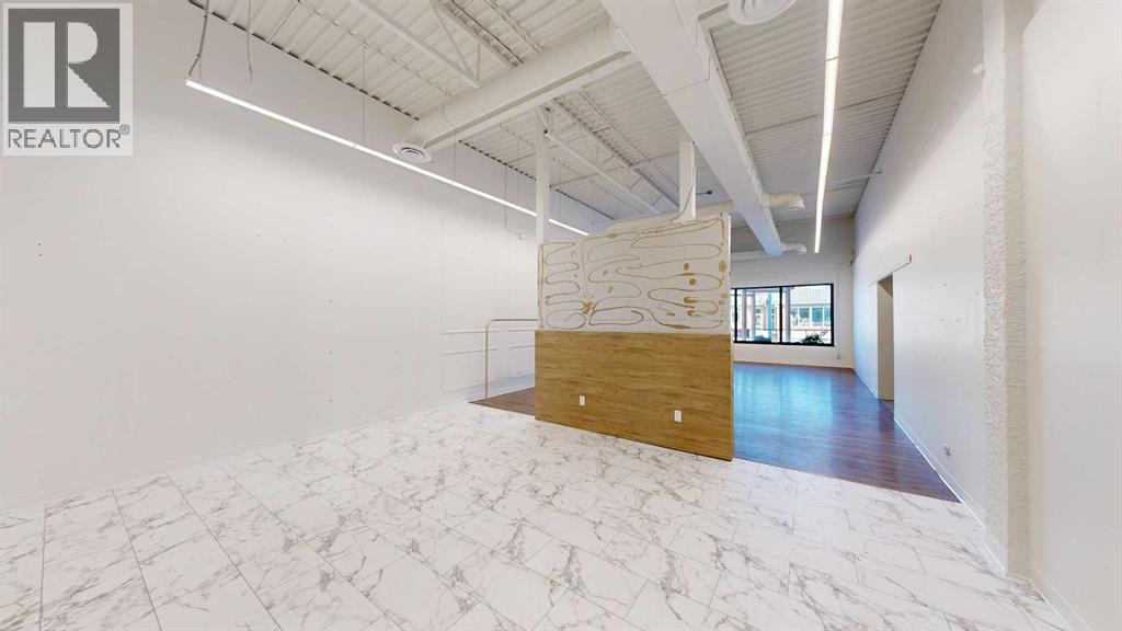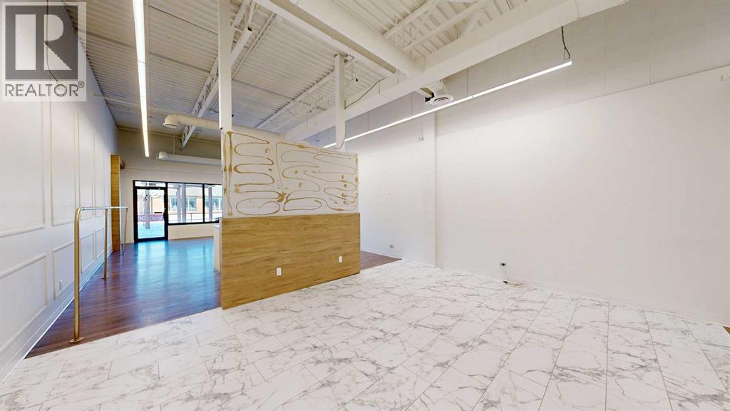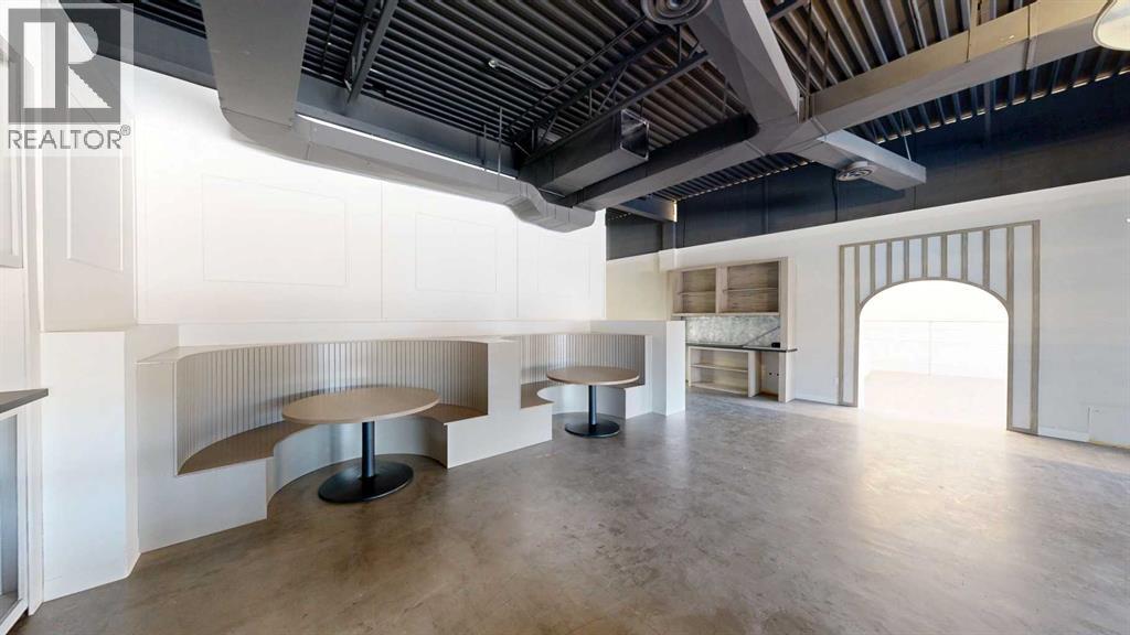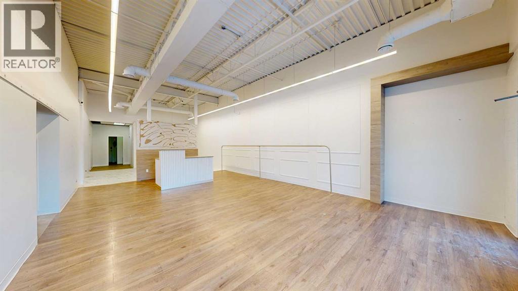 This expansive commercial property on main street in Stettler features a visually appealing and versatile layout suitable for a variety of business styles. The interior blends industrial and modern design, highlighted by exposed beams and ductwork in the high ceilings. Large windows fill the space with natural light for an open, airy feel. This property is partitioned into two main spaces, each with their own front and back doors. The south side has an open area with polished concrete floors, making the space well suited for retail or event use. There is an existing bar with stainless steel commercial sinks, plenty of counterspace, and display shelving. This space currently has two tables with built in seating. The kitchen area adjacent is ready for development. An arched doorway leads you to a bright space with warm wood-look flooring and windows along the front. This could potentially provide a comfortable setting for retail, offices, or meeting areas. Beyond this is another space with marble-look flooring for even more flexibility. There is a large office or storage room as well as a comfortable washroom just around the corner. The hall, which divides the two main spaces, has storage room with shelving and two modern washrooms. With its blend of open concept areas and private rooms, this property can easily accommodate creative studios, professional offices, retail operations, or multi-use commercial ventures. The landlord is open to demising the space with an acceptable lease. (id:51989)