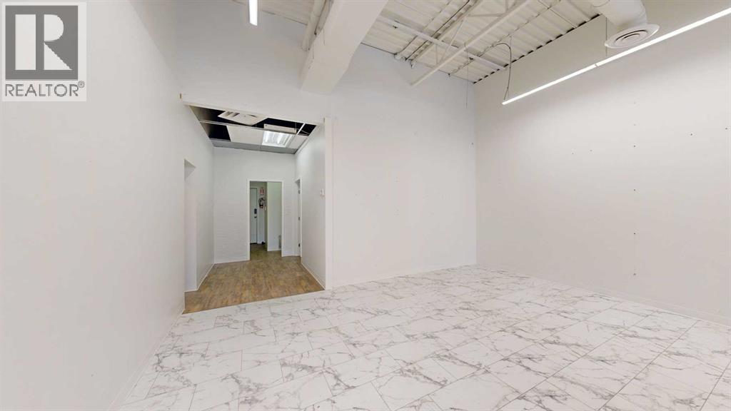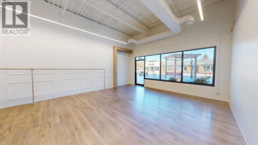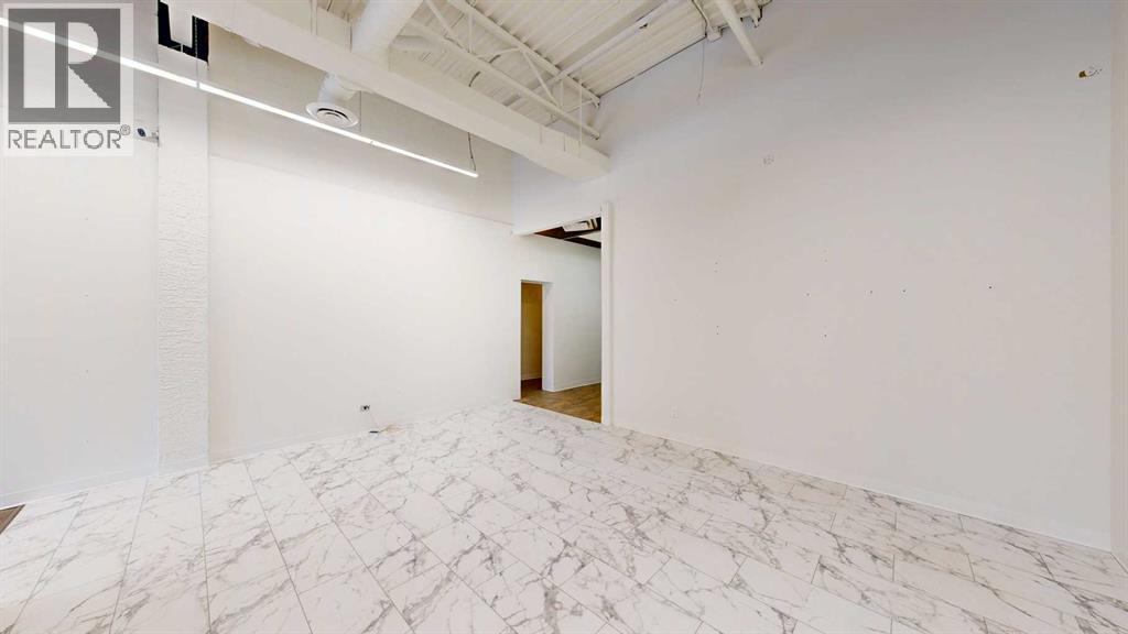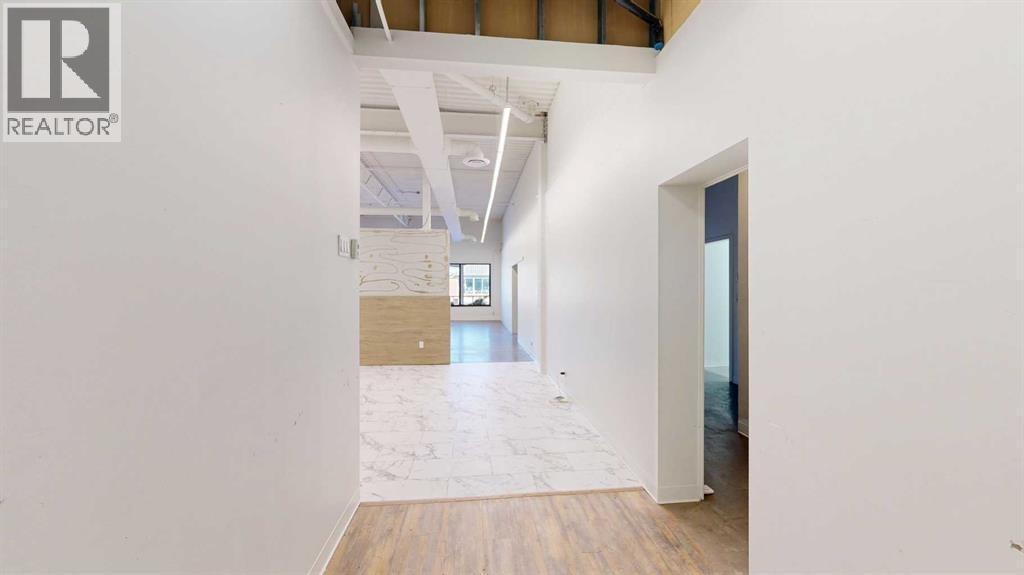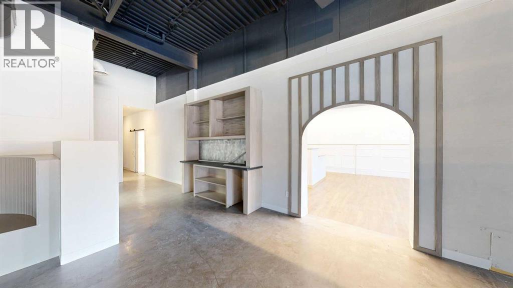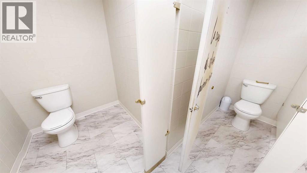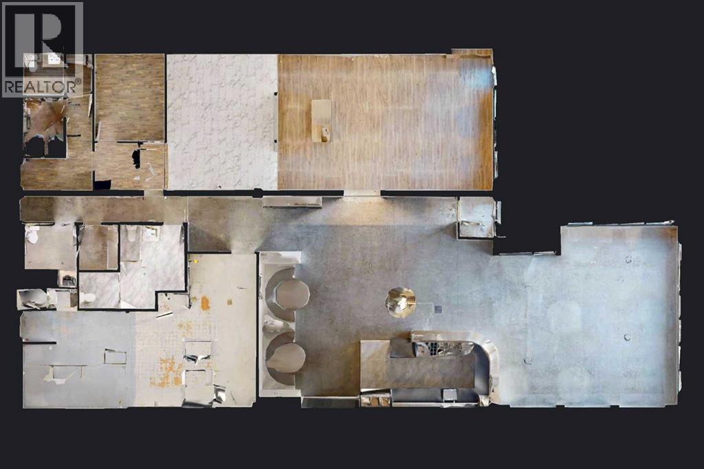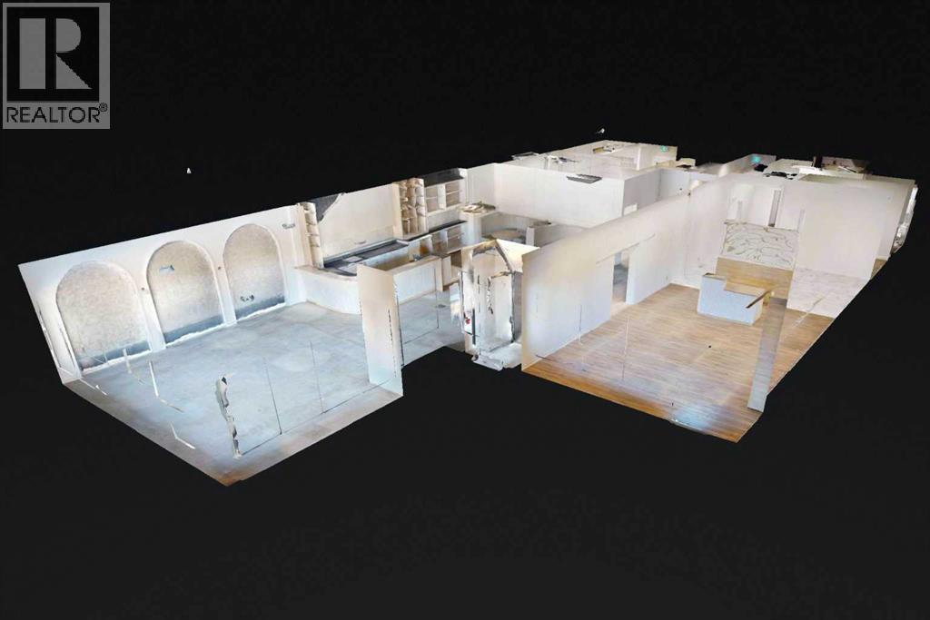 This expansive commercial property on main street in Stettler features a visually appealing and versatile layout suitable for a variety of business styles. The interior blends industrial and modern design, highlighted by exposed beams and ductwork in the high ceilings. Large windows fill the space with natural light for an open, airy feel. This property is partitioned into two main spaces, each with their own front and back doors. The south side has an open area with polished concrete floors, making the space well suited for retail or event use. There is an existing bar with stainless steel commercial sinks, plenty of counterspace, and display shelving. This space currently has two tables with built in seating. The kitchen area adjacent is ready for development. An arched doorway leads you to a bright space with warm wood-look flooring and windows along the front. This could potentially provide a comfortable setting for retail, offices, or meeting areas. Beyond this is another space with marble-look flooring for even more flexibility. There is a large office or storage room as well as a comfortable washroom just around the corner. The hall, which divides the two main spaces, has storage room with shelving and two modern washrooms. With its blend of open concept areas and private rooms, this property can easily accommodate creative studios, professional offices, retail operations, or multi-use commercial ventures. The landlord is open to demising the space with an acceptable lease. (id:51989)