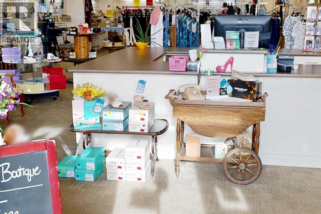 An exciting opportunity to own an established women’s shoe and clothing boutique in the heart of Stettler. Ideally situated on a busy main street, this business benefits from excellent visibility and steady foot traffic, surrounded by a strong mix of professional and retail neighbours that help anchor the area. This well-curated boutique offers a diverse selection of women’s footwear, apparel, accessories, and giftware, catering to a loyal local customer base while also drawing in visitors seeking quality retail options. The sale includes a complete turnkey package, featuring inventory (to be adjusted upon closing) and all essential operational assets: display furniture, racking, décor elements, mannequins, office furniture, point-of-sale equipment, computers, and TV screens—everything needed to step in and continue operations seamlessly. The buyer will assume the current lease, allowing for continuity in this desirable and established location. Whether you are an entrepreneur looking to be hands-on in a local business or an investor seeking to expand your portfolio with a retail operation, this opportunity offers both stability and growth potential in a supportive community. (id:51989)