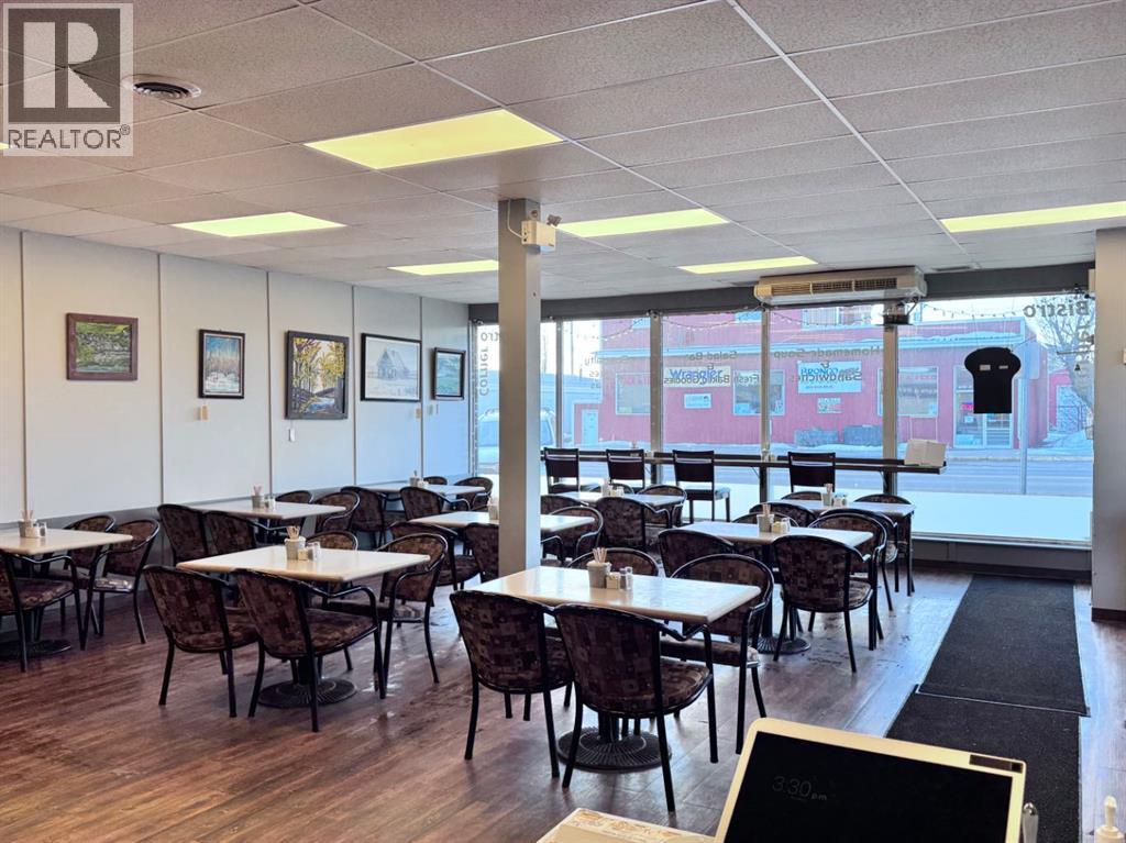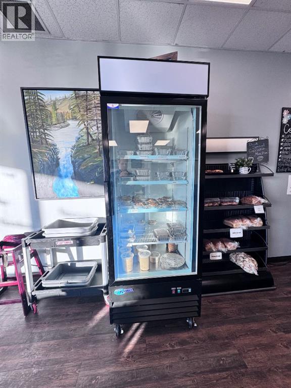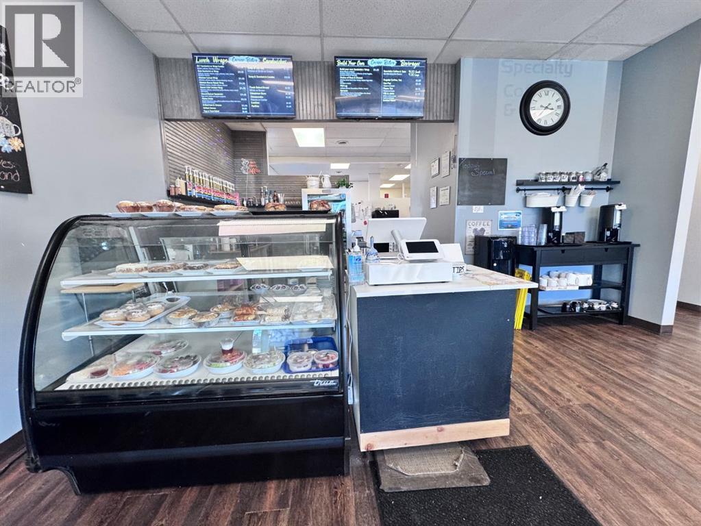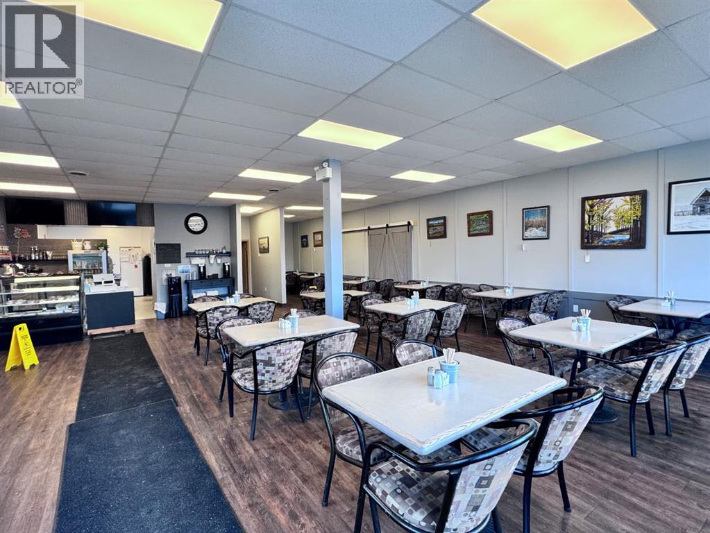 High-visibility commercial lease opportunity in the heart ofdowntown Rimbey. This well-located corner unit offers approximately 2,153 sq.ft. of usable space withexcellent street exposure and strong foot and vehicle traffic. Features include a front service area, prepspace, storage, walk-in traffic access, large display windows, and rear access. Highlights include aprime downtown corner location, flexible layout, modern interior, updated furnace, overhead heater,newer hot water tank, air conditioning, espresso station, large refrigerated display case, andprofessional kitchen equipment. A turnkey commercial space suitable for a variety of business uses.Immediate possession available (id:51989)