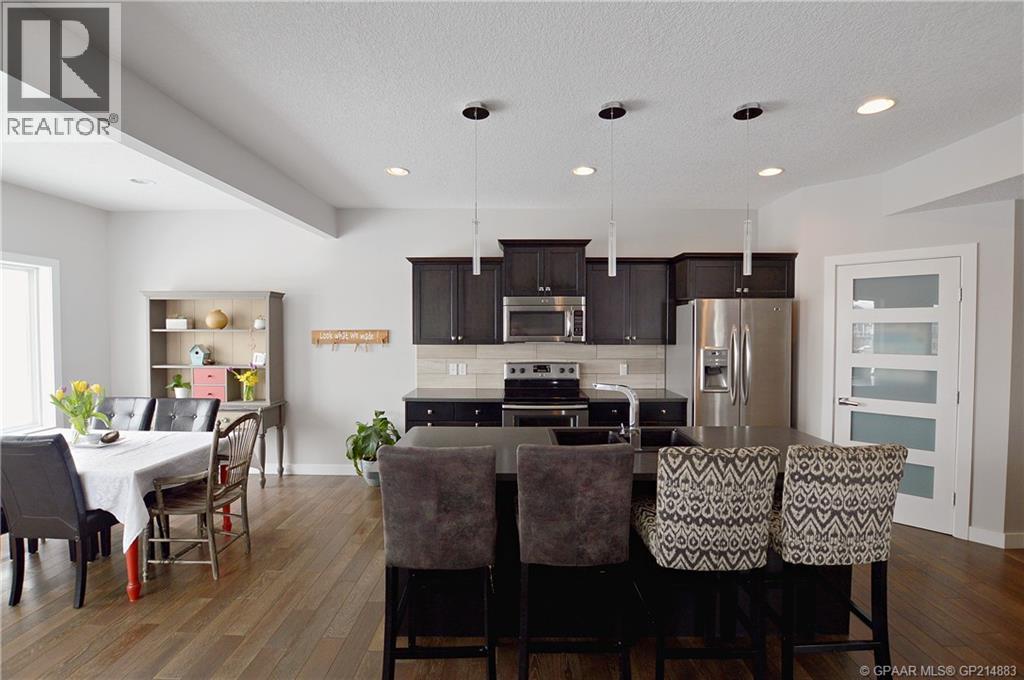 This home has everything you have been looking for! Backing onto Pinnacle Lake pond in a family friendly neighborhood. Fully developed with a WALK OUT basement. Featuring a welcoming entry with stone flooring accents, a cozy fireplace in the family room, a spacious kitchen with a eating bar, pantry and lovely cabinetry, upper deck access from the dining area plus garage entry with built in storage cubicles. Upstairs, the master bedroom offers an elegant ensuite with a walk in closet. Additional bedrooms are a generous size. Downstairs has been nicely finished into a large family room, nook area with murphy bed. (ideal as an office or kids play area), 4pc bathroom, massive laundry room and an abundance of storage. Backyard is fully irrigated, fenced and landscaped . Enjoy the peaceful setting this home has to offer. Close to gas station, bus stop, Eastlink Center, Coke Center, restaurants and schools. Be sure to add to your list of showings! ! owner Urban Escape built. (id:51989)
