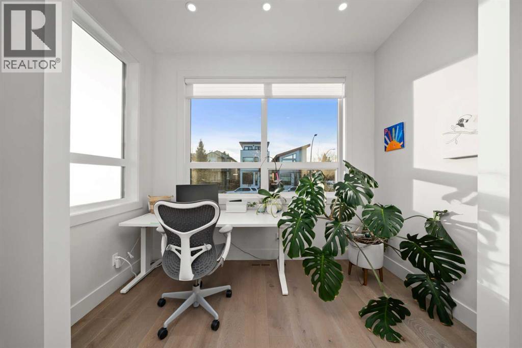 *** OPEN HOUSE: Saturday, April 25th 12 to 2pm *** Welcome to 4906 21 Street SW, an architecturally striking home set on a quiet, tree-lined street in the heart of Altadore. Positioned on a generous 25 x 150 ft. lot and offering over 3,300 sq. ft. of developed living space, this residence blends thoughtful design, high-end finishes, and functional family living.From the moment you step inside, you’re welcomed by soaring 10-foot ceilings, 8-foot doors, and white oak hardwood flooring that carries throughout the open-concept main level. A sun-filled front flex space offers versatility for a home office, reading area, or playroom, while expansive windows fill the home with natural light.The main floor flows seamlessly into a spacious dining area and a chef-inspired kitchen designed for both everyday living and entertaining. Featuring custom two-tone cabinetry, quartz countertops, and an oversized island with bar seating, the space is complemented by a premium European appliance package, including a gas cooktop, panelled refrigerator, and built-in wall oven and microwave.Anchoring the living room is a designer tile feature wall with a gas fireplace, creating a warm and inviting focal point. At the rear, a well-designed mudroom connects effortlessly to the landscaped backyard and oversized double detached garage.Upstairs, vaulted ceilings add volume and character throughout, along with a bright skylit flex space and convenient upper-floor laundry. The primary suite offers a private retreat, complete with a spacious walk-in closet with custom built-ins, a private balcony, and a spa-inspired ensuite featuring in-floor heating, a steam shower, freestanding soaker tub, dual vanities, and refined tilework.Two additional bedrooms, both with walk-in closets, are complemented by a thoughtfully designed double vanity bathroom, along with an abundance of integrated storage throughout the level.The fully developed basement extends the home’s versatility, featuring 9-foo t ceilings, in-floor heating, a large recreation space, wet bar, and a second gas fireplace—ideal for relaxing or entertaining. This level also includes two additional bedrooms, a full bathroom, and flexible space for guests, a home gym, or growing families.Recent updates include a new energy-efficient air conditioning system (2022), new roofing (2023), and professional front landscaping (2020), enhancing both comfort and curb appeal.Located in one of Calgary’s most desirable inner-city communities, this home is just minutes from River Park, top-rated schools, Marda Loop, and downtown. A rare opportunity to own a well-designed, move-in ready home in a highly sought-after neighbourhood. (id:51989)
