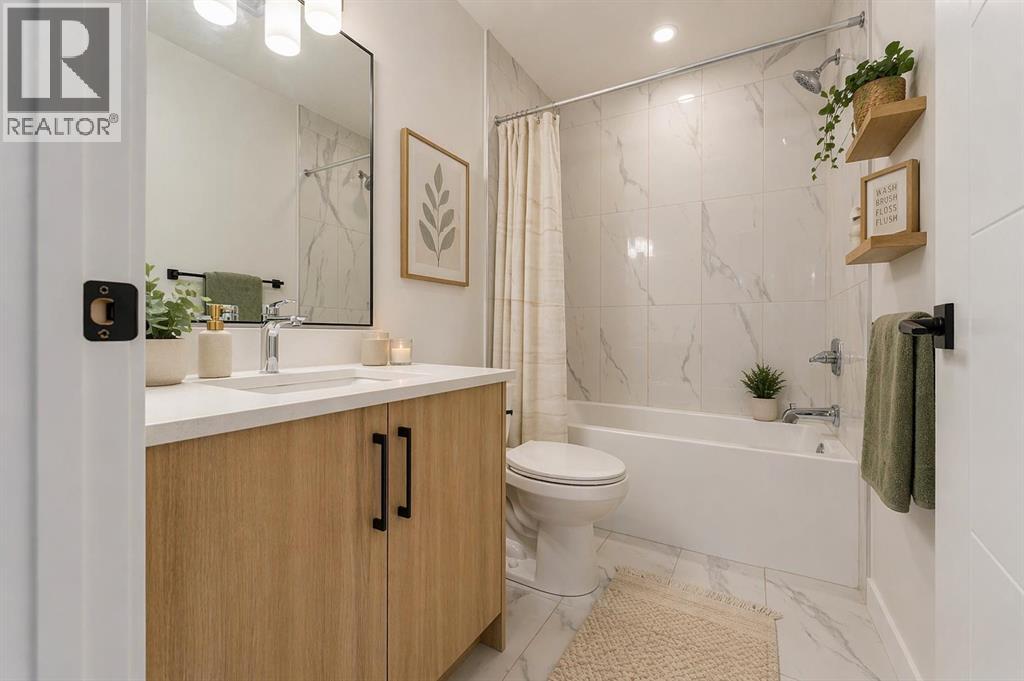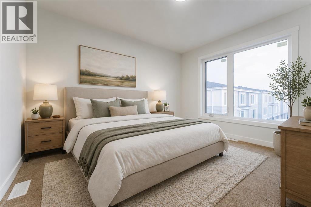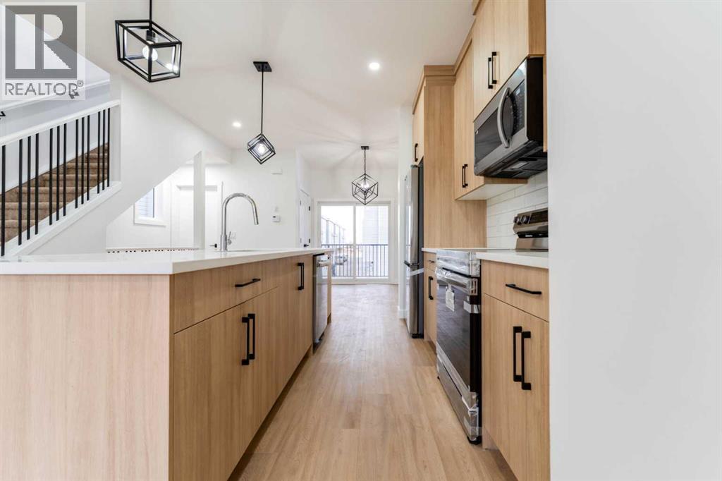 **First-time home buyer GST Rebate Available**. Show Home For Sale | 4 beds | 3.5 bath | Single Car Garage Attached Experience the ideal mix of comfort, style, and convenience in this stunning townhome in Saddlepeace (Saddleridge NE). The bright main floor offers an open-concept layout with a modern kitchen featuring quartz countertops, stainless steel appliances, full-height cabinets, and a large island. Upstairs includes 3 spacious bedrooms, a primary suite with a walk-in closet and ensuite, plus convenient laundry.The ground-level 4th bedroom comes with its own ensuite and separate laundry—perfect for extended family or rental income. An attached garage adds extra convenience.Located close to shopping, schools, parks, transit, and the Sikh Temple, with easy access to Stoney Trail and Metis Trail. Only 5 minutes to Calgary International Airport and 15 minutes to CrossIron Mills. Schedule your private viewing today! (id:51989)