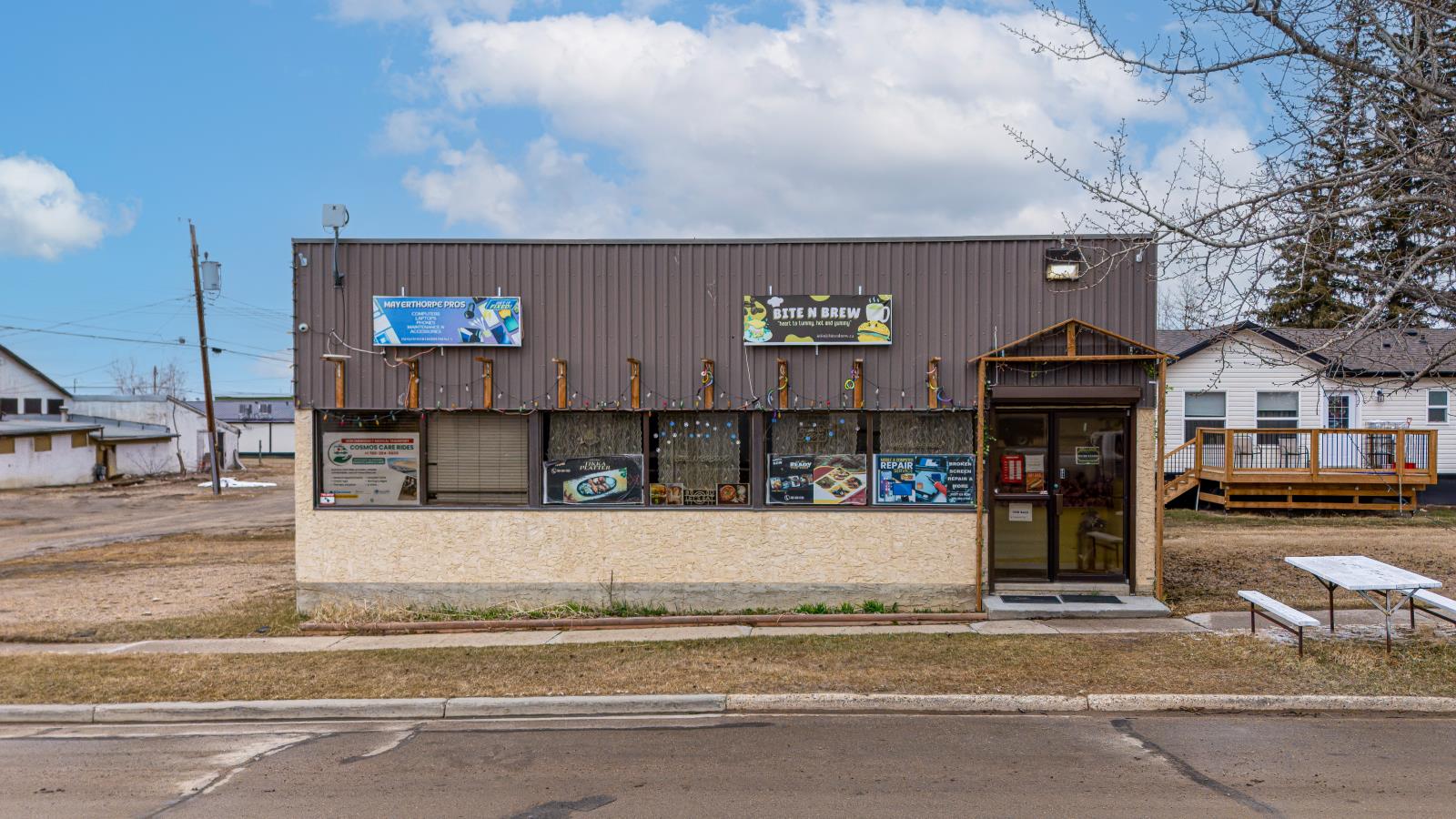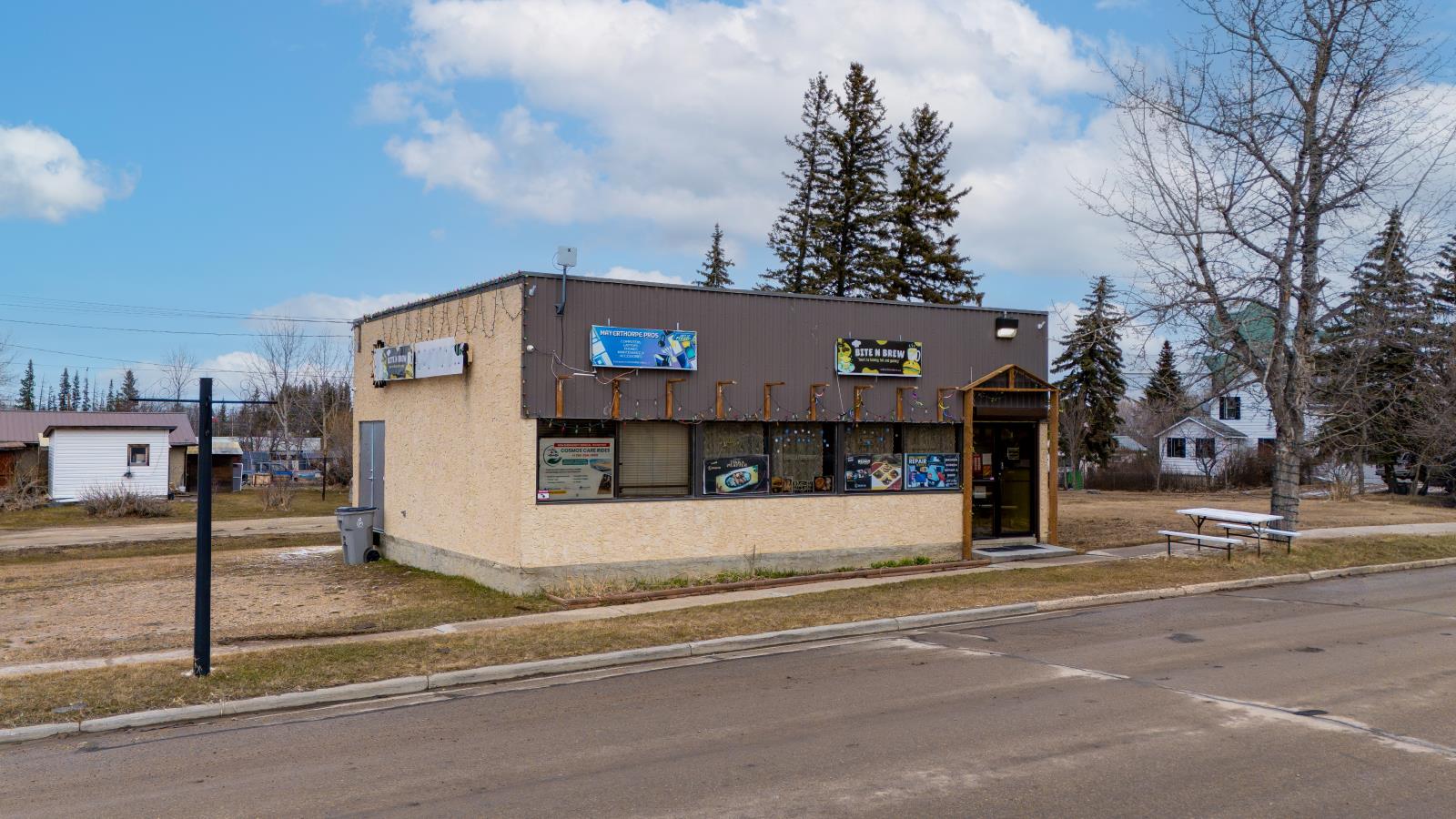 Excellent opportunity to own a well - located freestanding commercial property in growing community of Mayerthorpe, Alberta which is just 1.5 hour drive from Edmonton. This property offers 1061.60 sf of functional interior space situated on a 4200 sf lot size. This building provides flexibility for a variety of business uses ideal for cafe, day care, office, small businesses service based operations with convenient access and strong local visibility. A great investment for owner-users or investors looking to establish or expand in vibrant rural market. more detail call Kavi Deol 780 953 7484 (id:51989)
