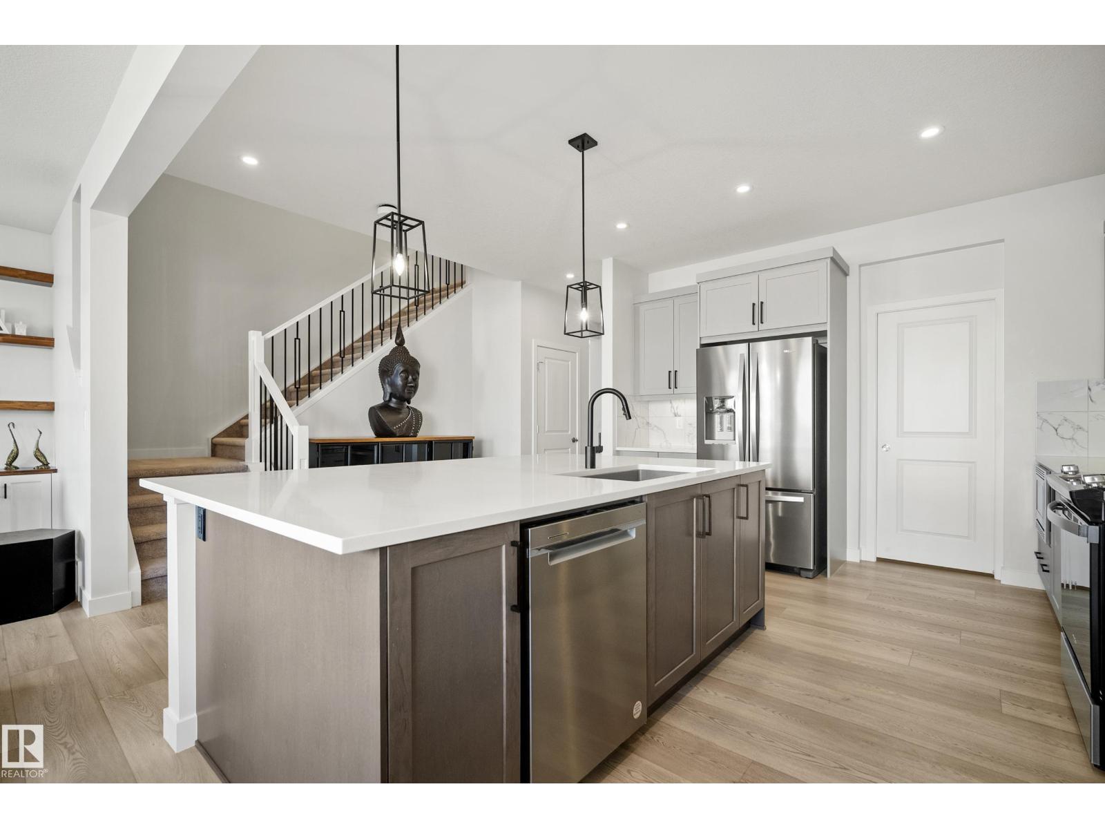 Tired of cookie cutter? Look no further than this stunning Jayman-Built home in Keswick, offering 2,250 sq ft of thoughtfully designed living space just steps from a pond with trails and walking distance to two K-9 schools. Step inside to a MAIN FLOOR OFFICE, an upgraded kitchen with a massive island, under-cabinet lighting, and a walk-through pantry to the mudroom. The living room is warm and inviting with an electric fireplace, natural wood mantel, and stylish built-in shelving. Upstairs, the EXTENDED primary suite features a 5pc ensuite with soaker tub and makeup table, plus a huge walk-in closet that connects DIRECTLY to the laundry room. Two additional bedrooms, a 4pc bath, and a private bonus room complete the upper level. A separate entrance offers future income-suite potential, while 10 solar panels virtually eliminate summer electricity costs. Extras include central A/C via heat pump, UV air purification, instant hot water, EV charging hookup, and full landscaping. This one checks every box. (id:51989)