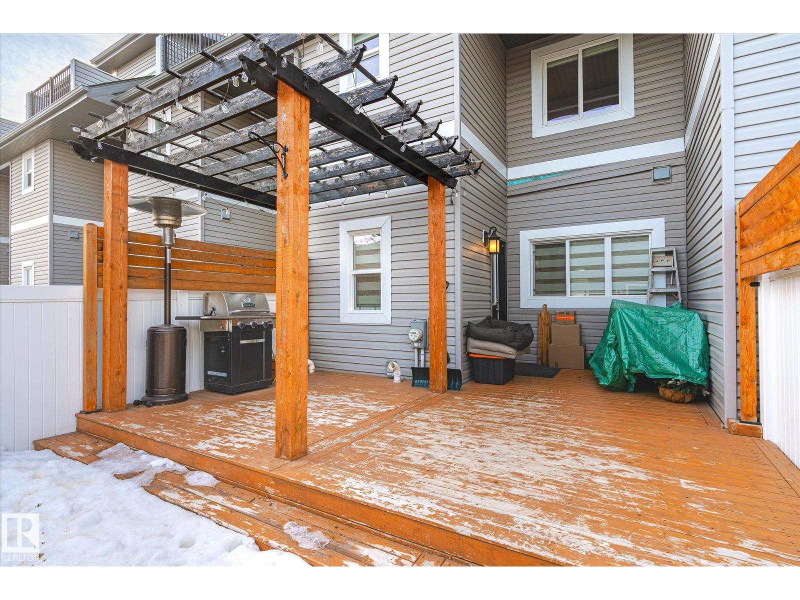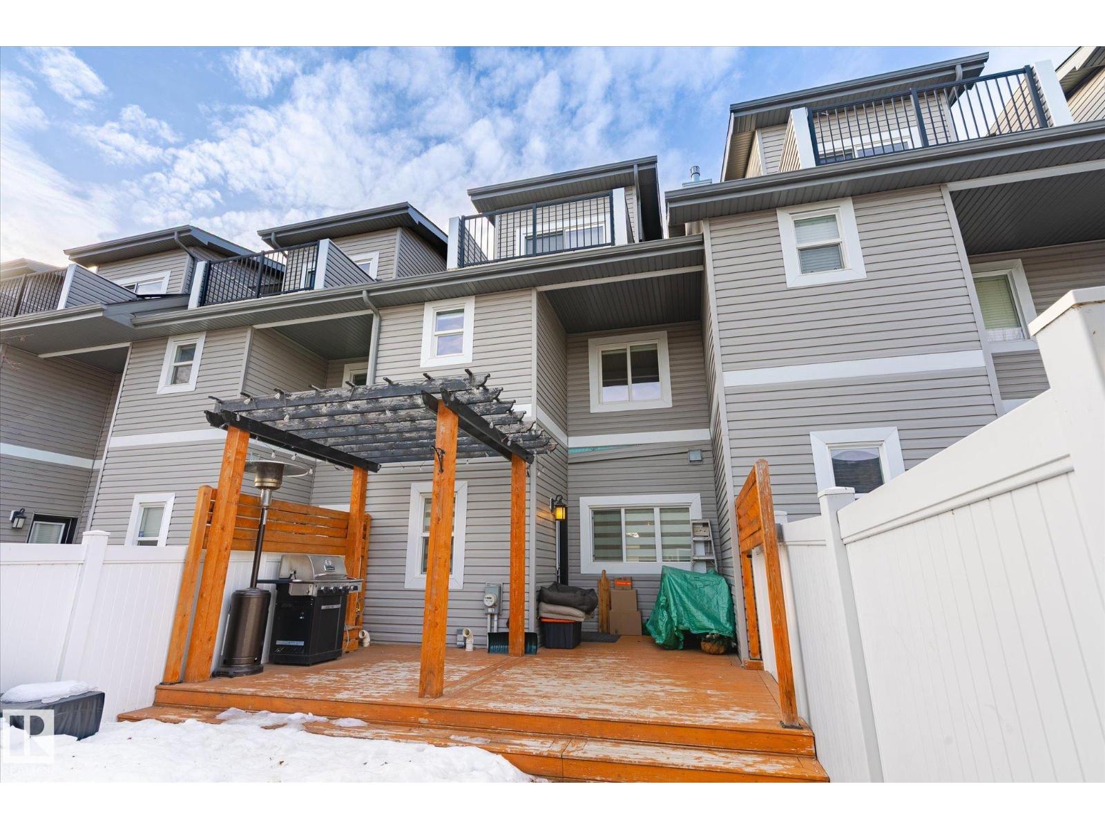 Make your brownstone dreams a reality here in Terwillegar! This stunning and spacious townhome offers NO CONDO FEES and over 2500 square feet including the finished basement! Prepare to be wow'd upon entry to the open concept main floor, featuring refinished hardwood floors, 3 sided gas fireplace, and updated kitchen with stainless steel appliances. Completing this level is a 2 pc bathroom and access to the private backyard with cedar deck, pergola, and the double detached garage. The second floor is home to 2 large bedrooms, laundry, and main 4 pc bathroom. The top floor is reserved entirely for the opulent primary retreat, with its own balcony, huge 5 pc ensuite and of course walk in closet. The basement is professionally finished with a 4th bedroom, cozy living room, and full bathroom. With an ideal location walking distance to shops and school, this home is sure to impress. Come live in one of south Edmonton's most sought after communities! (id:51989)