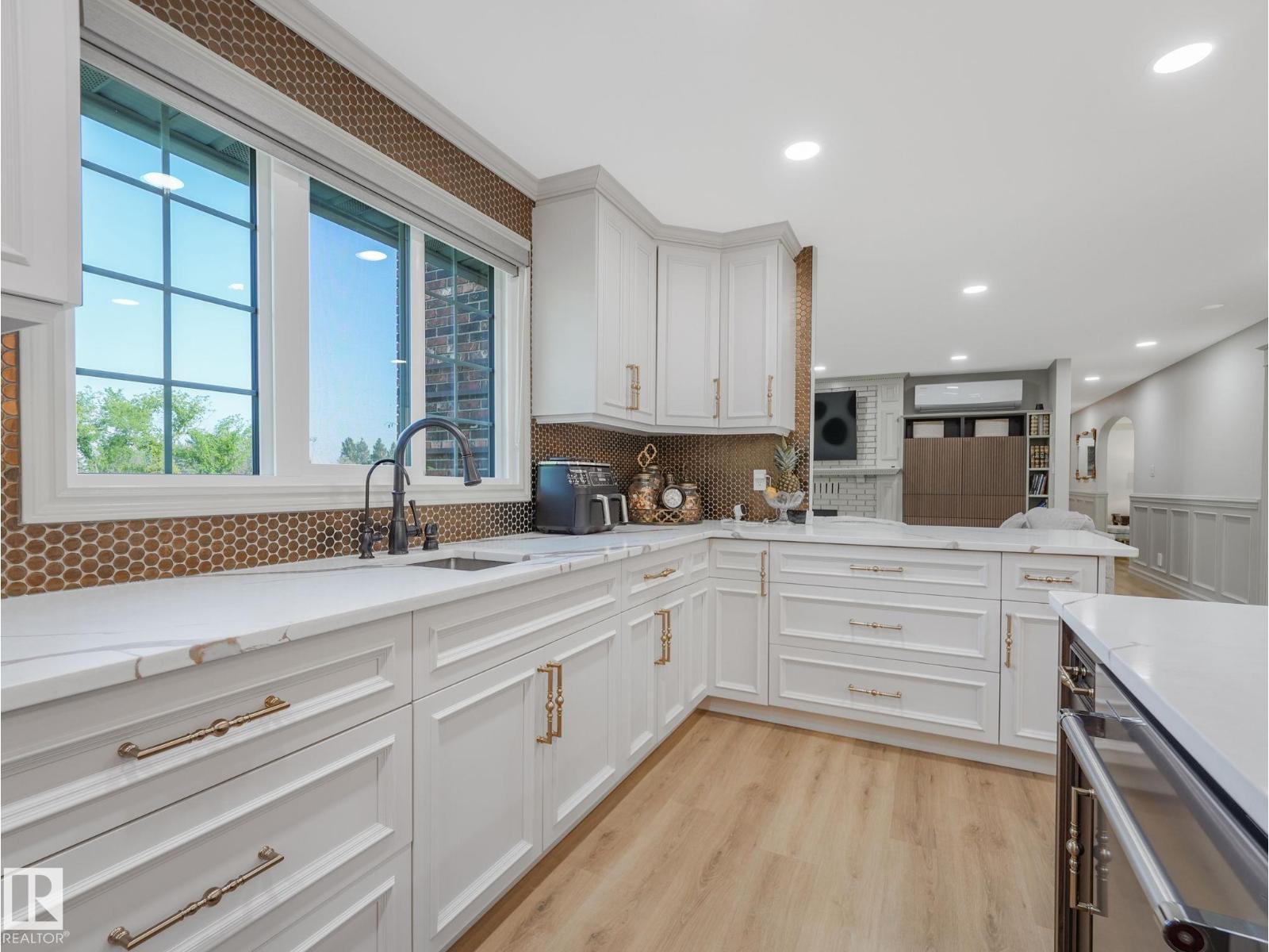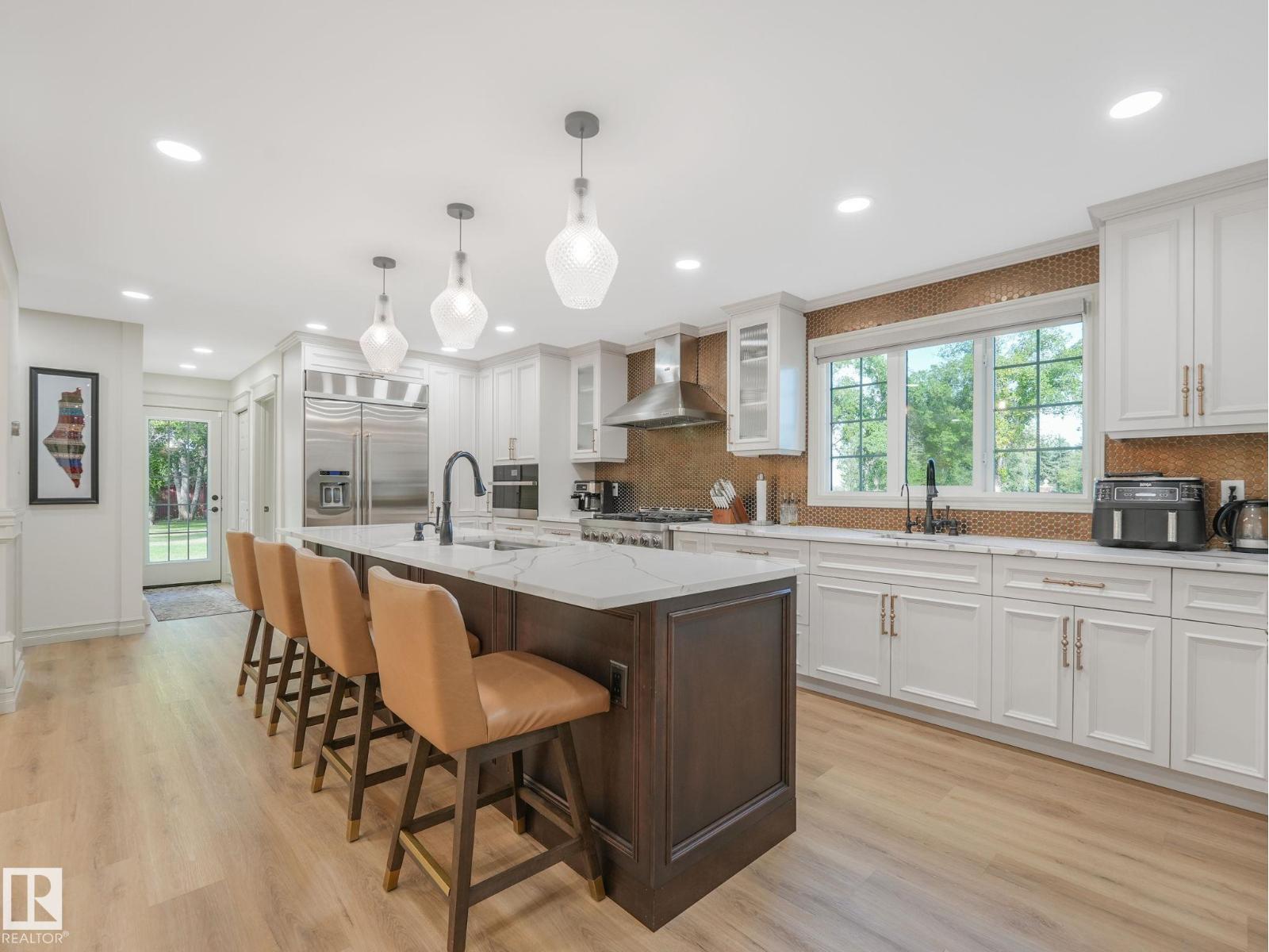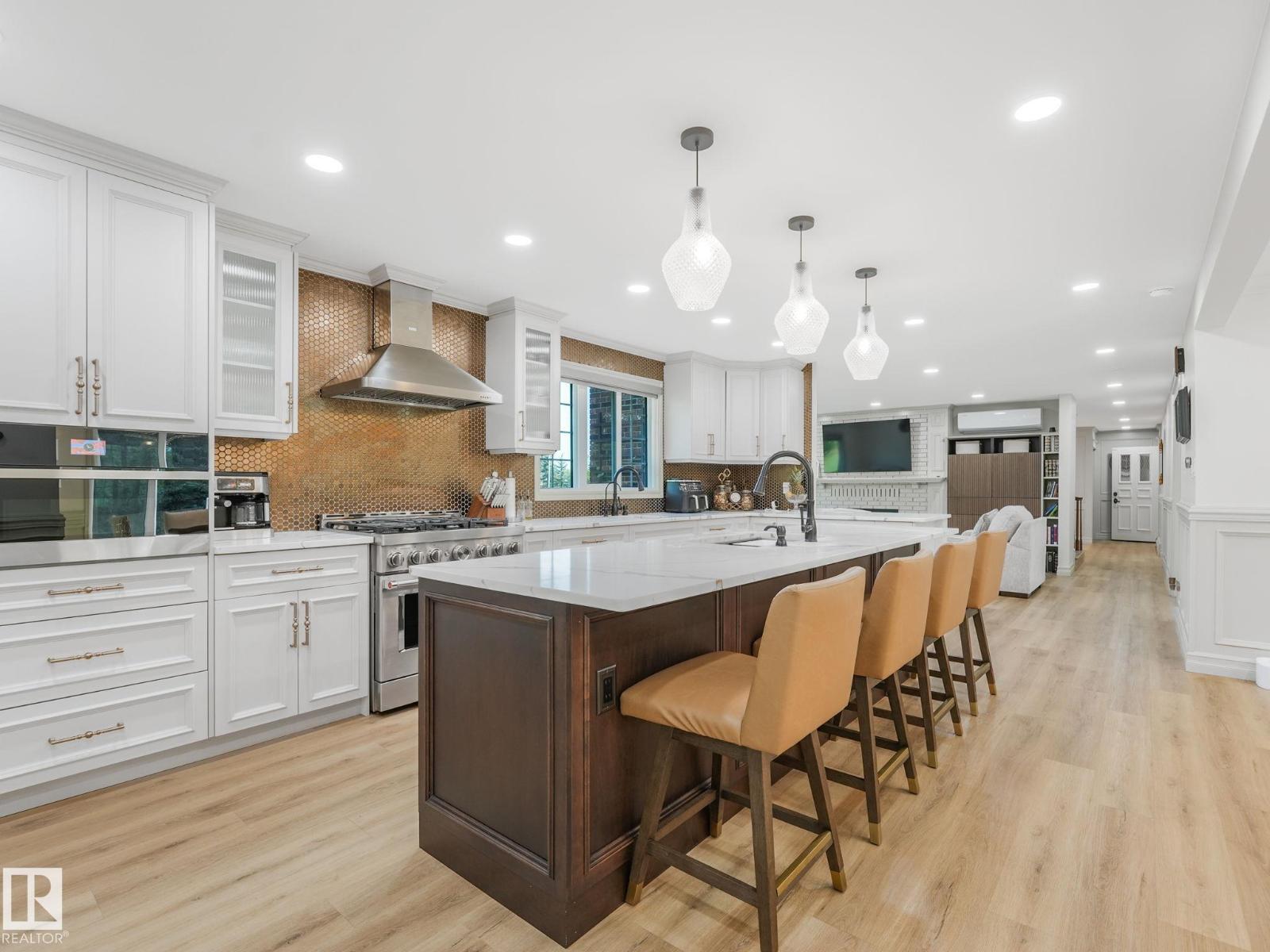 A masterfully reimagined Tudor-inspired residence offering over 6,250 sq.ft. of refined living in a secluded, park-like setting. Beyond majestic powered gates, a newly paved 10,000 sq.ft. drive leads to this extraordinary 7-bedroom, 6-bath estate, meticulously renovated while preserving its rich architectural character. Designed for elevated living, the home showcases Moroccan tile flooring, exposed beams, triple-pane windows, 50-year shingles, new electrical & plumbing, in-floor heating, water distillery & built-in security system. The chef’s kitchen & bespoke bath vanities feature elegant maple cabinetry, sophisticated hardware & striking quartz countertops. Outdoors, enjoy a private pond, stamped concrete patio & charming gazebo—an entertainer’s dream. The primary retreat is unparalleled, with a lavish spa-inspired ensuite & private balcony overlooking the grounds. The fully appointed lower level offers a 2nd kitchen, guest suite, gym & steam room. A rare offering of timeless elegance & modern luxury (id:51989)