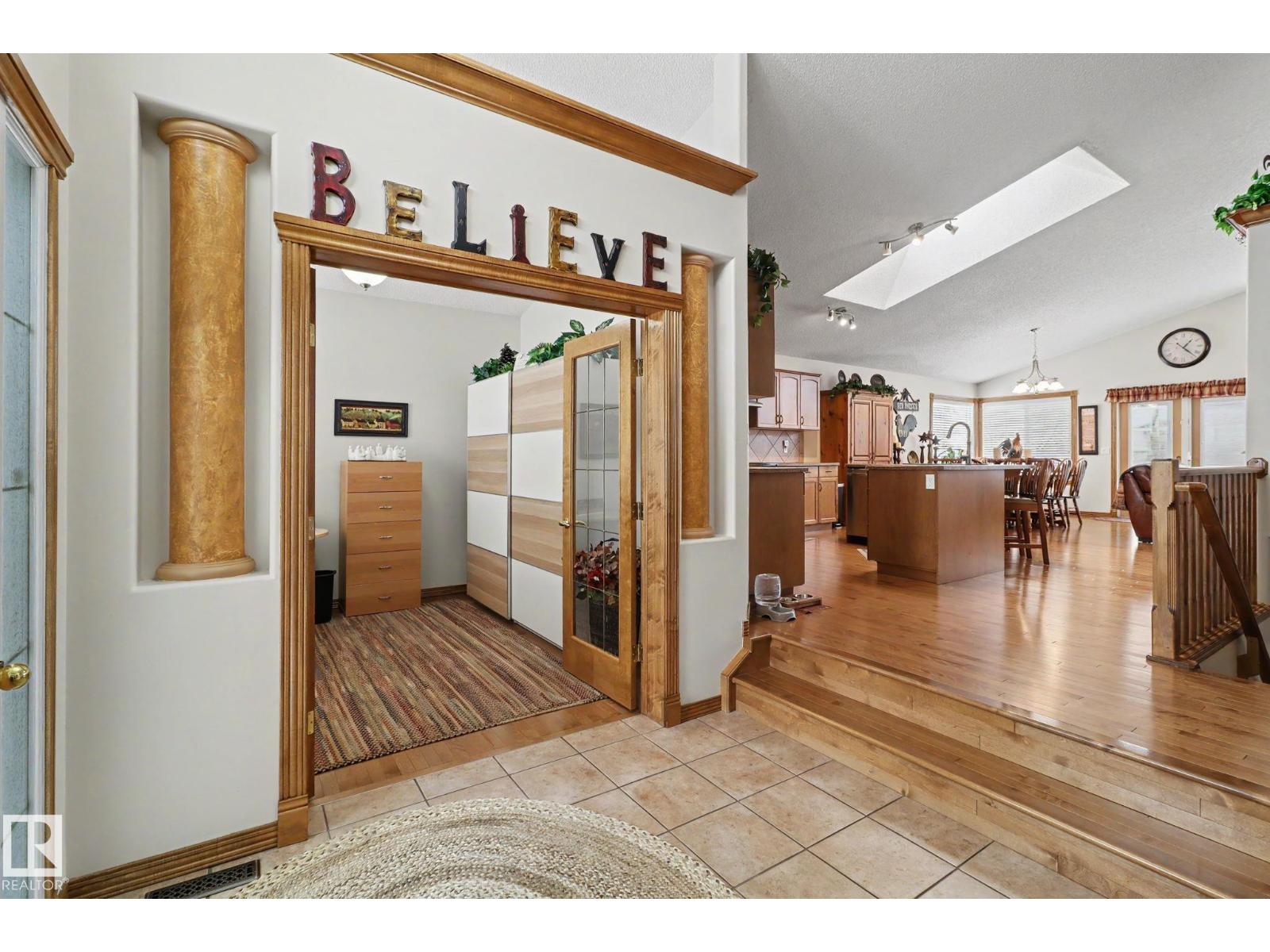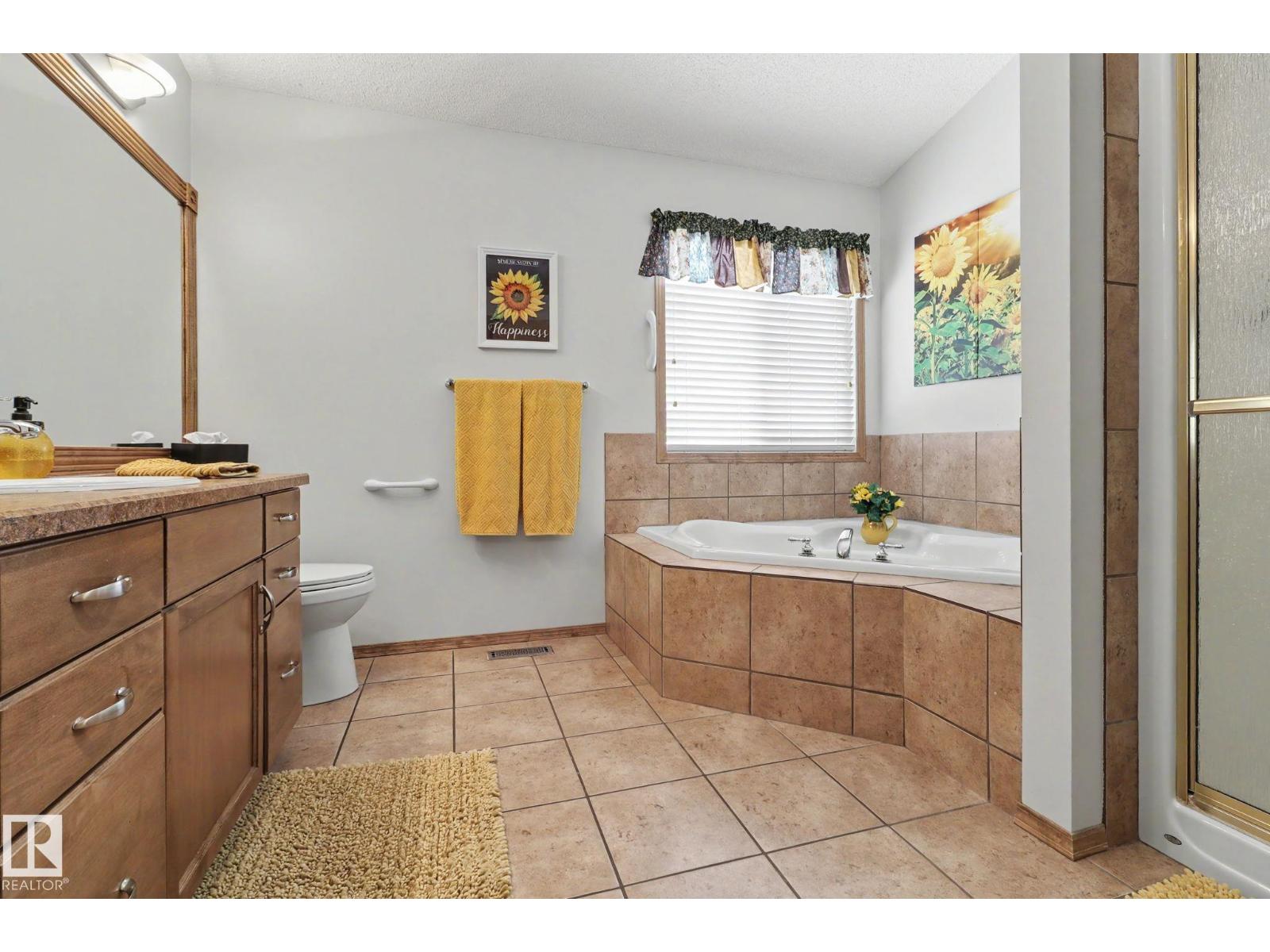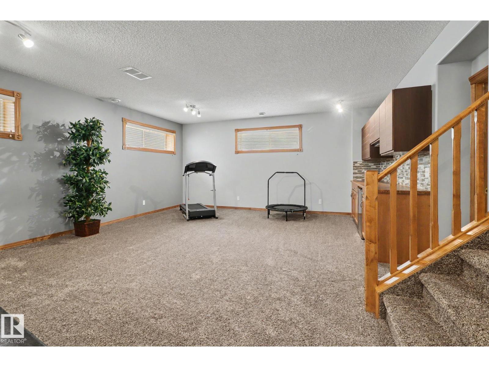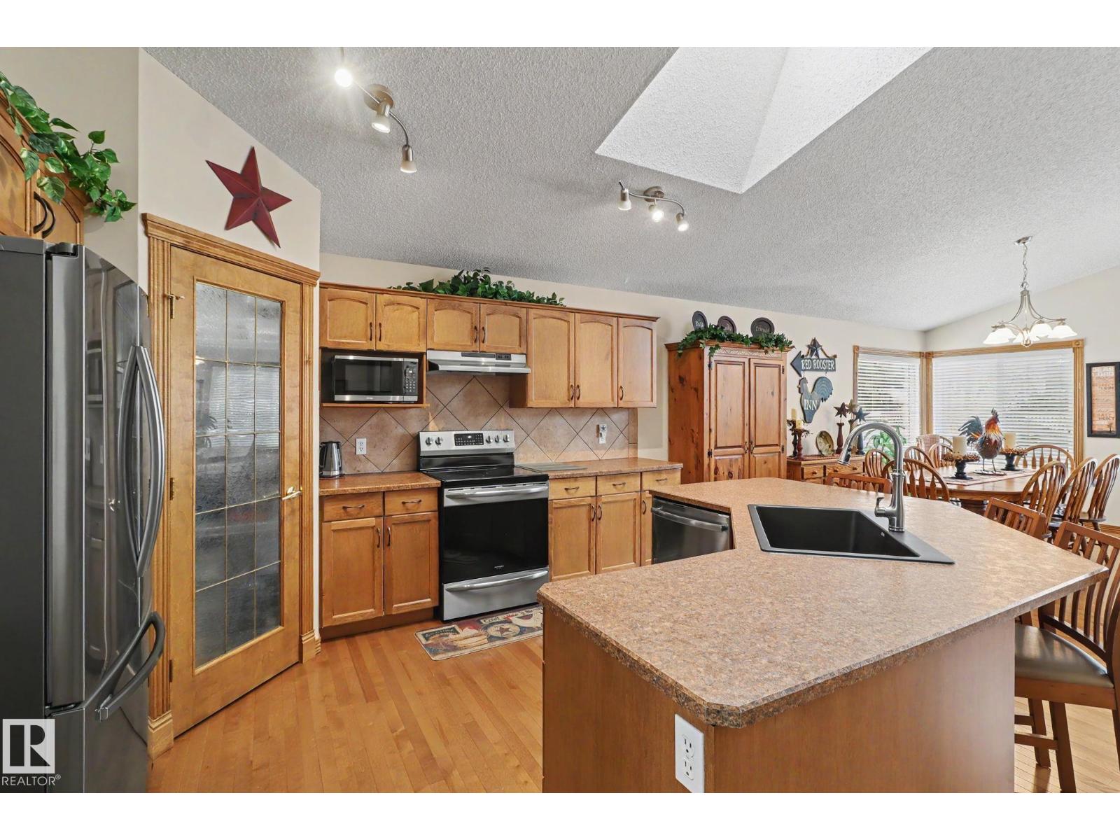 Welcome to this beautiful bungalow in the sought-after community of Coloniale Estates in Beaumont. Featuring 4 bedrooms and 3 full bathrooms, this home offers an inviting open-concept layout with vaulted ceilings and plenty of natural light. The spacious living room boasts a cozy fireplace, while the kitchen flows seamlessly into the dining and living areas—perfect for entertaining. Stay comfortable year-round with central air conditioning and enjoy outdoor living on the low-maintenance composite deck. The fully finished basement includes a large family room with a second fireplace, games area, wet bar, and two bedrooms with walk-in closets. A storage room with sink, refrigerator and shelving adds convenience. The oversized garage offers ample storage, a generous workbench, and an electric heater for year-round use. A perfect family home in a fantastic location! (id:51989)