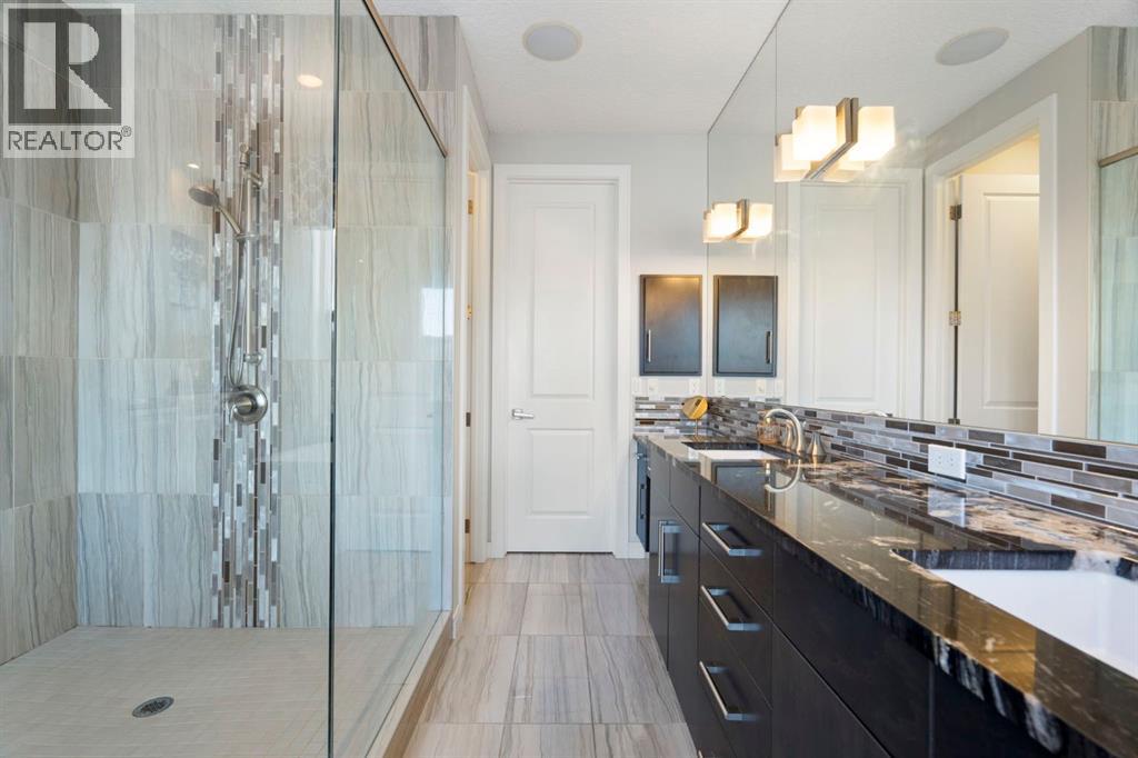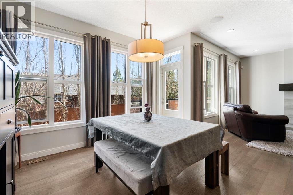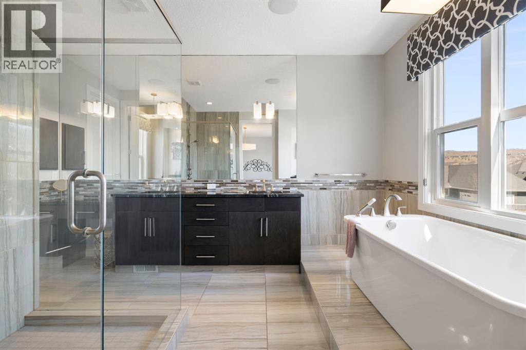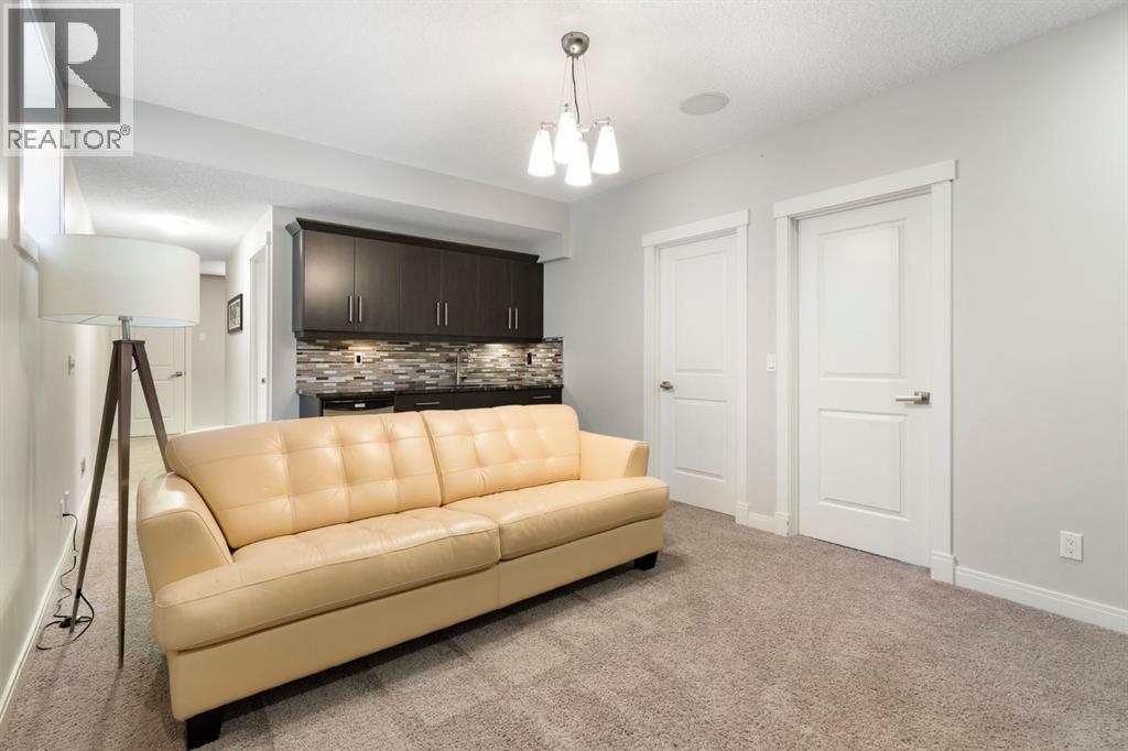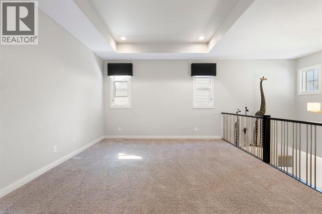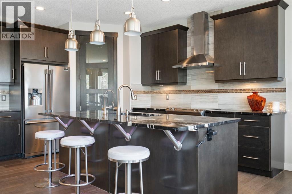 Located in the community of Riviera, this home offers over 3,000 sq ft of finished living space on a quiet crescent set just behind a wooded area and minutes from the Bow River pathways.The main floor opens with 10-foot ceilings and a bright, open layout that carries through the kitchen, dining and living spaces. The kitchen is centred around a large island with seating, stainless steel appliances and a walk-through pantry that connects directly to the mudroom and garage entry. The dining area includes a bump-out for a larger table, while the living room is anchored by a gas fireplace. A flex space at the front of the home adds versatility for a home office or sitting area, along with a powder room to complete the main level.Upstairs, the bonus room continues the sense of space with 10-foot ceilings and separation from the main living area. The primary bedroom is positioned for privacy and includes a walk-in closet and ensuite with a soaker tub, tiled shower and double vanity. Two additional bedrooms, a full bathroom, and an upper laundry room with a sink add everyday convenience. Built-in features like the desk and window seat bring in a bit of character without taking away usable space.The fully finished basement adds another layer with a family room, wet bar, dedicated media room, fourth bedroom with egress windows, and a full bathroom.Additional features include dual furnaces and air conditioning units for temperature control between floors, a speaker system wired throughout, adjustable lighting, central vacuum, water softener with reverse osmosis, and an in-ground sprinkler system.Riviera is known for its access to the Bow River and pathway system, along with its proximity to Spray Lake Sawmills Family Sports Centre, the parks and ball diamonds in Greystone Park, and everyday essentials at Co-op Food Store. With quick access to downtown Cochrane and an easy commute into Calgary, the location offers a balance of outdoor space and convenience.Call you r favourite realtor and book a showing today! (id:51989)