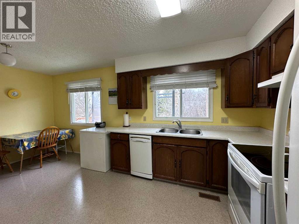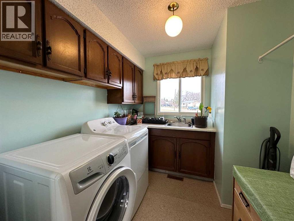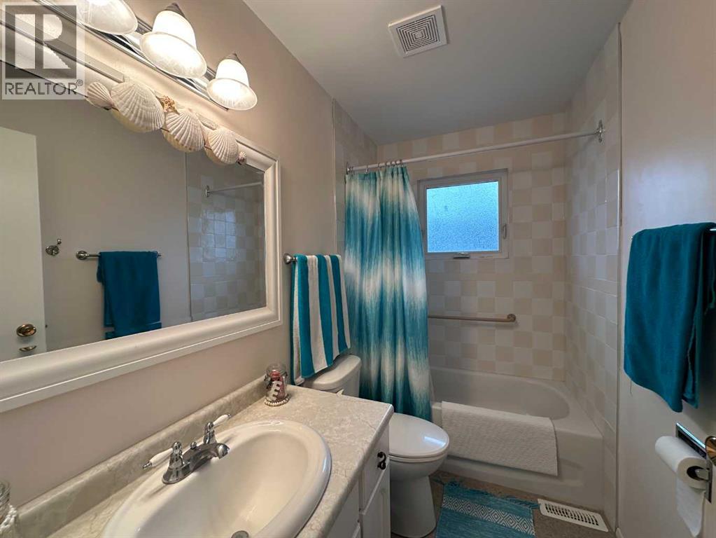 This inviting 968 sq ft bungalow offers a warm and functional layout, perfect for comfortable everyday living. The main floor features two bedrooms and a beautifully updated bathroom, along with a bright kitchen boasting an abundance of cabinetry. A highly practical main floor laundry area includes built-in cabinets and space for hobbies or projects. The basement adds excellent additional living space, complete with a third bedroom, a 3-piece bathroom, a spacious family room, and a utility room with plenty of storage. There’s also a cold room and extra storage tucked neatly under the stairs. The concrete basement floor has been uniquely painted—adding character you won’t want to change—and many of the walls have also been refreshed. Large basement windows bring in lots of natural light, making the space feel open and welcoming. Only the ceiling remains to be finished. Recent upgrades include main floor paint and flooring (2025), two exterior doors (2024), shingles (2022), front living room window (2024), and a main floor bathroom tile tub surround and window (2025). The furnace was installed in 2003 and professionally cleaned in 2024. Situated on an oversized pie-shaped lot, the property features a huge fenced backyard with mature trees, a large garden area, and a three-bin compost system—ideal for outdoor enthusiasts. The home is perfectly positioned to enjoy backyard views from both the kitchen and living room or from the large deck accessible from the living room entrance. Gravel parking pad in the front. Pride of ownership throughout this home. This is a fantastic opportunity you won’t want to miss. (id:51989)