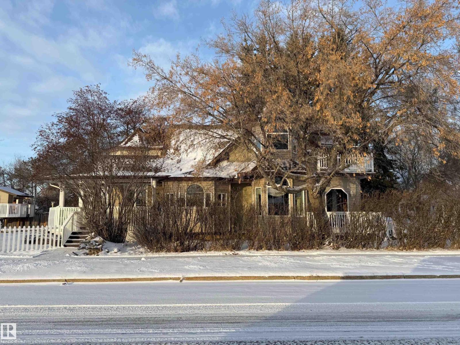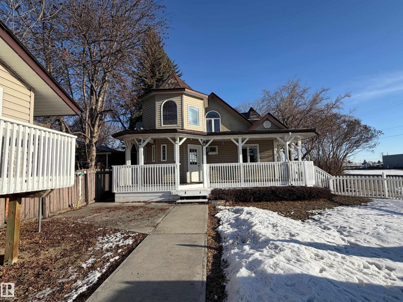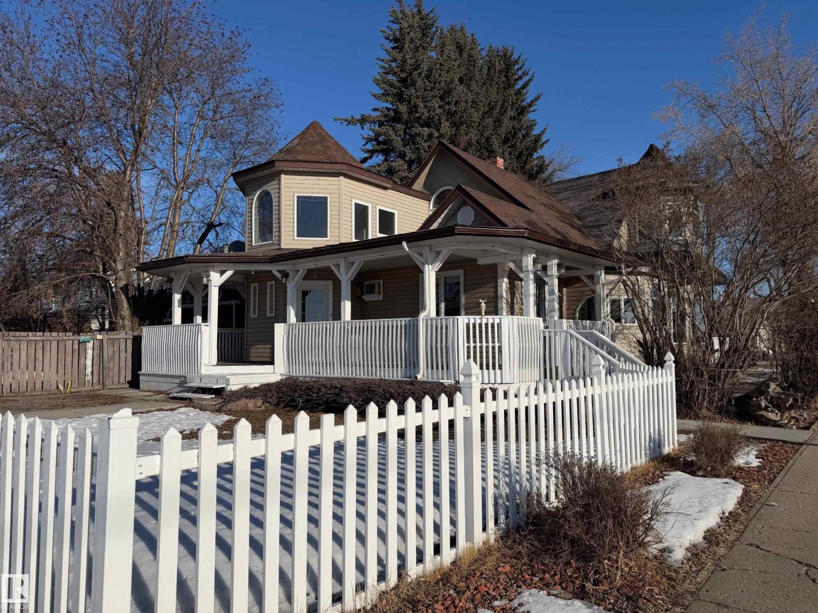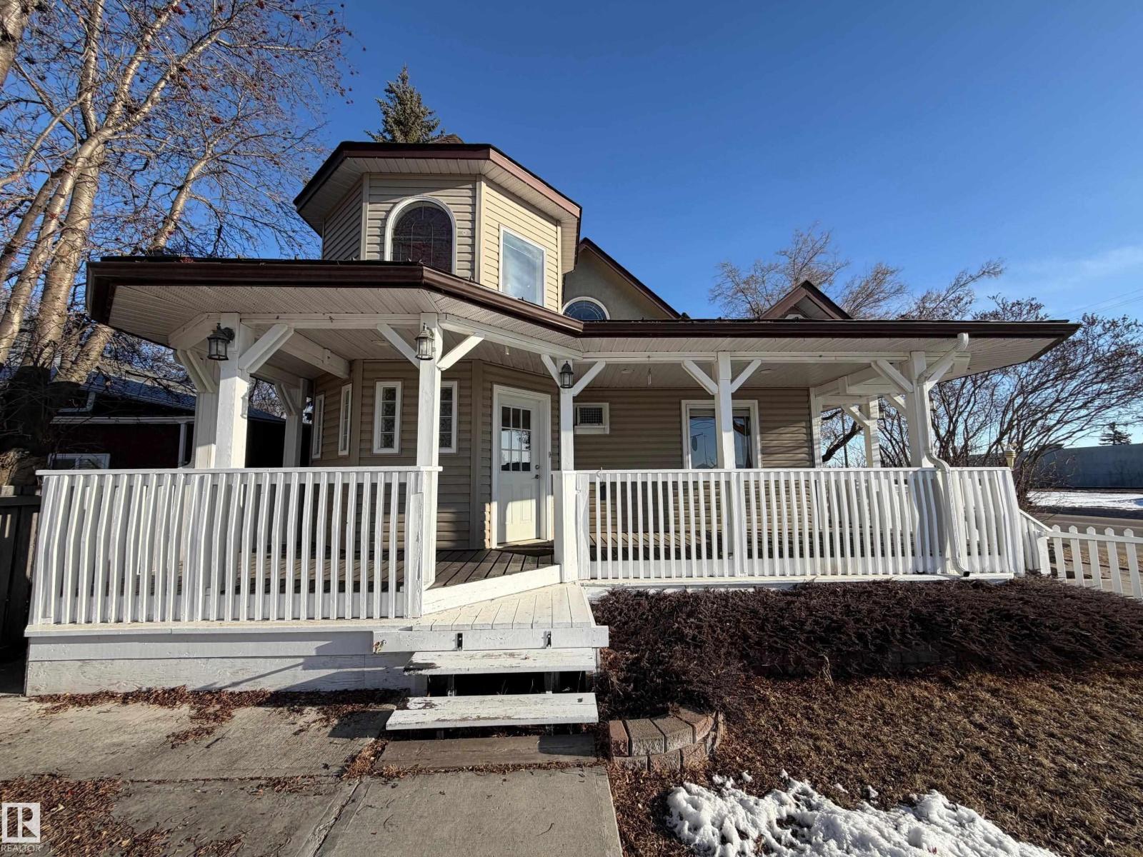 Charming 2-Storey Character Home! Step into timeless charm w/ this unique & beautifully maintained home, featuring a welcoming enclosed front porch & spacious back veranda, perfect for relaxing. Inside, you will fall in love w/ the custom kitchen (Wood Art) boasting solid oak cabinetry & mosaic tile flooring— perfect for the home chef. The formal dining room shines w/hardwood floors & a vintage chandelier, while the cozy living room includes a den/office space for added flexibility. Upstairs, discover a loft-style layout w/ 2 unique bedrooms including a spacious primary suite w/ built-in cabinetry, custom solid wood bed, 4-pc ensuite, w/i closet & private balcony. The 2nd room is bright & unique w/ octagonal ceiling & 2nd staircase to the main floor. The partially finished basement offers a workshop, laundry, 3-pc bath & loads of storage. Recent updates include a newer furnace & tankless hot water system. The landscaped, partially fenced yard offers mature trees for privacy, space for parking, and a playh (id:51989)