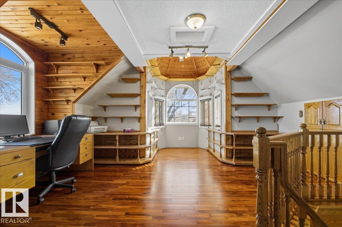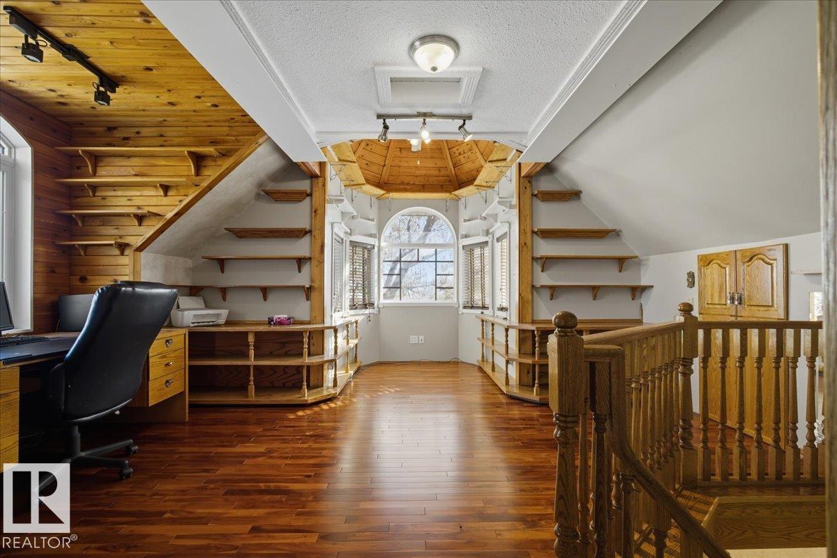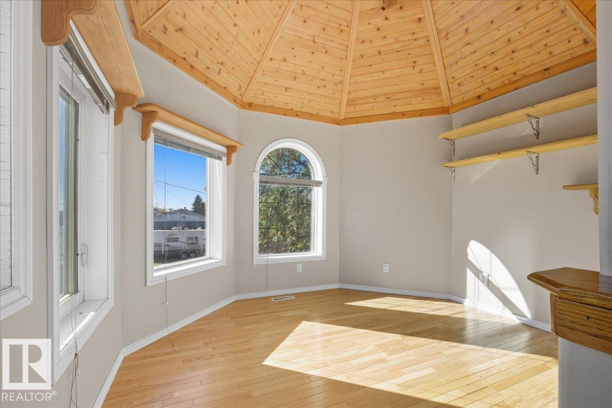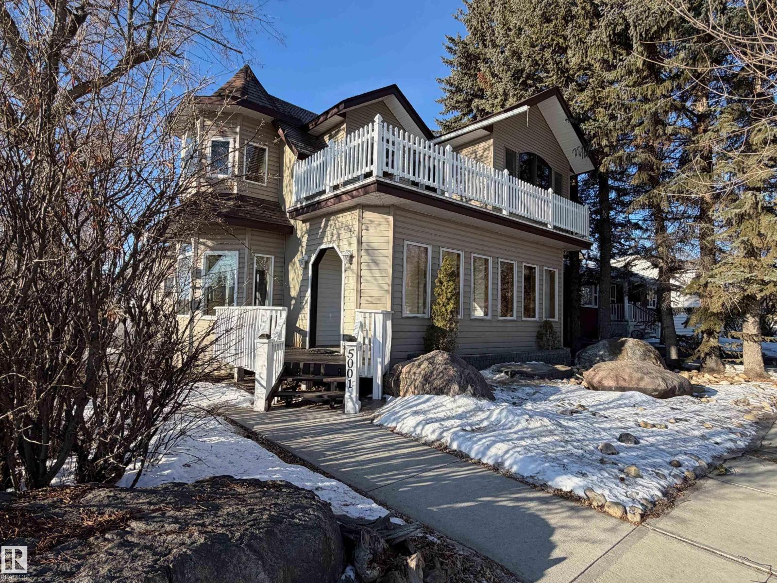 Charming 2-Storey Character Home! Step into timeless charm w/ this unique & beautifully maintained home, featuring a welcoming enclosed front porch & spacious back veranda, perfect for relaxing. Inside, you will fall in love w/ the custom kitchen (Wood Art) boasting solid oak cabinetry & mosaic tile flooring— perfect for the home chef. The formal dining room shines w/hardwood floors & a vintage chandelier, while the cozy living room includes a den/office space for added flexibility. Upstairs, discover a loft-style layout w/ 2 unique bedrooms including a spacious primary suite w/ built-in cabinetry, custom solid wood bed, 4-pc ensuite, w/i closet & private balcony. The 2nd room is bright & unique w/ octagonal ceiling & 2nd staircase to the main floor. The partially finished basement offers a workshop, laundry, 3-pc bath & loads of storage. Recent updates include a newer furnace & tankless hot water system. The landscaped, partially fenced yard offers mature trees for privacy, space for parking, and a playh (id:51989)