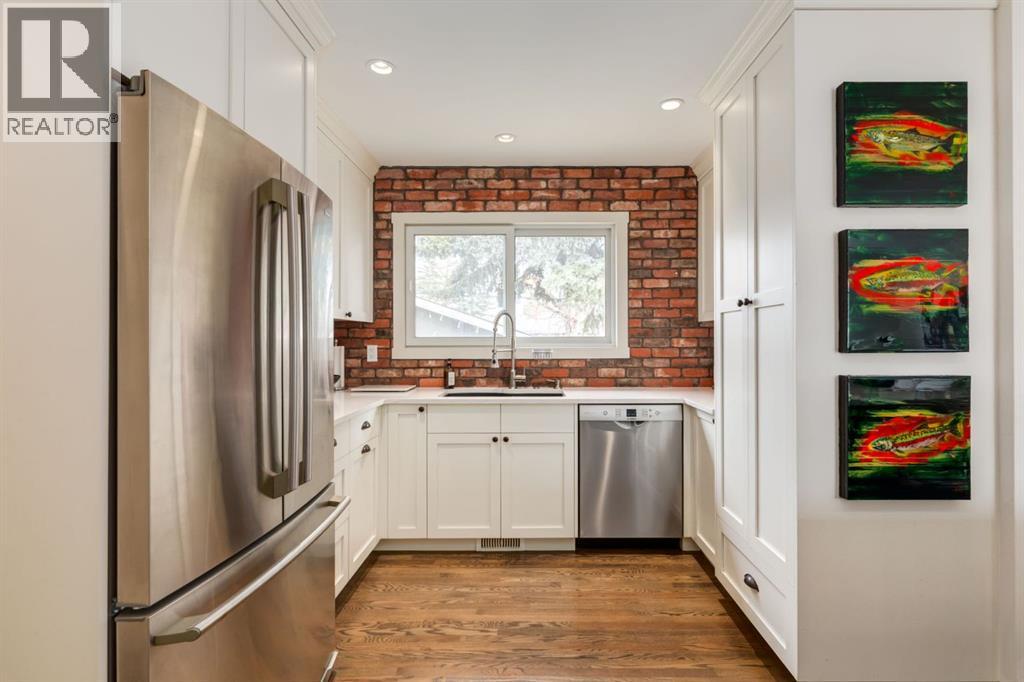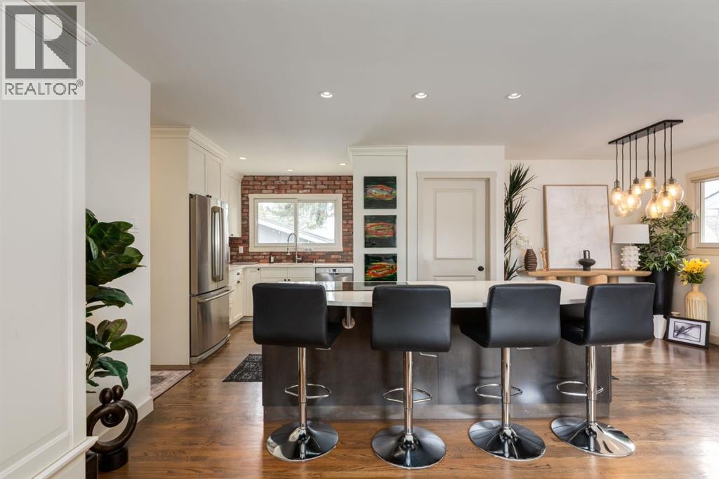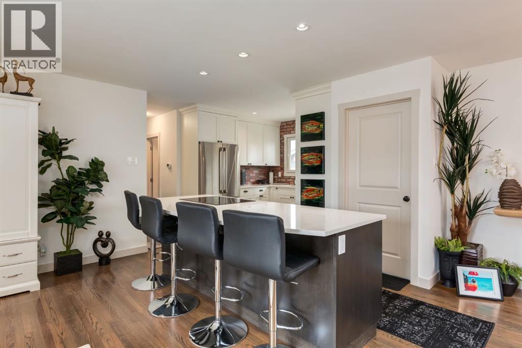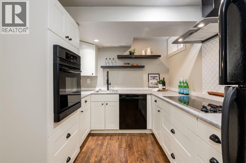 Located on a quiet street in beautiful Glamorgan, this incredible home is dripping with curb appeal, includes high quality updates throughout, showcases a huge, oversized garage with room for trucks, and this turnkey, move-in ready home also boasts a stunning two-bedroom basement suite. As you walk up to this stunning home, the pride of ownership shines through with a stylish paver stone walkway, a new front deck with composite decking and detailed wooden posts with wire railings, wood shake siding, and an elegant front door. As you enter the home, you are greeted with an open concept main floor with exquisite, rich hardwood floors and large windows flooding the space with natural light. The kitchen has been stunningly updated with timeless full-height, white shaker, custom cabinetry, striking quartz countertops, stainless steel appliances, a window overlooking the yard, an expansive island with bar seating and tons of storage. The main floor showcases a spacious living room with room to unwind and relax with family and friends. Adjacent the kitchen you will find your dining area with beautiful designer lighting. The roomy primary bedroom contains enough room for king-sized furniture. The main floor is completed with two additional large bedrooms, and an updated 4-piece bathroom with stylish hexagonal floor tiling. Downstairs contains its own separate two-bedroom illegal suite (currently in the process of receiving approval from the city for legalization) with a quality of workmanship that matches the rest of the home. The open concept living space provides a great layout with room for watching TV, cooking, and eating in your dining room. The kitchen has been beautifully renovated with white shaker cabinetry, floating shelves, and a striking backsplash and hood fan. The basement boasts newer windows (2014), two spacious bedrooms and a large 3-piece bathroom. The private backyard oasis has been immaculately landscaped with a newer wood fence, paver stone patio, matur e landscaping, garden beds with lattice, and access to your oversized double garage. Located on a peaceful street and walkable to MRU, Glamorgan School (K-9), St. Andrews School (K-9), and A.E. Cross, the incredible community association and outdoor rink, and easy access to shopping and amenities of Westhills and 37th Street, this turnkey home has all the major updates to avoid unexpected expenses with newer windows, beautiful window coverings, a newer hot water tank, siding, decking, and more. Don’t miss out on the opportunity to own this beautiful home. (id:51989)