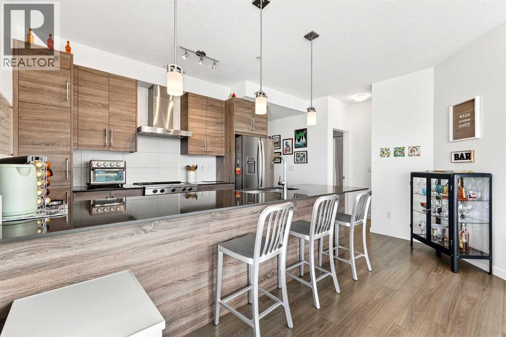 Welcome to the highly sought-after, always in-demand resort-style living in beautiful Westman Village. The all-ages condo is ideally situated on the shores of Mahogany Lake with extensive walking paths, sandy beaches, and 4 seasons of activities! This bright, beautiful, and nicely upgraded 5th-floor corner suite is built to Jayman’s high standard and finish level and is located in Calligraphy 1 with sunny SW views. It features three bedrooms, with the Primary Suite showcasing a full ensuite with a large walk-in oversized shower. The 3rd bedroom is perfect for family & guests or can be creatively used as a home office, providing abundant west-facing light throughout the day. The expansive main living area on the corner offers ample floor-to-ceiling windows, allowing you to fully appreciate the elevation, inviting the outside in & the stunning bright colour palette highlights your upgraded appliances, elegant stone counter & stylish décor. In-suite laundry, spacious foyer, and upgraded pantry included. In addition, other bonus features include a covered 22 x 6 balcony with a gas line, a TITLED underground parking stall, custom California closets and storage throughout. This Jayman BUILT community with the best location, directly adjacent to Calgary’s largest lake, the last of its kind, an award-winning community of Mahogany & only resort community on a lake. Impressive landscaping matches the picturesque views from your future backyard, with fountains, park benches, bridges, pathways & raised planters. The 40,000sf amenity center speaks for itself. Activities are available for all interests & hobbies. Including a swimming pool w/a 2 story water slide, golf simulator, fitness centre, movie theatre & so much more! 24-hour, 7-day a week security & concierge service. All homes include exceptional specifications, such as solar panels on every building, forced air, heat, and air conditioning, triple-pane windows, Vancouver-inspired architecture with oversized covered balcon ies, and Hardie board siding with extensive brick & stone masonry. Truly a one-of-a-kind experience, join the select few who will call CALLIGRAPHY their home. Winter eliminated-1292 underground parking stalls-not just for our residents but also their guests & visitors with extensive pedestrian +15 skywalks & underground passageways. 200 visitor parking stalls located in the heated, underground parkade. 10 short-term stay hotel suites, 4 indoor electric dual car chargers, 3 restaurants, Alvin's Jazz Club (casual-upscale jazz bar), Chairman’s Steakhouse, our highest amenity & Diner Deluxe. Plus, Analog Coffee, Chopped Leaf, Village Medical, Mahogany Village Dental, Sphere Optometry, Moderna Cannabis, MASH Eats, Marble Slab, Dolphin Dry Cleaners, 5 Vines & Mode Fitness Studio, Pie Junkie, a day care & a medical spa. Amazing $8 Million spent on the surface & landscaping: 596 Trees, 8019 shrubs, 1940 grasses, 4292 perennials, 10 fountains onsite... Nothing Compares! (id:51989)